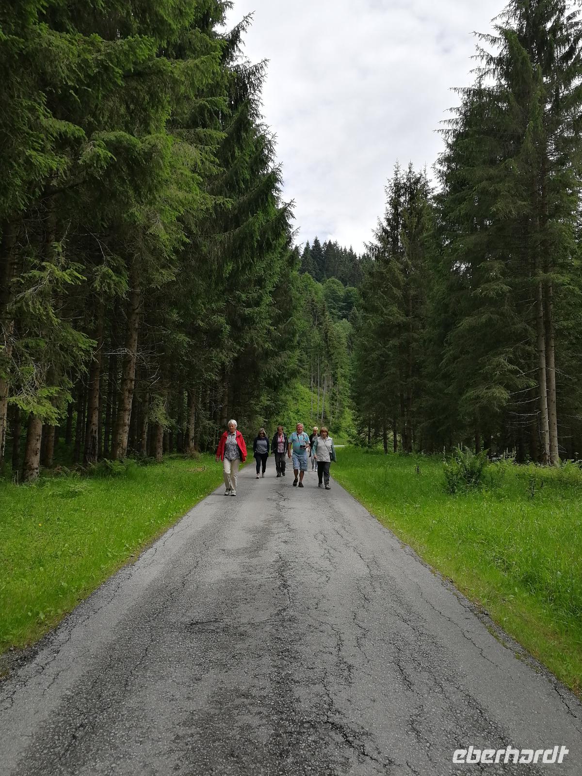 Heute erleben wir etwas ganz Besonderes, was nur einmal im Jahr in den Kitzbüheler Alpen stattfindet: den großen Hengstauftrieb der berühmten Tiroler Pferde, der Nordiker! Wir fahren mit dem Bus durch Kirchberg bis nach Aschau. An der Kneippanlage steigen wir in Taxibusse um und fahren mit diesen tief in das wunderschöne Tal der Asche hinein. Dort findet dieses große Spektakel bei der Karalm statt. Die stärksten Hengste Tirols werden hier hinter gebracht, um auf einer Wiese rausgelassen zu werden. Diese starken Pferde rangeln und kämpfen nun, um den stärksten Hengst für die Sommersaison auf der Almwiese untereinander festzulegen. Bei guter Livemusik und einem kühlen Bier schauen viele Menschen diesem Ereignis zu und wir sind live dabei. Am Nachmittag holen uns die Taxen wieder hinaus und bringen uns zurück zum Bus, welcher neben einer wunderbaren Kneippanlage geparkt ist. Dort können wir unsere Füße im eiskalten Wasser kühlen, bevor wir später wieder zurück in unseren Gasthof fahren. Am Abend erwartet uns ein weiteres Erlebnis: wir fahren heute auf den Berggasthof Nieding in Brixen im Thale. Aber Peter bringt uns mit dem Bus nur bis ins Tal nach Brixen und wir wissen nicht, wie wir hinauf auf den Berg kommen. Doch dann kommt der Wirt Sepp mit seinem Traktor angefahren und wir steigen in den Anhänger des Traktors. Auf einer lustigen Fahrt bringt uns Sepp hinauf zu seinem Gasthof, wo wir auf der Terrasse eine gute Jause genießen. Bei bester Aussicht lassen wir uns Käse, Speck und viele andere Leckereien mit gutem Bauernbrot schmecken. Bei einem Hausschnaps erzählt uns Sepp vieles über seinen Berggasthof, es ist ein sehr geselliger und lustiger Abend. Später bringt er uns in seinem Traktor wieder hinab nach Brixen im Thale, wo Peter uns mit seinem Bus zurück zum Gasthof bringt. Wir lassen den Abend gemütlich bei einem Getränk auf der Terrasse bei Birgit und Rosi ausklingen.