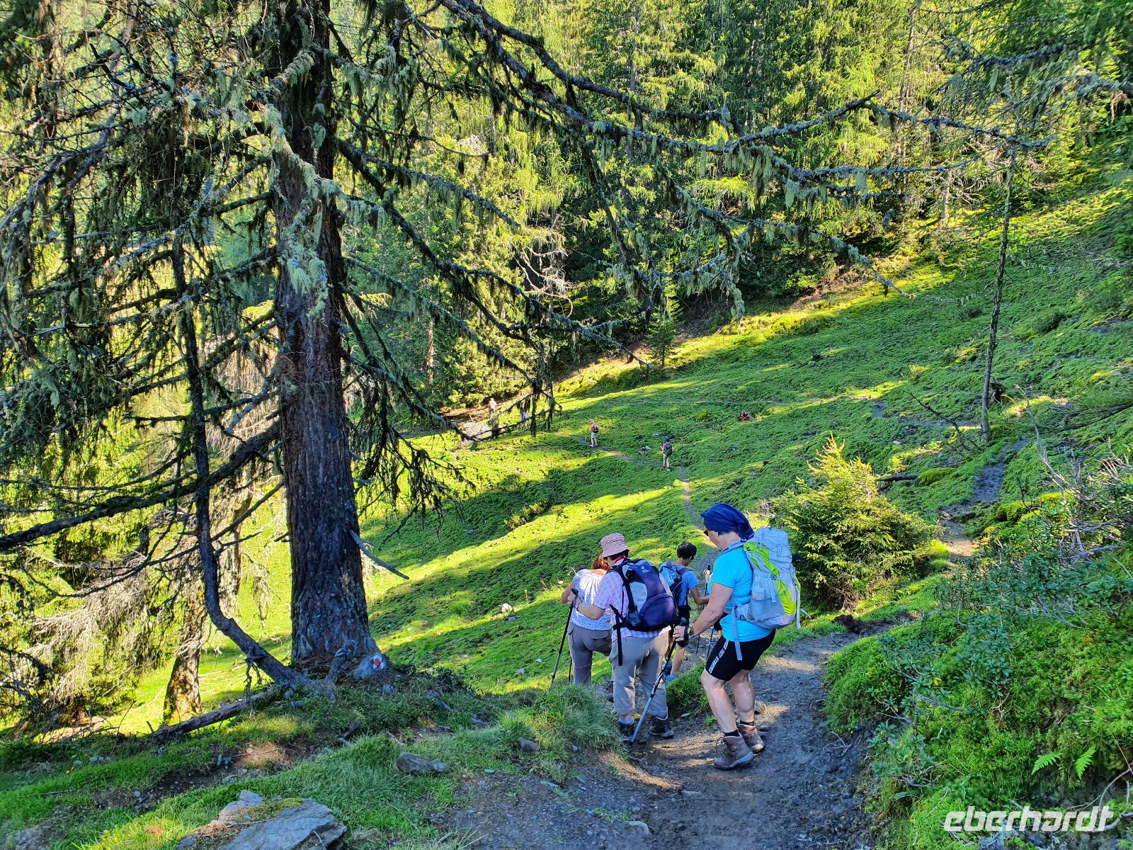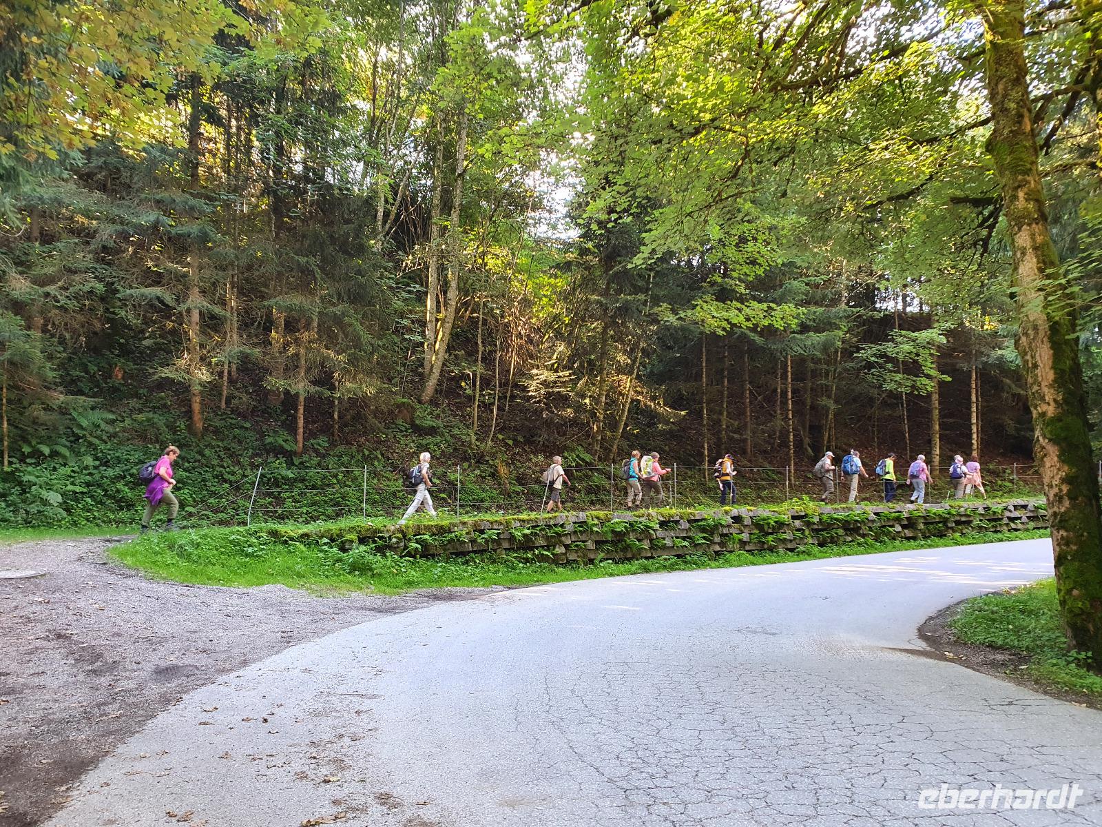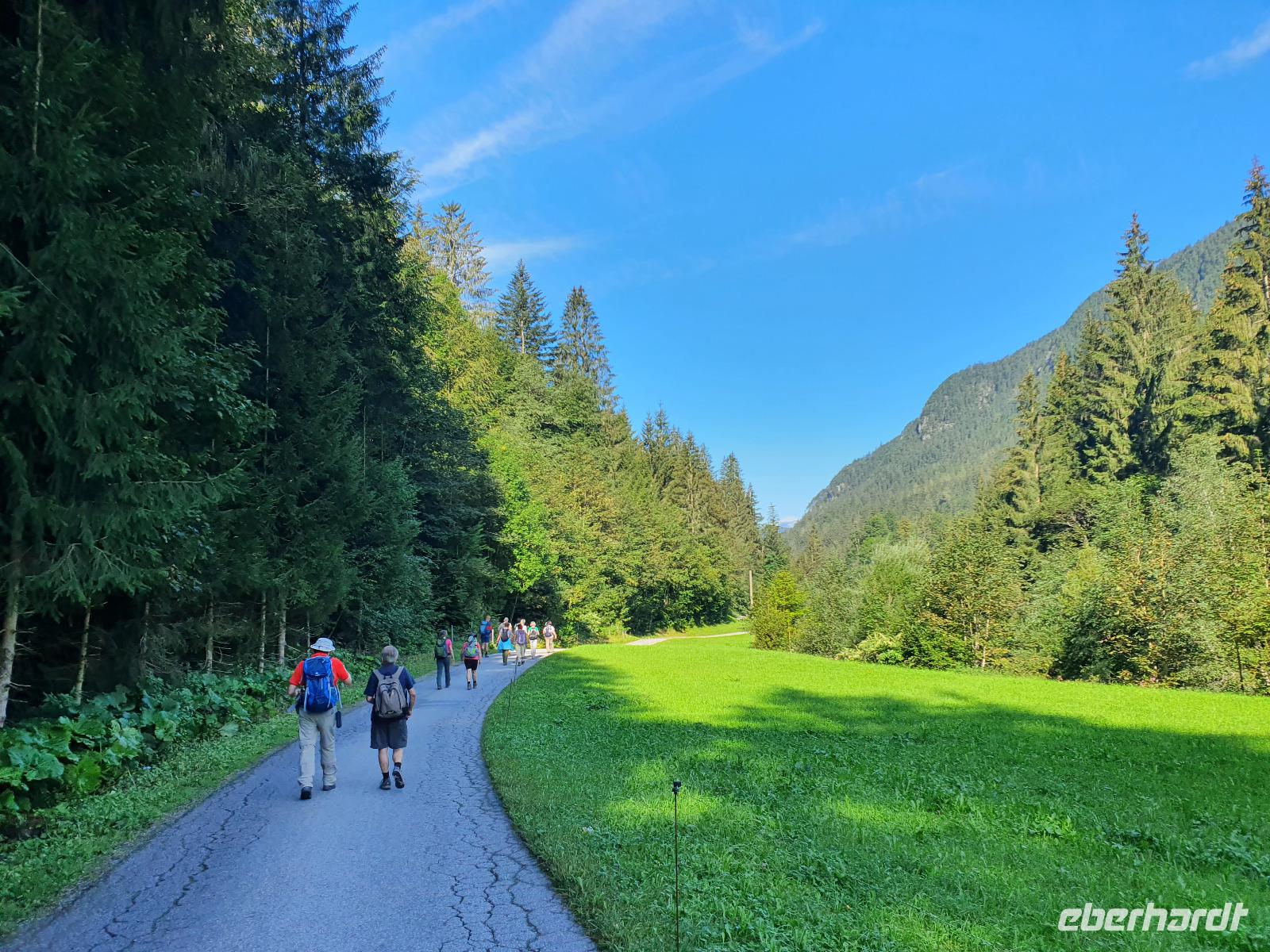 Auf dem Rückweg wieder Richtung Mühltal, sammelten einige der Wandergruppe Steine aus der Ache und kehrten im Anschluss in das Gasthaus Kundler Klamm ein. In Mühltal bestand die Möglichkeit mit dem Bus zurück zum Hotel zu fahren. Unsere Gruppe war aber gut drauf, sodass uns Rainer durch schöne Wälder und Wiesen zu unserer Unterkunft brachte.