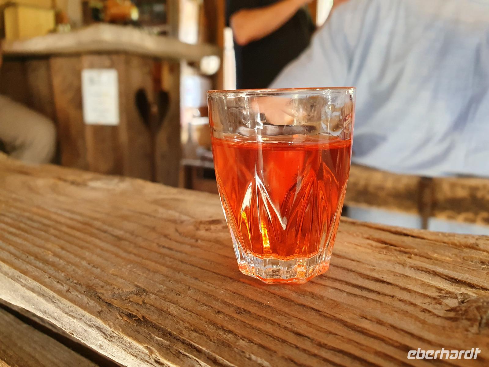 Nachdem wir unsere Lunchpakete gepackt, eine von zwei wählbaren Hauptspeisen am Abend herausgesucht und gefrühstückt haben, wurde die Wandergruppe von Hans, dem Wanderleiter, begrüßt. Hans erfüllte für uns das typische Bild eines älteren Herrns aus Österreich - graue Haare - grauer Bart und einen selbst geschnitzten Wanderstock. Wir waren alle hellauf begeistert! Wir starteten unsere erste Wanderung in Richtung Roggenboden vorbei an Jackys Cafe und saftig grünen Wiesen nach Auffach. Über den "Holzweg", welcher als Lehrpfad zum Thema Holz dient, gelangten wir in das erste Tiroler Holzmuseum. Uns erwarteten 37 mit Liebe zum Detail eingerichtete Räume rund um das Thema Holz. Von Musikinstrumenten und Kinderspielzeug über Sportgeräte bis hin zu einer Werkstatt, war alles dabei. Nach unserem Rundgang durch das Holzhaus tranken wir noch gemeinsam im Museumsgarten einen Zirbenschnaps, welcher aus den Zapfen der Zirben hergestellt wird. Die Zapfen werden dafür in Korn und Kandiszucker eingelegt. Anschließend liefen wir wieder hinüber auf den Holzweg, wo uns eine etwa sieben Meter lange Holzbank erwartete, auf der wir unsere prall gefüllten Brotdosen plündern konnten. Unweit des Lehrpfades befindet sich die Schatzbergbahn, mit der wir auf den gleichnamigen Berg hinauf fuhren. Wir nahmen den Weg auf uns, um das Gipfelkreuz zu erklimmen, was sich allemal gelohnt hat. Dank der klaren Sicht und dem strahlenden Sonnenschein konnten wir einige Erinnerungsfotos schießen. Bevor es aber mit der Bergbahn zurück nach Auffach ging, kehrten wir auf eine Buttermilch, einen Kaffee, ein Bier oder einem Almdudler in den Berggasthof Schatzbergalm ein. In Auffach bestand die Möglichkeit mit dem Bus zum Hotel zurück zu fahren oder mit Hans zurück zur Unterkunft zu wandern. Wir hatten einen tollen Tag zusammen. Es machte Spaß dem Hans beim Erzählen seiner Anekdoten und Erlebnisse zuzuhören. Am Abend hielt das Hotel wieder ein tolles Abendessen mit Salat, Suppe, Hauptspeise und Nachspeise für uns bereit.