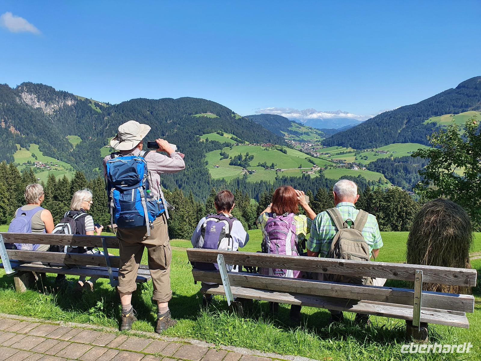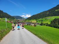 Diesen sonnigen Tag konnte sich jeder frei nach seinen Belieben einrichten. In kleinen Grüppchen schlossen sich die Gäste zusammen und erkundeten gemeinsam die Wildschönau. Ich ging mit einem Teil der Wandergruppe entlang des Kogel Rundwegs in Richtung Thierbach, ein kleines beschauliches Dorf mit 160 Einwohnern, 9 Schülern, einigen traditionellen Bauernhöfen und wenigen Gasthäusern. Sehr gemütlich. Auf dem Kogel Rundweg gab es einiges zu entdecken: zum Beispiel ein Insektenhotel, eine Waldschule, ein Labyrinth und weitere Kustwerke aus Holz. In Thierbach angekommen, kehrten wir beim Sollererwirt ein, schlürften eine Suppe und aßen Kaiserschmarrn. Auf dem Rückweg wanderten wir am Hörbighof, dem Erbhof der Schauspielerfamilie Hörbiger vorbei. Gemütlich liefen wir zurück nach Mühlbach von woaus und ein Taxi ins Hotel fuhr. Am Nachmittag trafen sich einige Gäste in Oberau bei einem Bummel. Zum Abendessen waren wieder alle beisammen und haben den Tag entspannt ausklingen lassen.