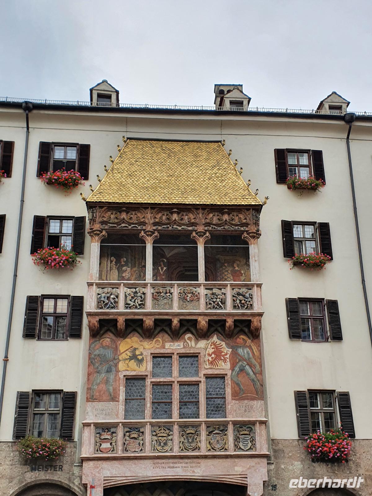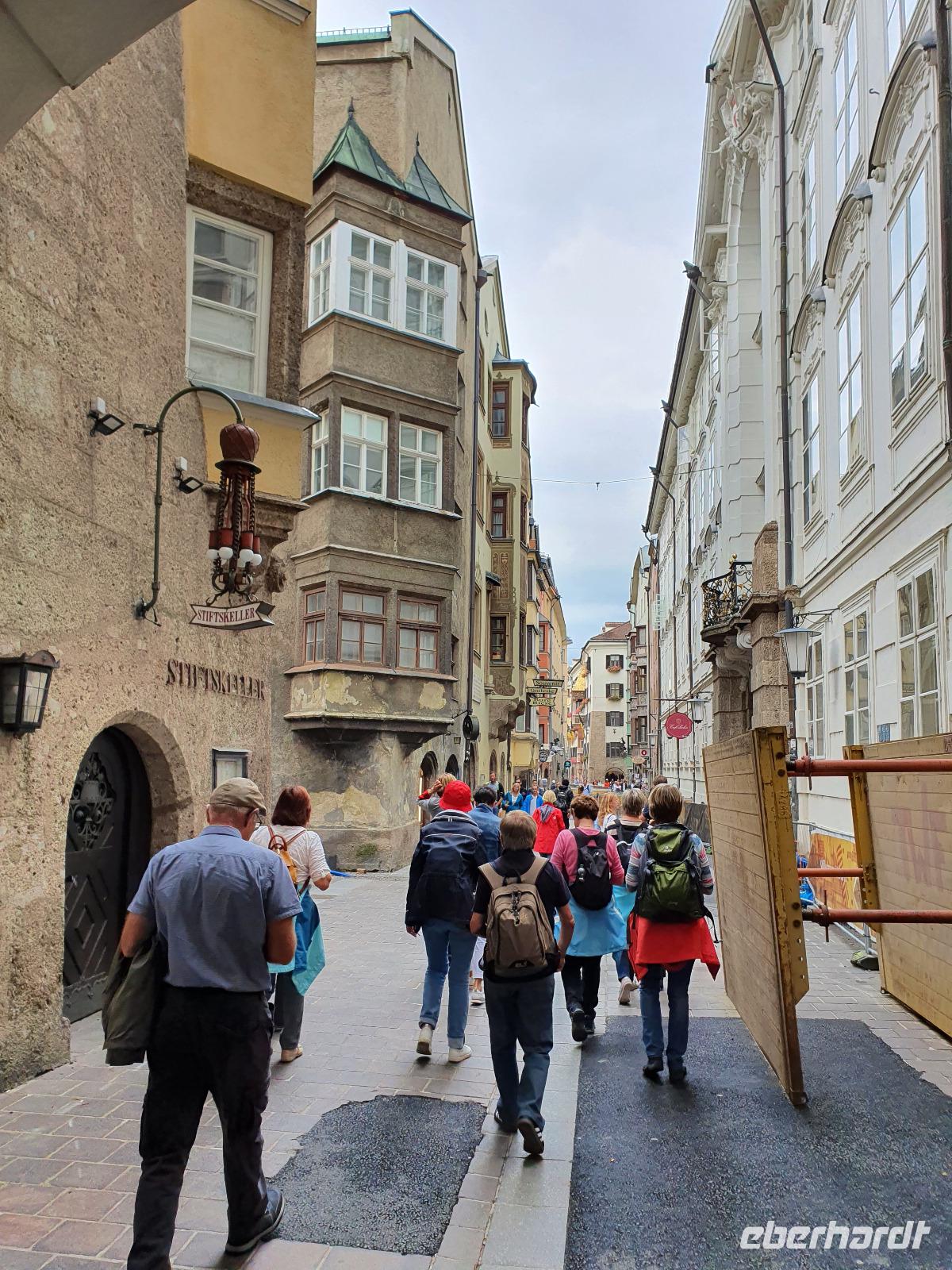 An diesem Tag stand keine Wanderung auf dem Programm, sondern Kultur und Stadtbesichtigungen. Mit dem Reisebus fuhren wir zuerst in die kleinste Gemeinde Österreichs - nach Rattenberg. Die Stadt ist bekannt als Glasstadt, weshalb wir die Glasbläserei Klingler besuchten. Nach einer kleinen Führung verteilte sich die Gruppe in der Stadt zum Bummeln. Anschließend fuhr uns der Bus nach Innsbruck - die Hauptstadt des Bundeslandes Tirol. Nach einer kurzen Pause im Hofgarten empfing uns eine ganz tolle Stadtführerin, die ihren Beruf mit Leib und Seele lebt. Sie zeigte uns ihre Heimatstadt in einer sehr kurzweiligen Führung. Wir besichtigten die Hofburg, das goldene Dachl und den Dom zu St. Jakob. Darüber hinaus lernten wir die Zusammenhänge einiger Redewendungen kennen. Zum Beispiel das Wort "Torschlusspanik": Zurückzuführen ist dieses Wort auf das Mittelalter, da damals die Städte mit Mauern umschlossen waren und die Stadttore am Abend geschlossen wurden. Wer also nicht rechtzeitig zurück war musste draußen schlafen und war den Räubern ausgesetzt. Somit entstand eine Panik davor, dass man es nicht in die Stadt schafft, bevor die Tore schließen. Nach der Stadtführung konnte sich die Gruppe in Innsbruck frei bewegen. Die Mehrheit besuchte das traditionelle Cafe Katzung gegenüber vom Goldenen Dachl. Im Regen fuhren wir weiter zu den Swarovski Kristallwelten in Wattens, welche im Jahr 1995 anlässlich des hundertjährigen Firmenjubiläums eröffnet wurde. In mehreren Themenwelten konnten wir die abertausend funkelnden Swarovskisteine bestaunen. Am Abend waren wir wieder zurück im Hotel und nahmen gemeinsam das Abendessen ein.