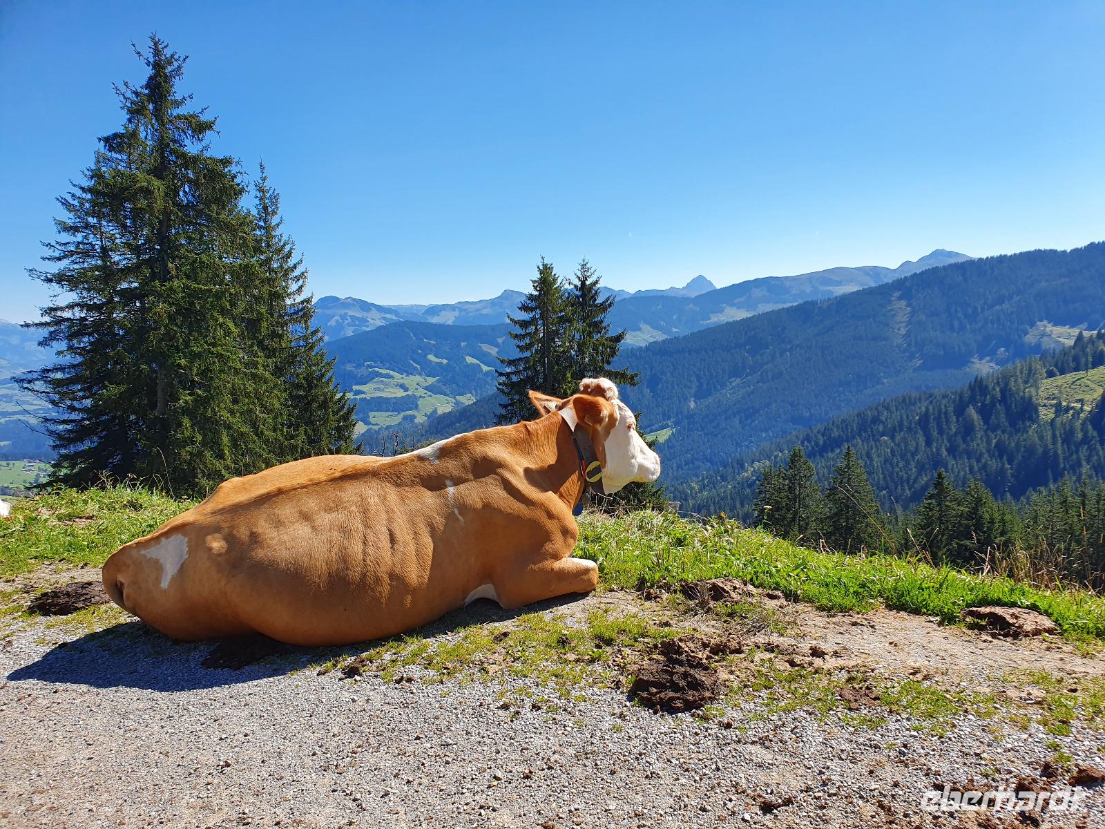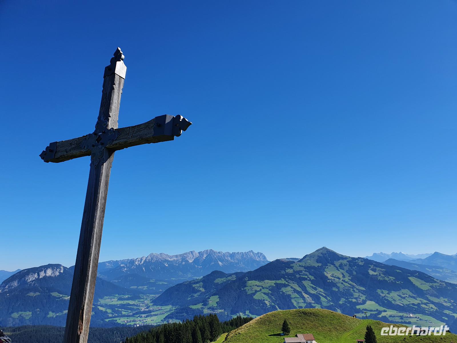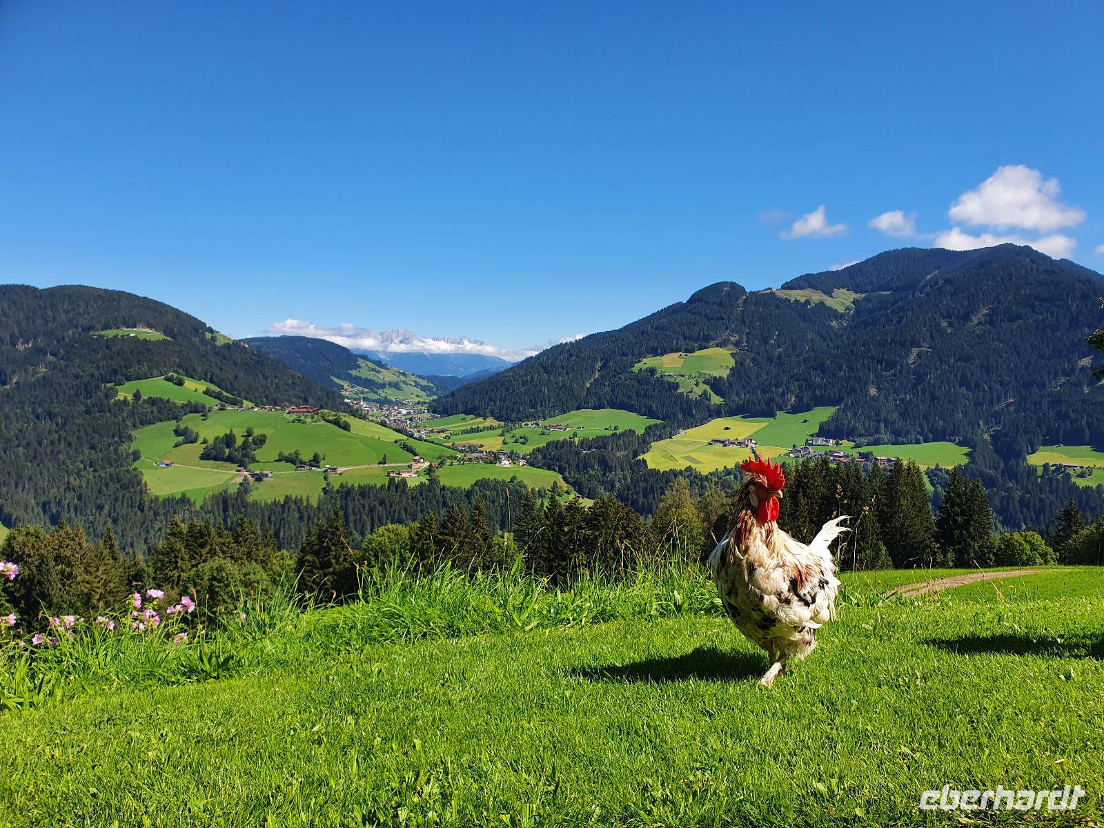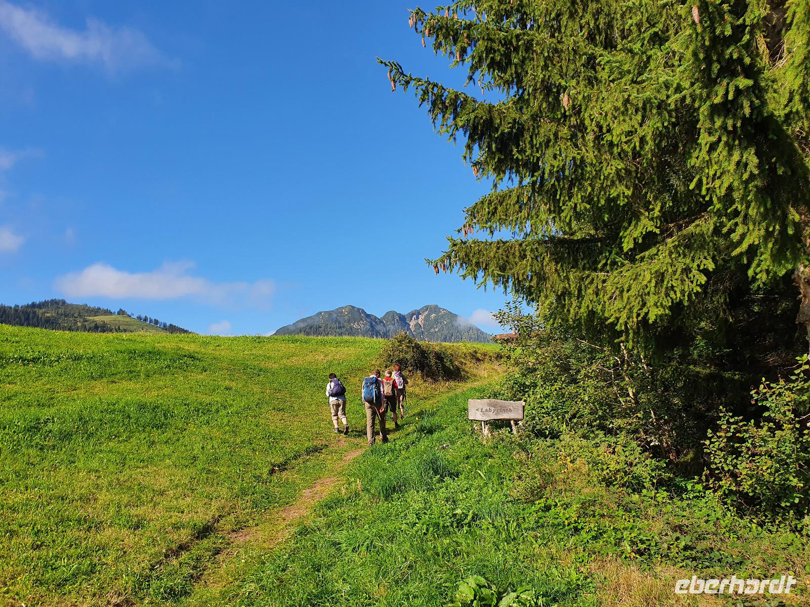 Auf unserer letzten Wanderung begleitete uns wieder der liebe Hans. Wir fuhren gemeinsam nach Niederau zur Seilbahn des Markbachjochs. Auf 1500 Metern Höhe angekommen konnten wir bereits den Rosskopf, den Wilden Kaiser sowie das Feldalphorn bestaunen. Nach einem kleinen Abstecher zur Markbachjochkapelle bewunderten wir die mutigen Paragleiter, die sich am Startplatz tummelten. Weiter ging es vorbei an der Käsealm in Richtung Rosskopfhütte, wo sich einige eine frische Buttermilch oder einen selbst gemachten Joghurt gönnten.