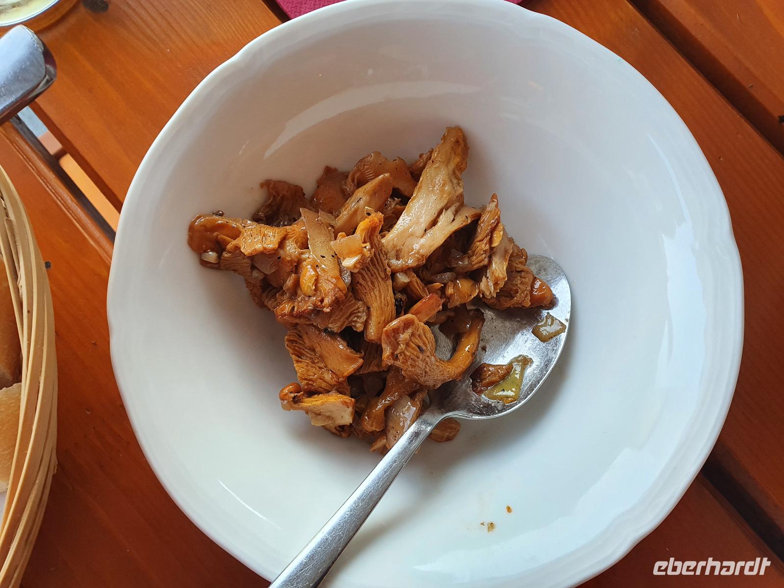 Zurück ging es über den Roggennboden zum Hotel. Wir tranken heute zum Abschluss zusammen mit den beiden Wanderleitern Rainer und Hans Kaffee und verabschiedeten uns von den beiden. Am Abend wurde im Hotel gegrillt und der Koch bereitete extra für uns, die von Hans während der Wanderung gesammelten Pilze, zu. Man waren die lecker - ganz frisch aus dem Wald!