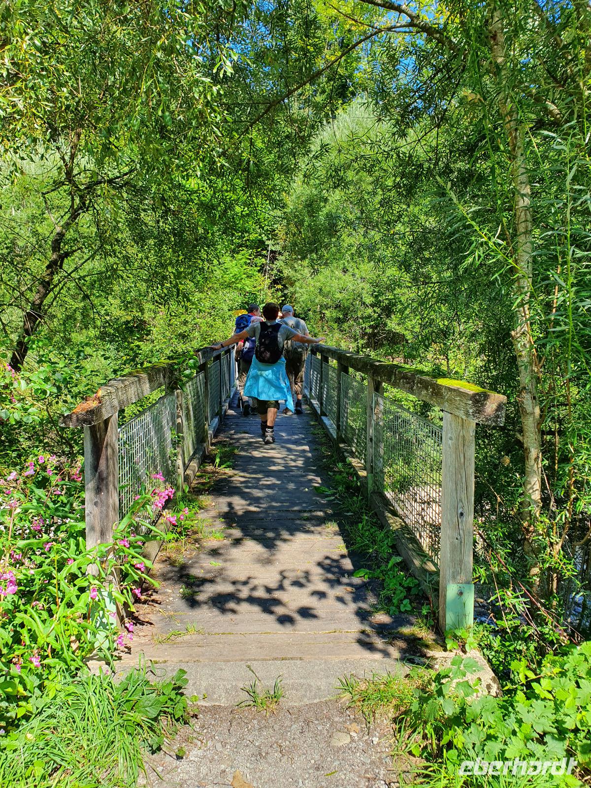Die Wandergruppe durchlief die gesamte Klamm und erblickte am Ende, kurz vor dem Ort Kundl, eine denkmalgeschützte Holzbrücke, die 1914 errichtet wurde. Wenige Meter hinter der Brücke nahmen wir unsere gepackten Lunchpakete zu uns.