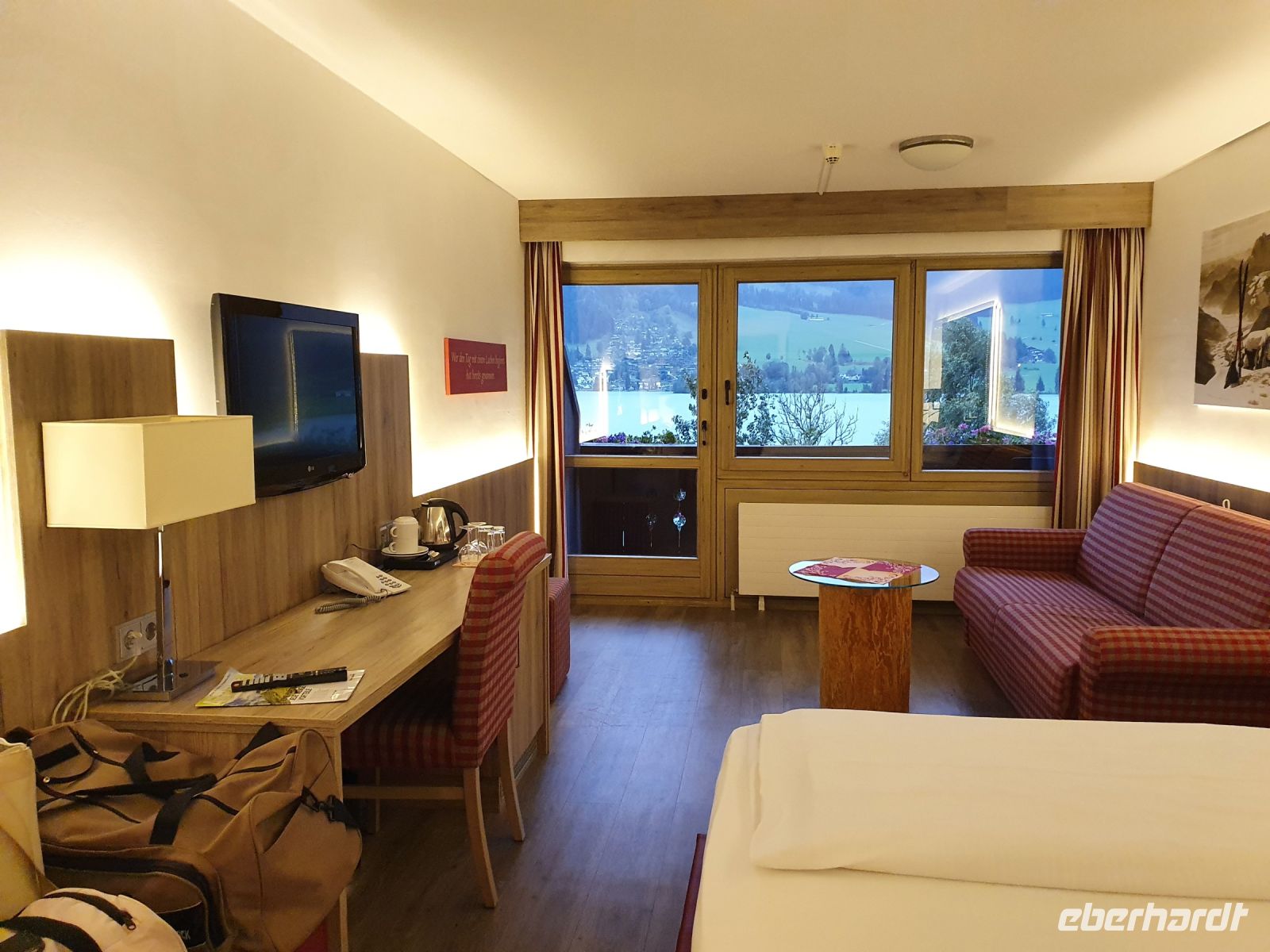 Der Urlaubsort begrüßte uns bei Sonnenschein, sodass wir gemeinsam eine Runde um den Walchsee spazieren gehen konnten. Anschließend genossen wir das vielfältige Kuchenbuffet des Hotels.