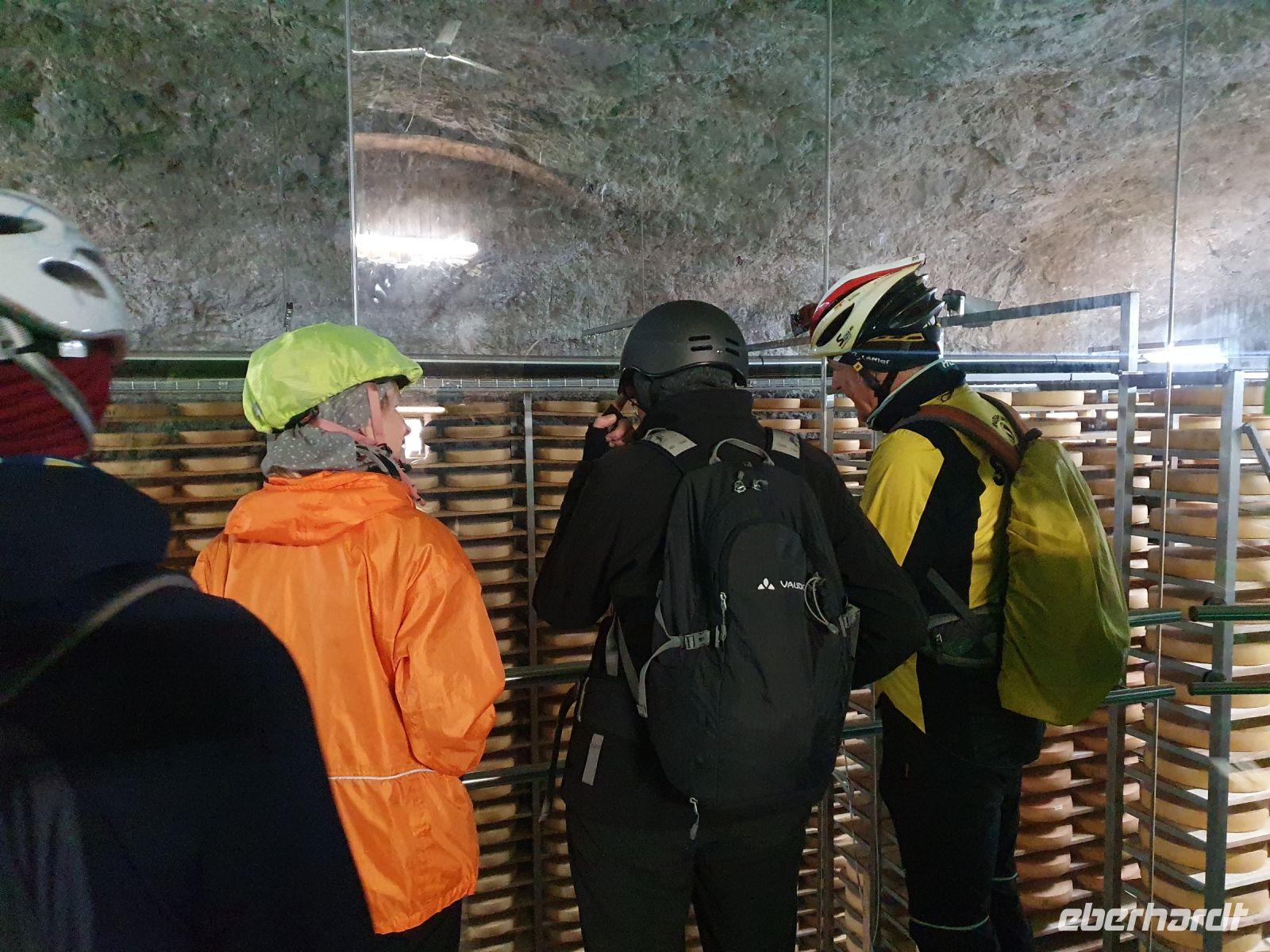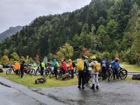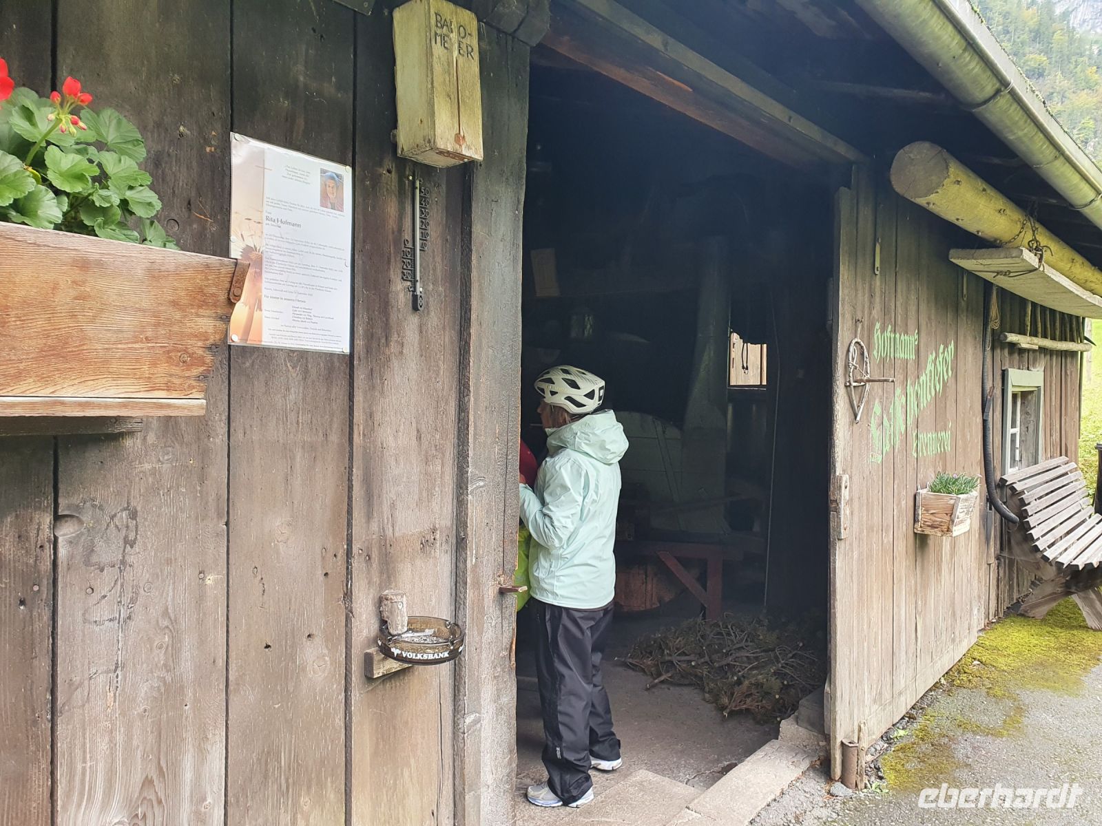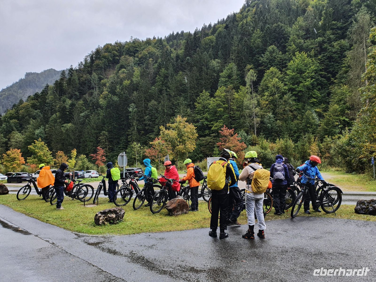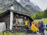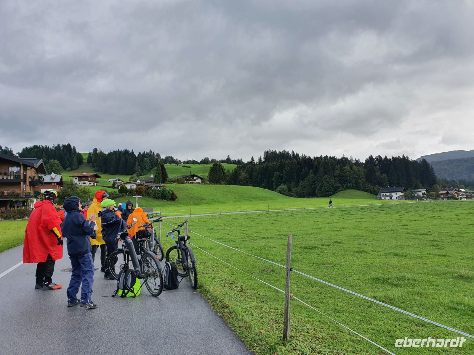 Vorbei an Kössen, entlang der Großarche radelten wir hinein ins Kaiserbachtal hinauf zur Latschenbrennerei. Hier erfuhren wir interessantes über die Herstellung des naturreinen ätherischen Öls. Natürlich wurde auch das ein oder andere Produkt in den Rucksack gepackt. Ein paar Meter konnten wir uns hinunterrollen lassen, um in der Fischbachalm einzukehren. Zwischen den mächtigen Felswänden des Wilden Kaisers verspeisten wir unsere liebevoll angerichteten Jausebretteln. Den Rückweg mussten wir im Regen zurücklegen, weshalb wir geschwind in unser warmes Hotel zurück radelten.