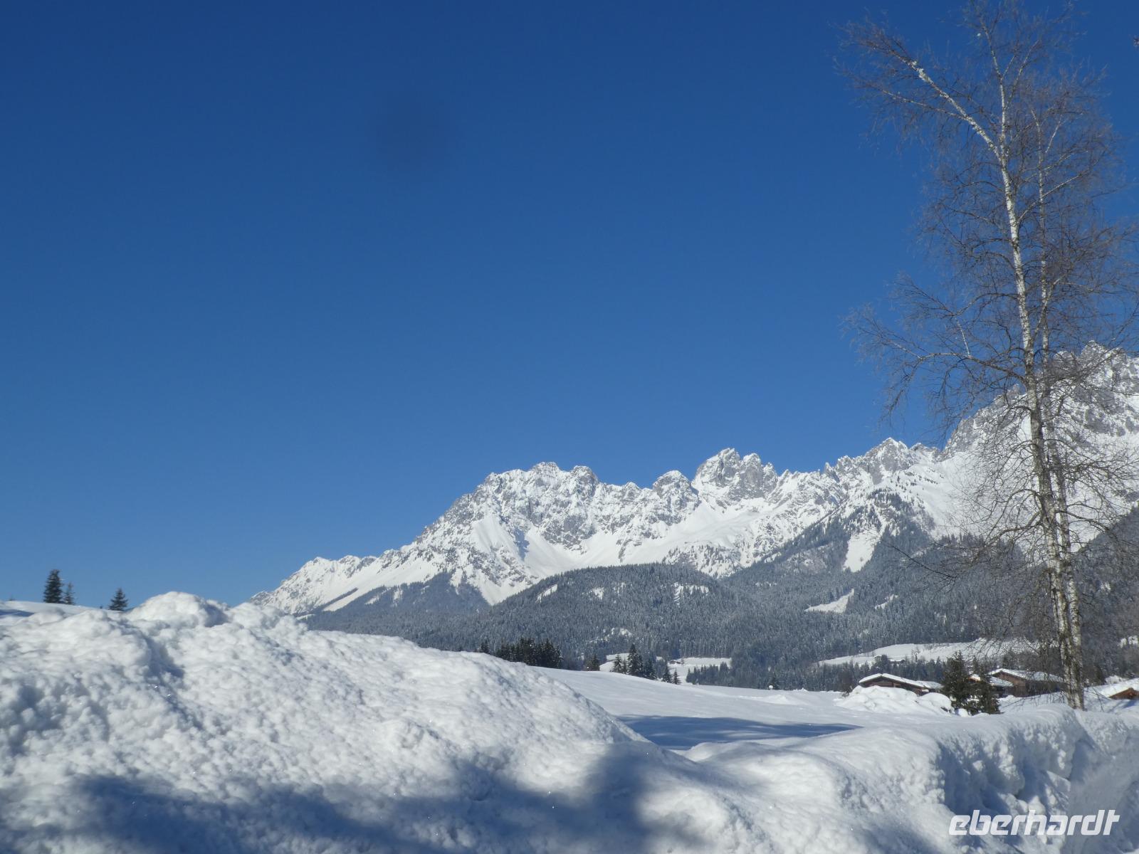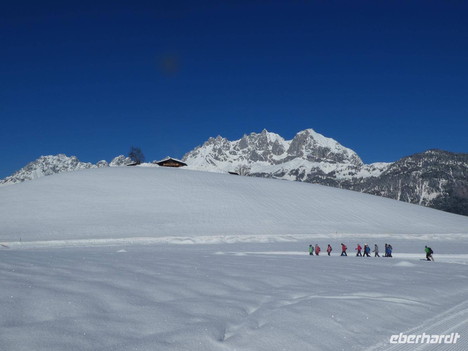Eine Winterreise in die Kitzbühler Alpen bei viel Schnee und Sonnenschein. Schöne Landschaften entdecken bei geführten Wanderungen.