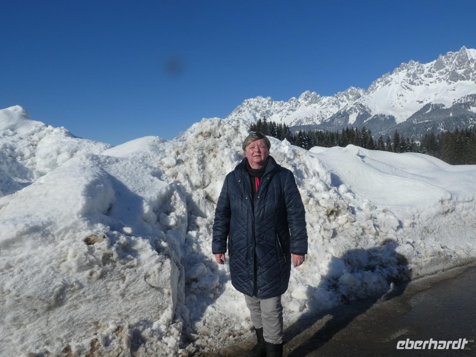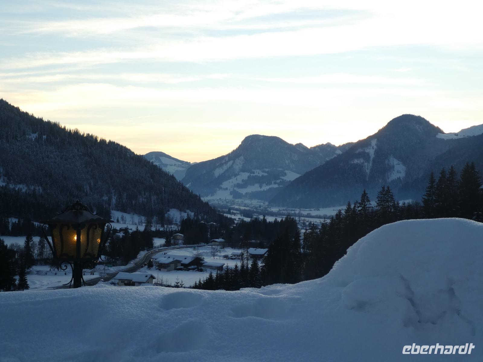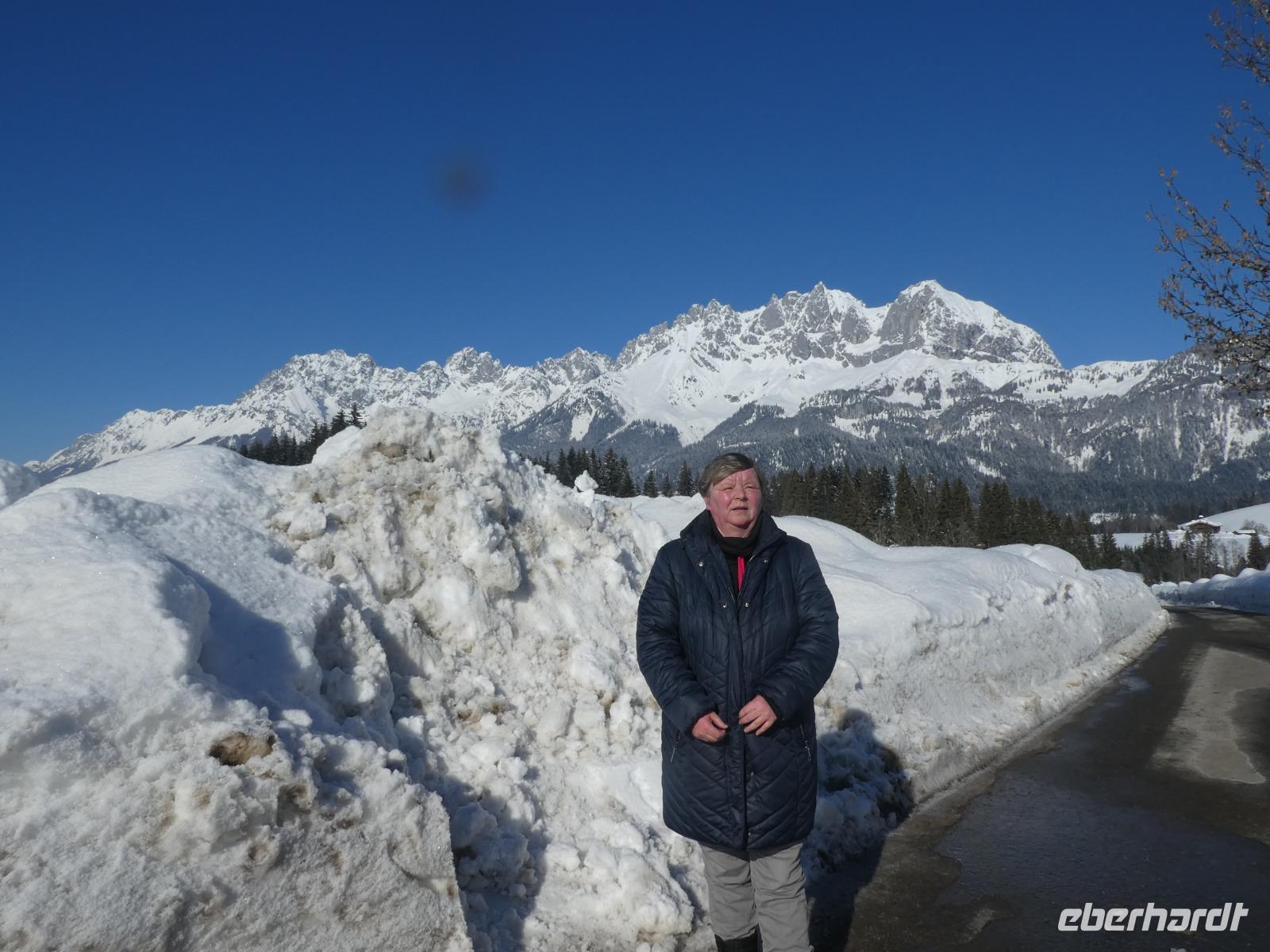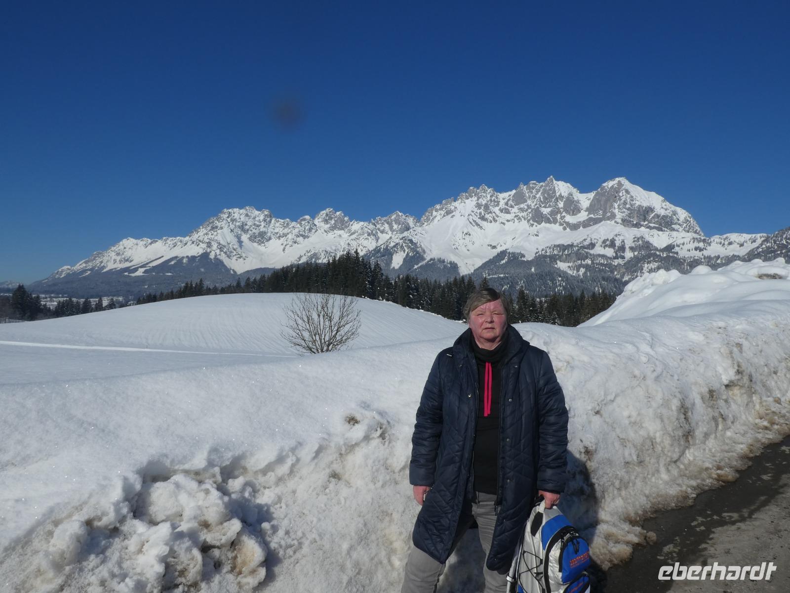 Unsere letzte Winterwanderung entführte uns in die Einsiedelei Maria Blut. Gemeinsam mit Joseph und anderen Gästen begaben wir uns auf den Weg. Und wieder liefen wir durch den Schnee mit Blick auf das Kitzbühler Horn und den Niederkaiser. Es ging immer bergauf und das letzte Stück zur Wallfahrtskapelle war schon etwas steil. Im Moment bewohnt nur eine Ordensschwester die Einsiedelei. Leider war sie aber nicht zu sehen. So liefen wir ein Stück zurück und stapften weiter durch den Schnee zum Gasthof Rummlerhof. Nach einer Einkehr wanderten wir mit Joseph über schön verschneite Wege wieder zurück nach St. Johann. Und wieder wurden die Geschäfte unsicher gemacht und einiges eingekauft. Am Abend fuhren wir mit dem Taxi in die urige Hütte Grander Schupf. Wir saßen direkt am Kamin, hörten das knistern des Feuers und ließen uns kulinarisch verwöhnen.