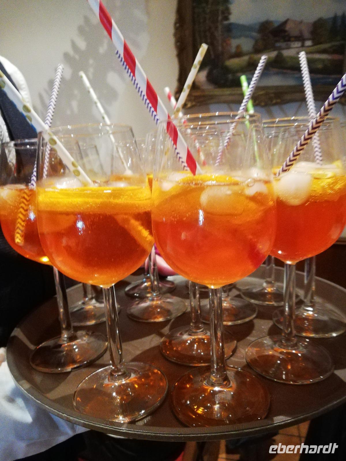 Nach einer kurzen Fotopause machten wir uns auf den Weg zurück zum Hotel, einige machten noch einen kurzen Abstecher zum nahegelegenen Spa um einige Einkäufe zu erledigen. Später versammelten wir uns im Hotelrestaurant. Inzwischen ist auch unsere Eigenanreisende angekommen. Somit war unsere Gruppe aus 16 Damen komplett und wir lernten uns bei Kaffee und Kuchen besser kennen. Die Zeit verflog im Nu und wir gingen zum Abendessen über. Bei einem Aperol-Spritz ließen wir den Tag ausklingen.