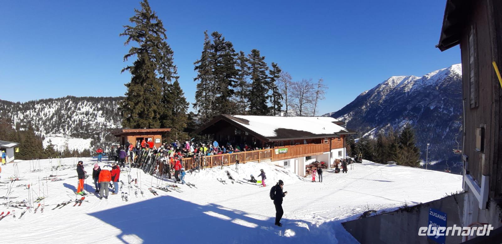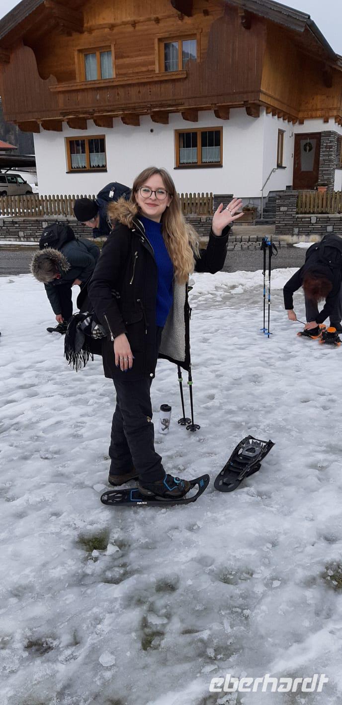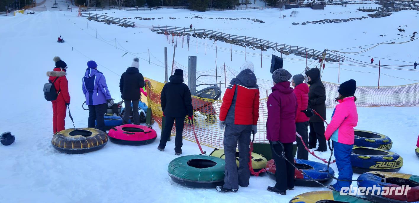 Der heutige Tag beginnt mit einem kräftigen Frühstück und schönem Wetter. Das motiviert zum Wandern! Um 10 Uhr holte uns Manuel wieder beim Hotel ab und es ging ins Unterautal in Achenkirch. 3 Stunden waren wir mit den Schneeschuhen unterwegs und genossen die wunderschöne verschneite Landschaft. Nach der Wanderung stärkten wir uns im Hotelrestaurant. Bis zum Abend hatten wir Zeit zur freien Verfügung. Viele nutzten diese Zeit um einkaufen zu gehen, doch bedauerlicherweise kamen nicht alle bis zum Laden bzw. auch nicht alle heil wieder zurück. Der frisch gefallene Schnee forderte schnell die ersten Opfer und zum Glück auch die letzten. Vor der Hüttengaudi machten sich die Reisebegleitung mit einer Dame auf den Weg nach Schwaz ins Krankenhaus. Die Behandlung verlief schnell, sodass beide pünktlich wieder im Hotel ankamen. Bedauerlicherweise ging nur eine von beiden zum Hüttengaudi. Der größte Teil der Gruppe versammelte sich am frühen Abend an der Hotelrezeption und machte sich gemeinsam auf den Weg zur Hütte auf der Christlum-Alm. Davor holten wir unsere Rodel ab und fuhren mit dem Lift in die Berge. Beim Hüttengaudi erwarteten uns köstliche Ripple (Rippchen) und gute Unterhaltung durch die Band "Romantic Express". Wir machten dort Stimmung bis zuletzt. Kurz vor Mitternacht setzten wir uns auf unsere Rodel und rodelten wieder nach unten. Unten angekommen stießen wir alle darauf an, dass alle heil nach unten gekommen sind. Das war definitiv ein erlebnisreicher Tag.