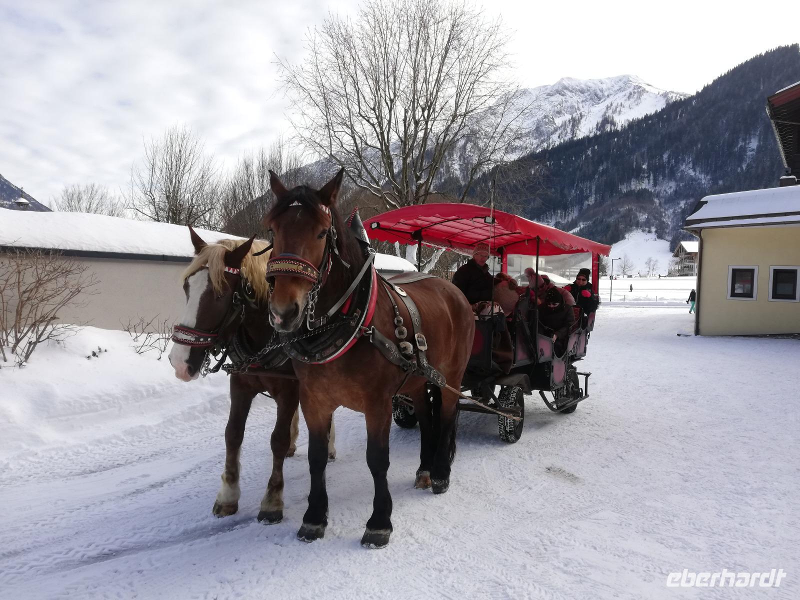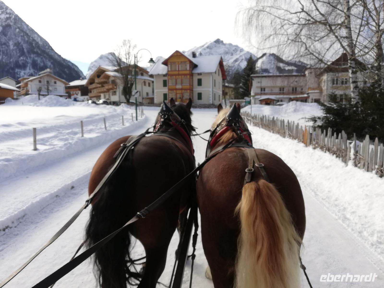 Eigentlich hatten wir eine gemütliche Wanderung entlang des Achenseeufers geplant, stattdessen wurde es etwas komplizierter als gedacht. Umdrehen kam für uns nicht in Frage. Mit einigen Motivationspausen kämpften wir uns durch den hohen Schnee und meisterten die Hälfte der eigentlich geplanten Strecke. Den Rest machten wir per Bus. Wir fuhren weiter nach Pertisau. In einem gemütlichen Café mit Seeblick genossen wir einen Kaffee. Im Anschluss erwartete uns noch eine Pferdeschlittenfahrt durch Pertisau. Mit zwei Schlitten machten wir eine kleine Tour durch das winterliche Pletztachtal. In einer kleinen Berghütte kehrten wir für eine kleine Aufwärmpause ein. Später fuhren wir wieder zurück. Mit dem Bus fuhren wir wieder nach Achenkirch. Nach dem deftigen Abendessen machten wir uns auf den Weg zur Fackelwanderung. Mit großen Kerzen machten wir eine entspannte Runde durch Achenkirch. Bei einem leckeren Glühwein ließen wir den reichhaltigen Tag ausklingen.