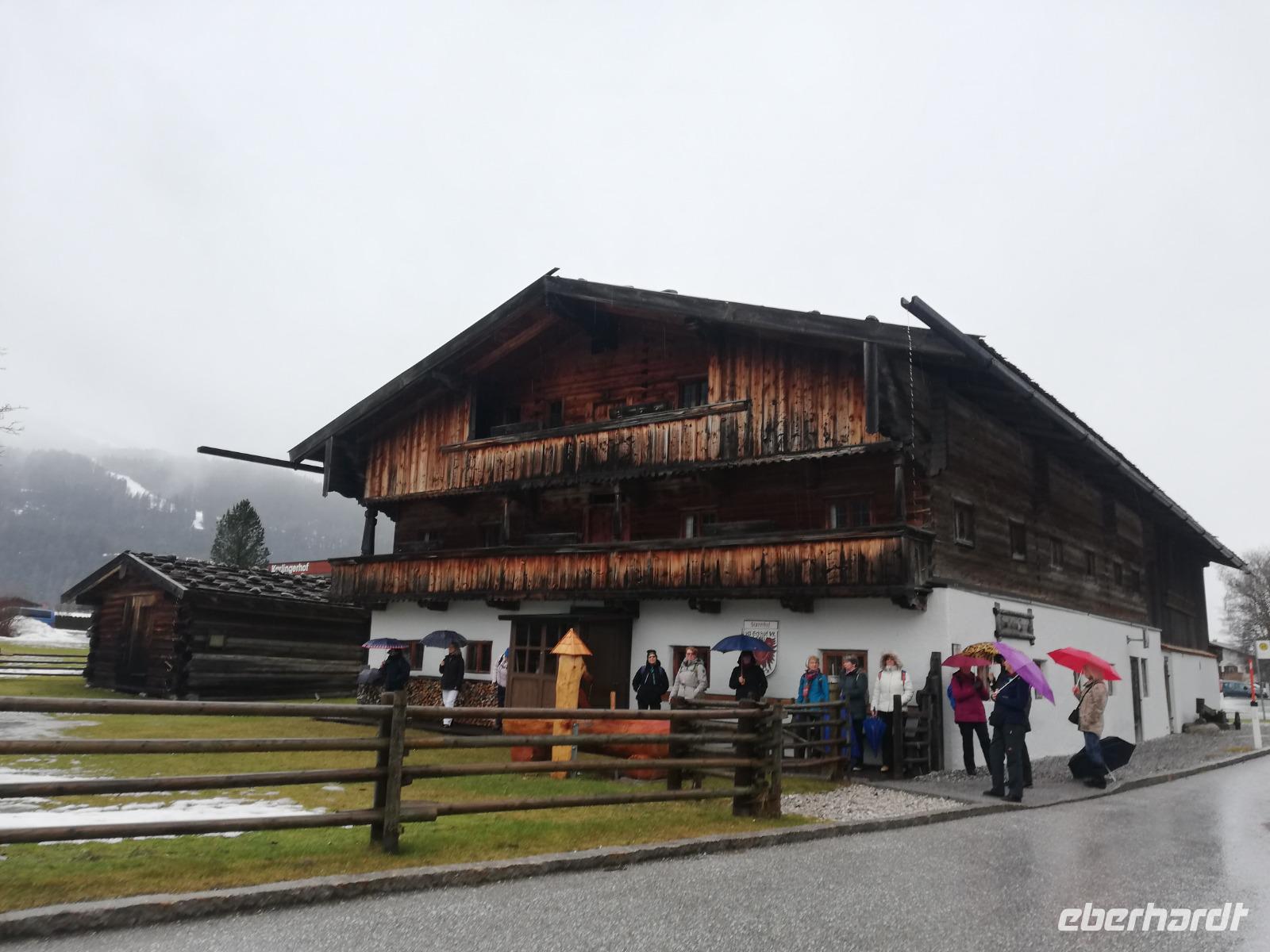 Der Tag beginnt für uns nicht so freudig. Statt Sonnenschein erwartet uns Schneeregen und starker Wind - kein schönes Wetter zum wandern! Unser Programm fällt sprichwörtlich ins Wasser. Also sagten wir unserem heutigen Wanderführer Sebastian ab und gestalteten denTag neu. Bis zum frühen Nachmittag genossen wir freie Zeit im Hotel. Einige legten sich nochmal hin, spielten Tischtennis, lasen Bücher, genossen die Sauna und einige trauten sich sogar raus um einige Einkäufe zu tätigen. Kurz nach Mittag versammelten wir uns und besuchten das Heimatkundemuseum Sixenhof in Achenkirch. Die Führung hat uns positiv überrascht. Es war sehr interessant über das frühere tirolerische Leben zu erfahren und die ganzen Arbeitsmittel zu sehen mit denen die Menschen früher gearbeitet hatten. Wir waren ein so gutes Publikum, dass der Museumsleiter uns sogar das nationale Getränk - den Zirbenschnaps verköstigen ließ.