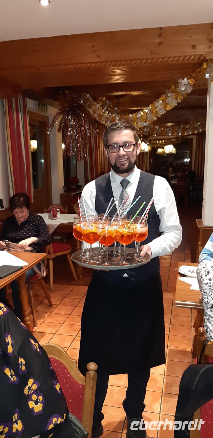 Das heutige Wetter am Morgen sorgte erst nicht für Freude. Während wir uns Notfallpläne ausdachten legte sich der Schneesturm etwas. Deswegen beschlossen wir unsere heutige Wanderung durchzuziehen. Als wir vor die Tür gingen war es windstill und vom Himmel rieselte leise der Schnee - das bedeutet also "Wenn Engel reisen". Wir machten uns auf den Weg nach Pertisau. Dort angekommen begrüßte uns Marina, die heutige Wanderführerin. Sie bringe uns durch das Faltzturmtal raus ins Karwendelgebirge. Während der Wanderung zog erneut ein Sturm auf und wir flüchteten in eine urige Berghütte in der wir ein leckeres Mittagessen genossen. Nach der Stärkung machten wir uns auf den Weg zurück. Der Sturm hatte sich bereits etwas gelegt aber wir kamen trotzdem wie Schneemänner am Langlaufzenter an. Doch das störte uns wenig, da wir noch fasziniert von so viel Schnee waren. Am Langlaufzenter verabschiedeten wir uns von Marina und fuhren nach Maurach, um die örtliche Edelbrennerei näher unter die Lupe zu nehmen. Bei einer Führung lernten wir den Unterschied von Schnaps, Brand und Spirituose und erfuhren Einzelheiten zur Herstellung. Im Anschluss gab es natürlich noch eine Verkostung. Dabei durften wir 6 Brände oder Liköre probieren. Nach der Besichtigung machten wir uns auf den Weg zurück zum Hotel. Das Essen und die humorvolle Bedienung machten jeden Abend zum Highlight.