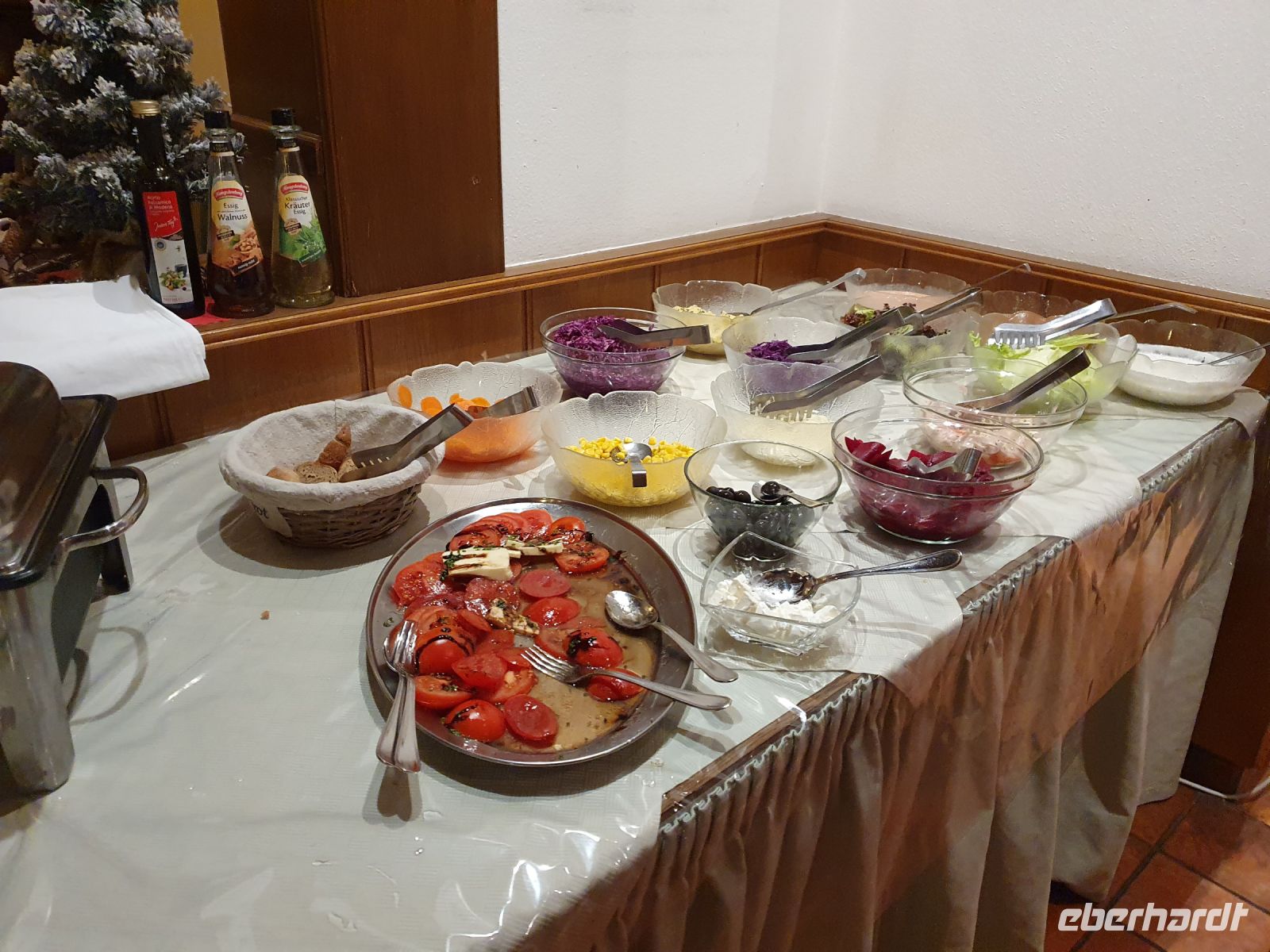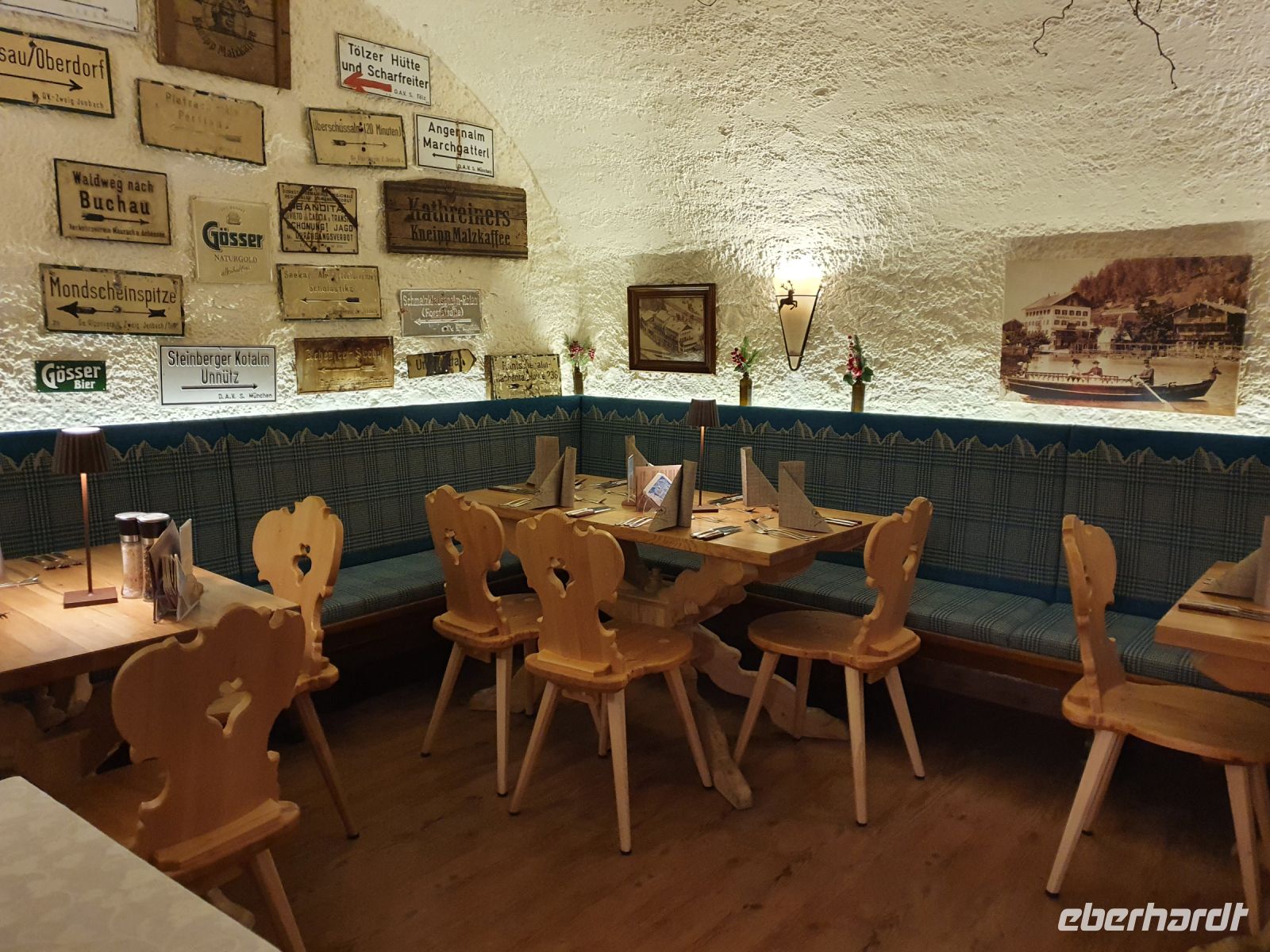 Nach einem guten Frühstück liefen wir zur nahe gelegenen Bushaltestelle und fuhren mit unserer Gästekarte als Ticket nach Maurach. Das Wetter war besser als vorher gesagt und so nahmen wir die Seilbahn hinauf auf das Rofanmassiv. Zu meiner Überraschung waren nur wenige Urlauber mit uns in der Seilbahn unterwegs und auch oben nur wenige Skifahrer. Wir nutzten die Ruhe und stellten uns erst einmal einander vor. Eigentlich wollten wir zum Adlerhorst hinauf laufen und von dort oben einem Adler gleich 200 Höhenmeter wieder in die Tiefe sausen an einem Seil. Wegen zu starkem Wind war aber der Adlerflug nicht möglich. So nutzten wir den bestens präparierten Winterwanderweg für unseren Rundgang bergauf und bergab über das riesige Rofanplateau. Anfangs lag noch eine hohe Wolkendecke über uns und darunter hatten wir aber eine gute Sicht auf die umliegenden Berge. Im tiefen Schnee wurden viele Fotos gemacht und gegen Mittag kehrten wir in der Erfurter Hütte ein und genossen die tiroler Spezialitäten. Nach der Mittagspause wurde das Wetter immer besser und die Sonne schien. So wanderten wir den gleichen Weg noch einmal und hatten eine grandiose Fernsicht bis hinunter ins Inntal, zu den Zillertaler und Stubaier Alpen und sogar die Gipfel auf dem Alpenhauptkamm waren gut zu erkennen. Gegen 15 Uhr fuhren wir mit der Seilbahn wieder hinunter nach Maurach und dann gleich zurück nach Achenkirch oder eine Stunde später nach dem Besuch der Sportgeschäfte in Maurach. Kurz vor 18 Uhr trafen wir uns und gingen gemeinsam zum Traditionsgasthof Fischerwirt am Achensee. Dort war für unsere Gruppe der Weinkeller reserviert und ein fulminantes 4 Gänge Menue bestellt. Auf den Fotos habe ich die Speisen beschriftet und dabei lief mir das Wasser wieder im Munde zusammen...Für den Heimweg bekamen wir Fackeln und so endete der Sonntag ganz romantisch.