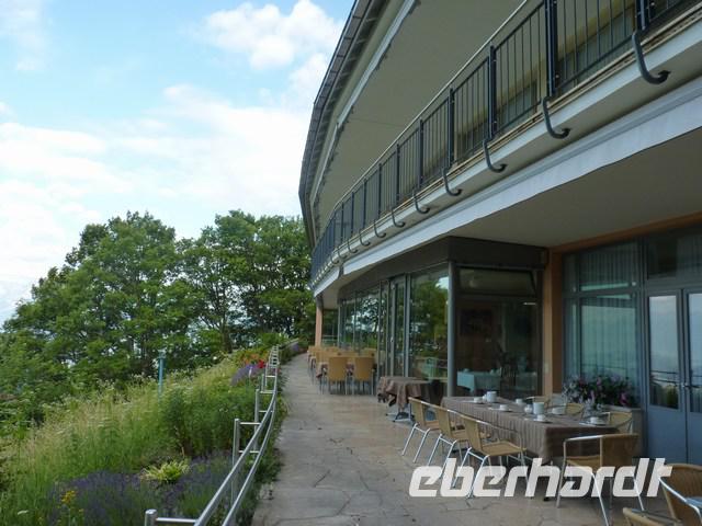Vor den Zimmern und dem Restaurant befindet sich eine großzügige Panorama-Terrasse mit traumhaften Ausblick auf die umliegenden Berge und Länder.