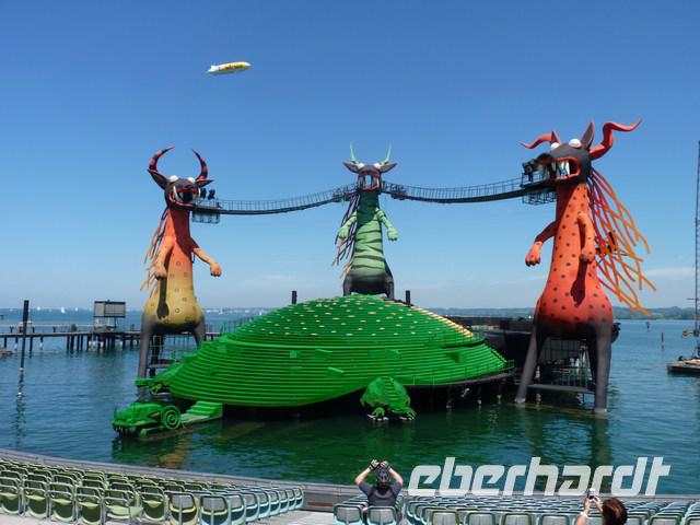 Die berühmte Seebühne liegt malerisch am Bodensee und ist auch außerhalb der Spielsaison zu besichtigen. Die oft äußerst phantasievollen Bühnenkulisse (2014 Zauberflöte, mit den Drachenhunden) und ein toller Blick auf See und Ufer lohnen den Besuch in jedem Fall.