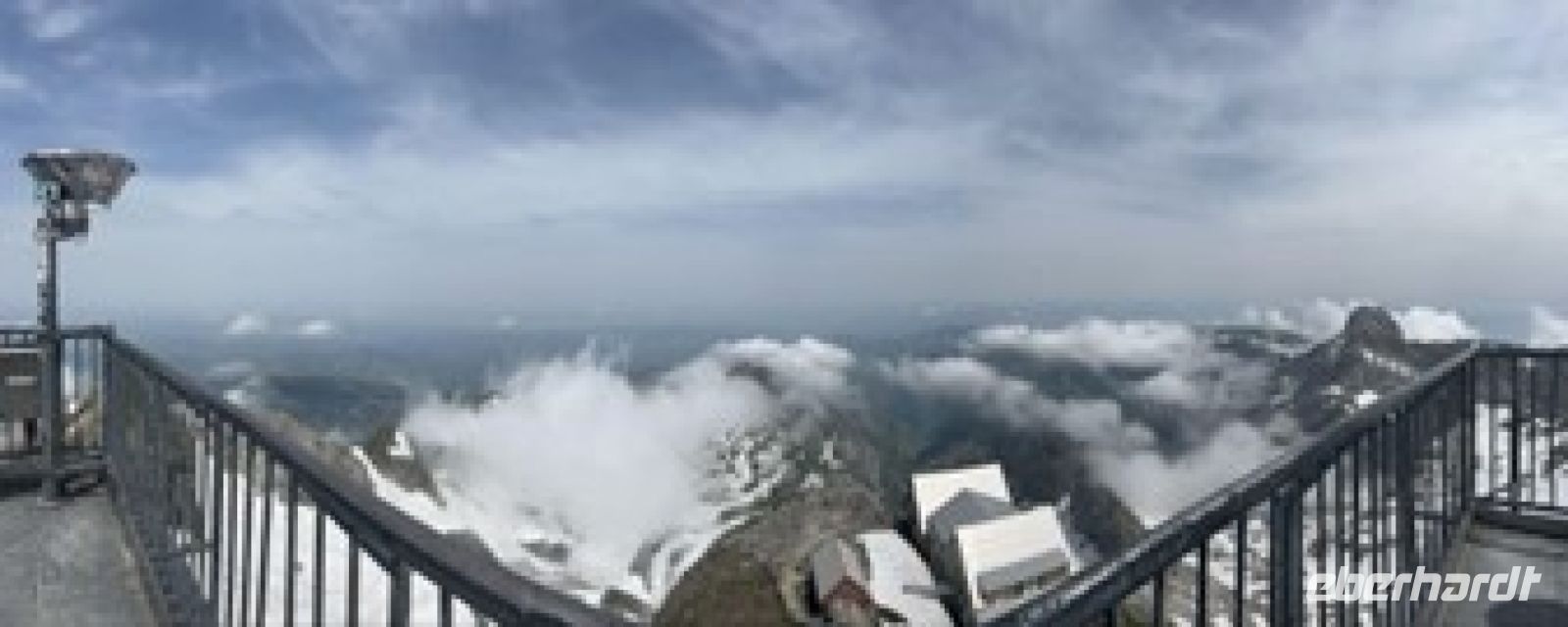 Heute steht der Höhepunkt der Reise an. Wir “besteigen” den 2.502m hohen Säntis, den höchsten Berg der Ostschweiz. Durch die Region Toggenburg gelangen wir zur Schwägalp. Mittels der Seilbahn “besteigen” wir den Säntis in einer 10 minütigen Fahrt durch Nebel. Angekommen am Gipfel genießen wir im Panoramarestaurant typisch schweizerische Gerichte. Vom Plateau aus beobachten wir die spektakulären Ausblick über den Bodensee und die faszinierende Bergwelt. Auf dem Weg zum Hotel durchqueren wir das Appenzellerland. Nach einem kleinen Stopp in der Stadt Appenzell, mit seiner schönen kleinen Altstadt, fahren wir wieder nach Österreich.