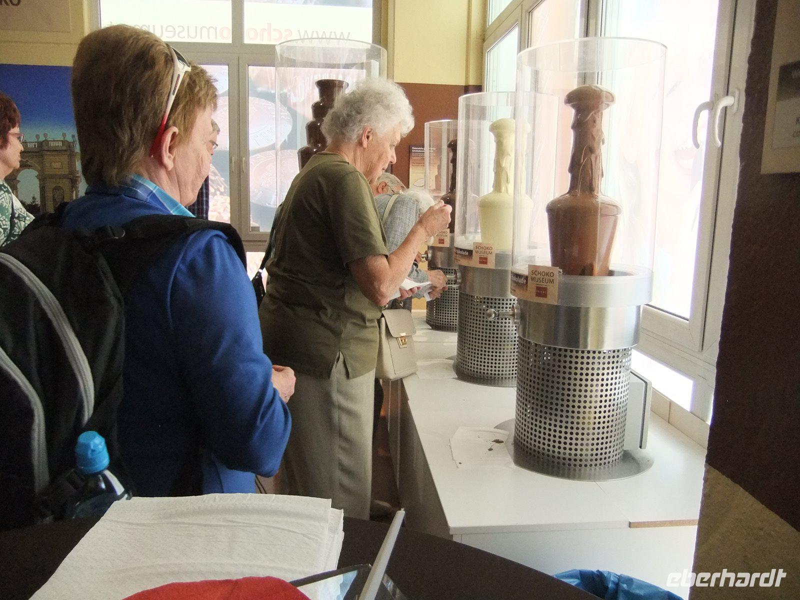 Am Schokobrunnen dürfen wir Verkoster sein.