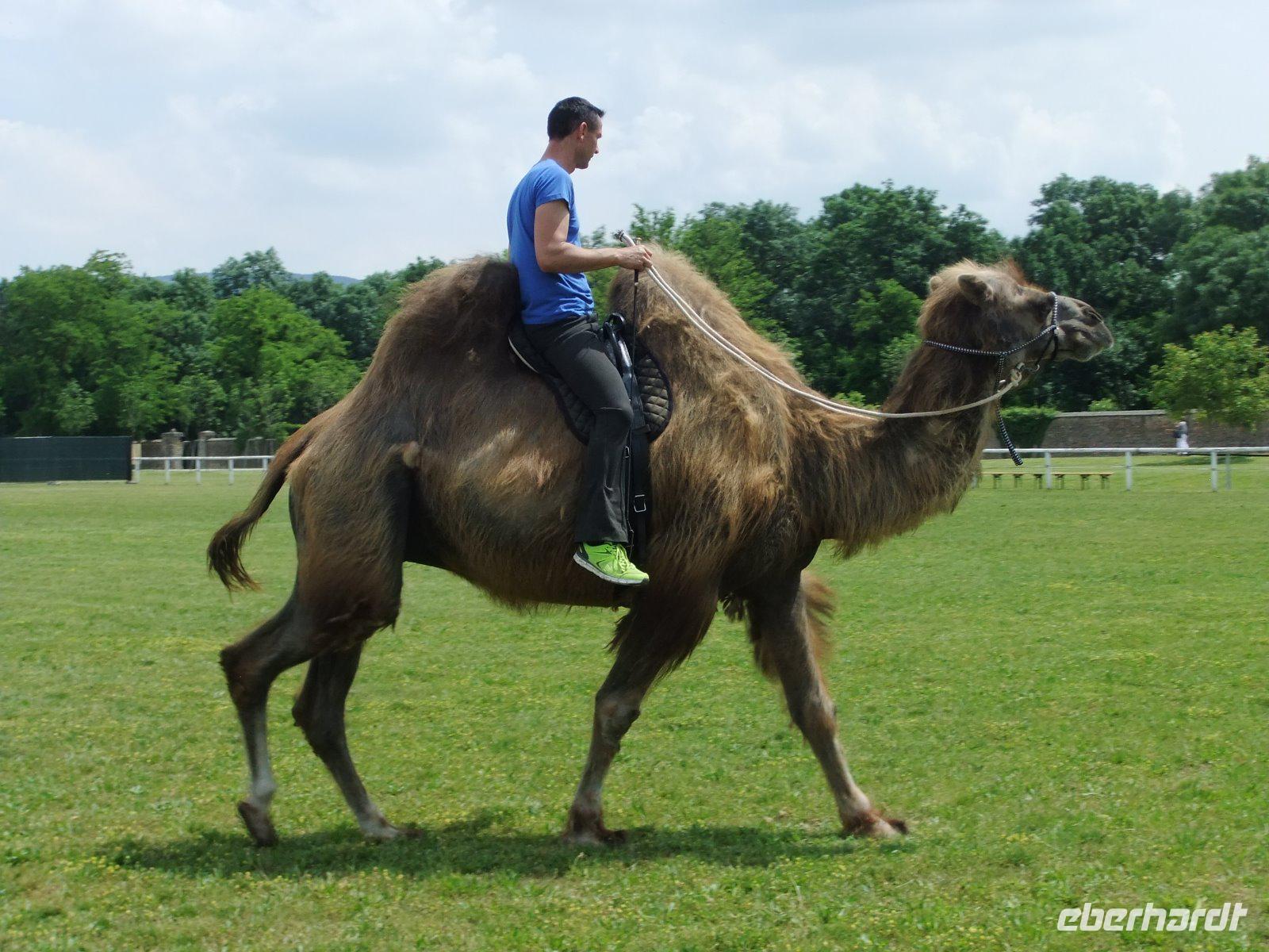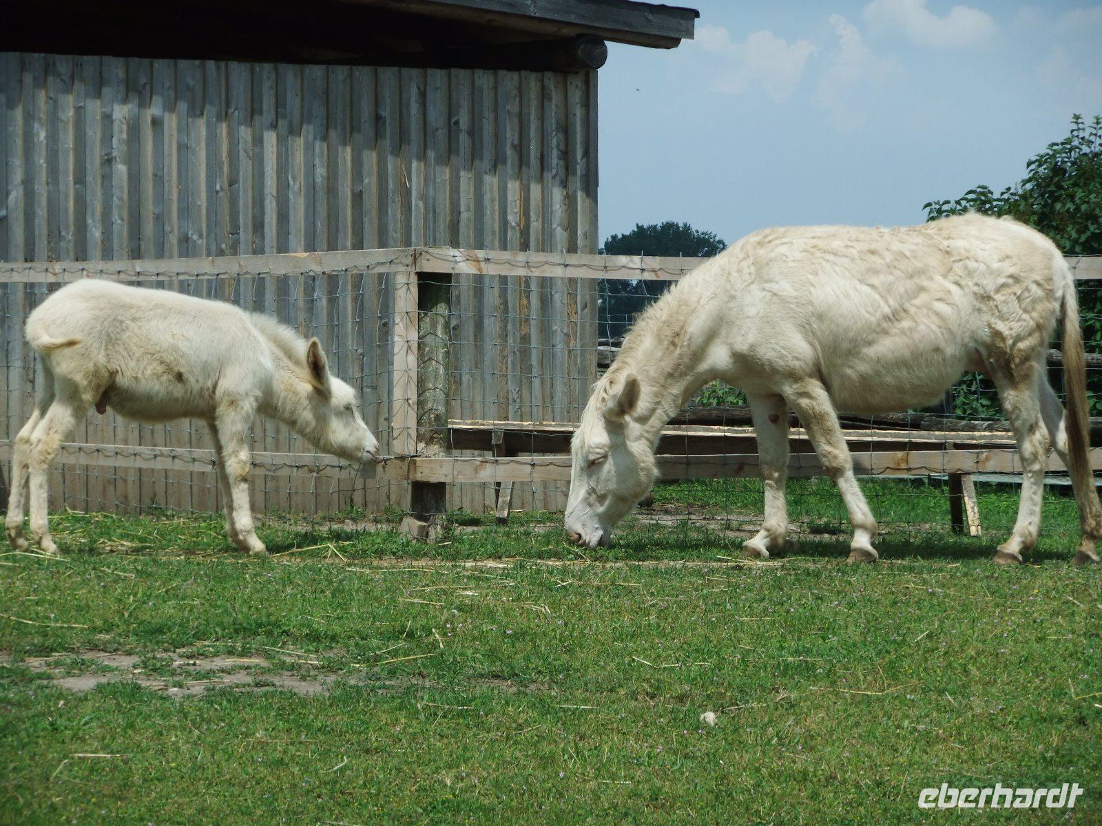Wir sehen weiße Esel, Pferde und manches Trampeltier,