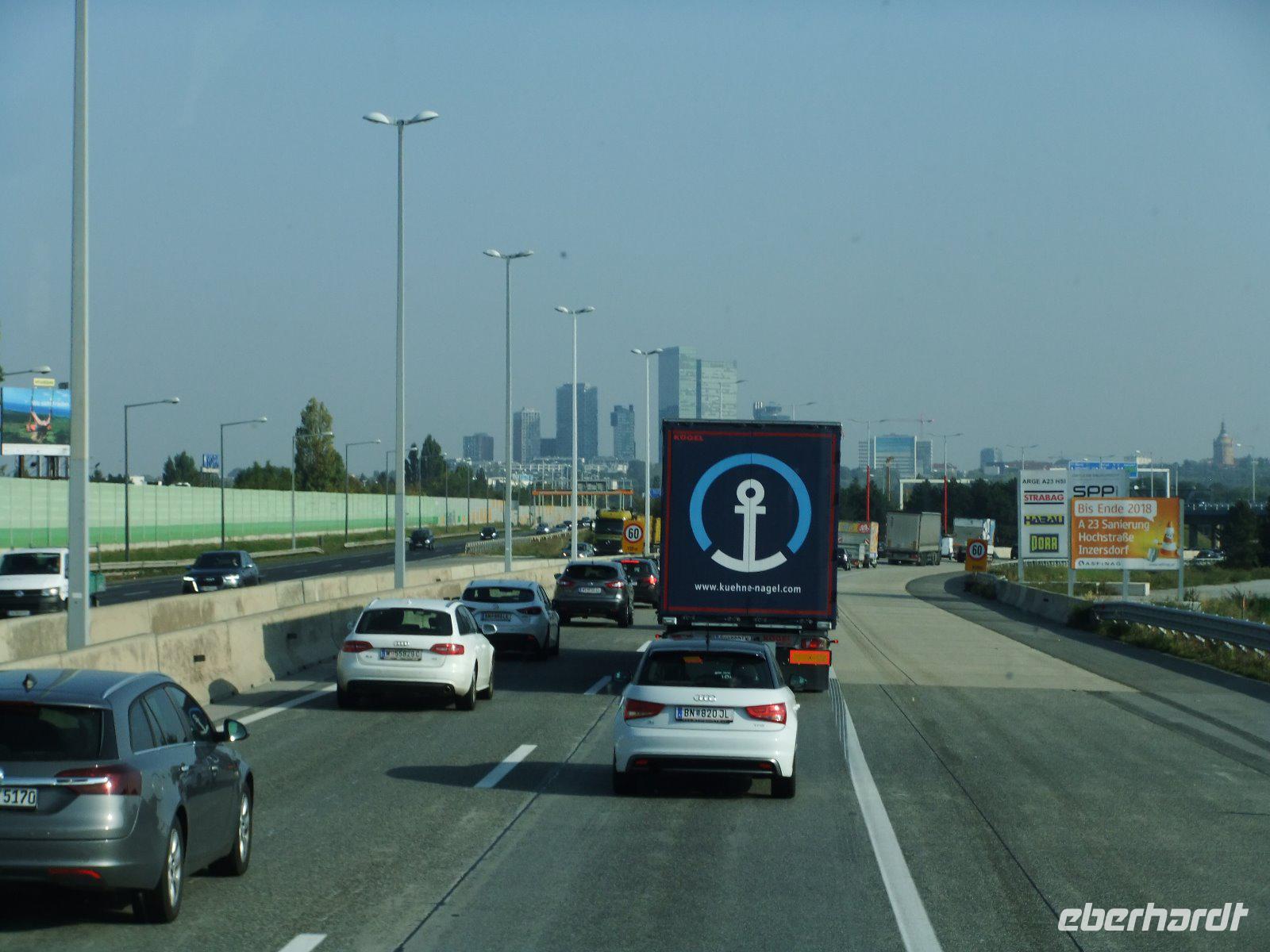 Unsere Fahrt führt uns zunächst nach Tschechien. Wir umfahren Prag und dann weiter auf der D 1. Nach Jihlava geht es durch zahlreiche Dörfer. Aufgrund von umfangreichen Bauarbeiten müssen wir mehrmals an der Ampel warten. Kurz vor der österreichischen Grenze machen wir unsere letzte Pause in Merlins Kinderwelt. Wir kommen nun durch das Weinviertel und schließlich nach Wien. Schon von weitem sehen wir die beiden Hausberge der Stadt: den Kahlenberg und den Leopoldsberg. Vorbei geht es am Fernsehturm und weiter über die Donau. Im Piestingtal erwartet uns dann noch eine „tierische" Überraschung: Unweit der Straße stehen mindestens 20 Gämsen am Hang.