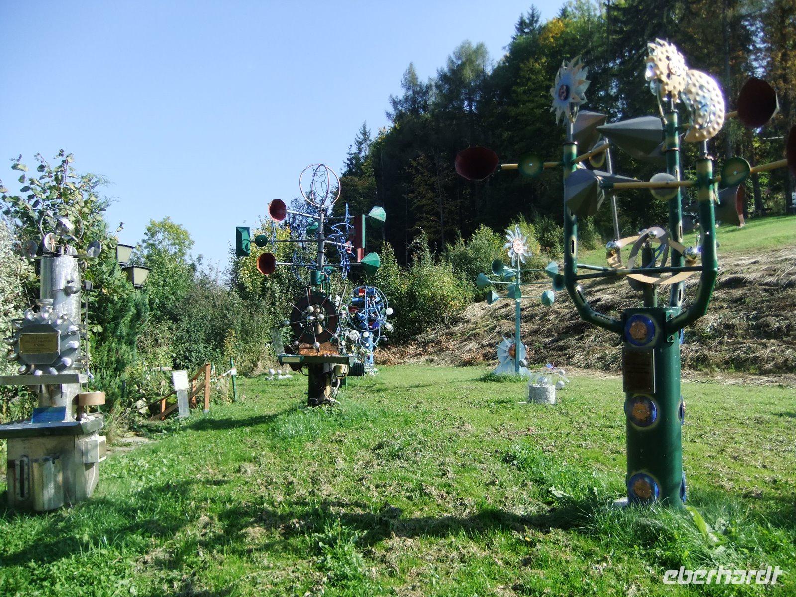 Noch ein Kaffee, dann geht es weiter. Ein kurzer Spaziergang führt uns zum "20 Schilling Blick". Von hier hat man eine tolle Aussicht auf das 184 Meter lange und 46 Meter hohe „Kalte Rinne"-Viadukt der Semmeringbahn, das auf der Rückseite der vorletzten Ausgabe der 20-Schilling-Banknote zu sehen war. Nun besuchen wir den Skulpturenpark Semmering. Der Künstler Ignaz Semlitsch hat hier mehr als 30 Skulpturen aus verschiedenen Metallen und Acryl aufgestellt. Sie tragen Namen wie „Der Gletscher", „Der vorsichtige Golfer", „Universumkarussell" und „Brunnen tanzender Kugeln".