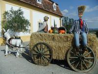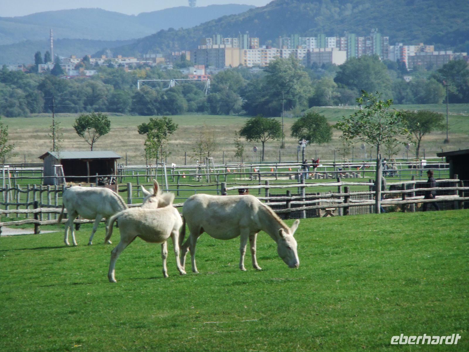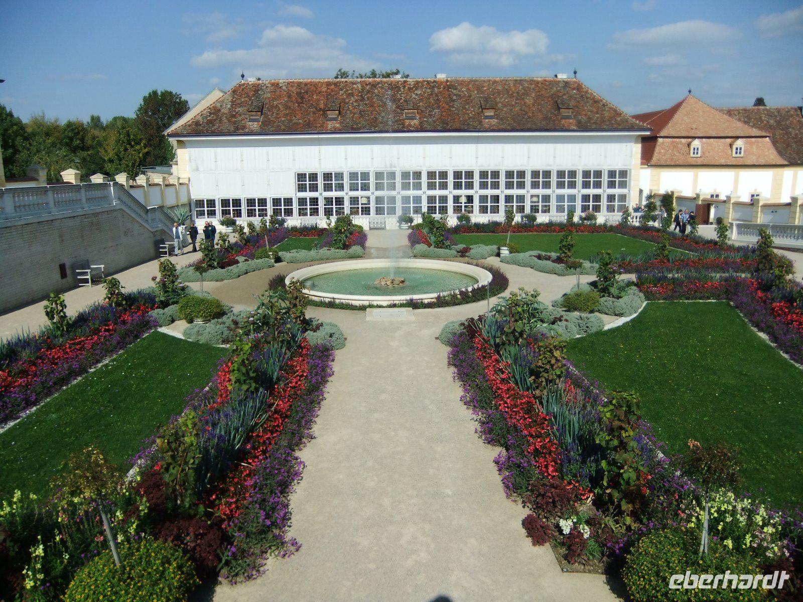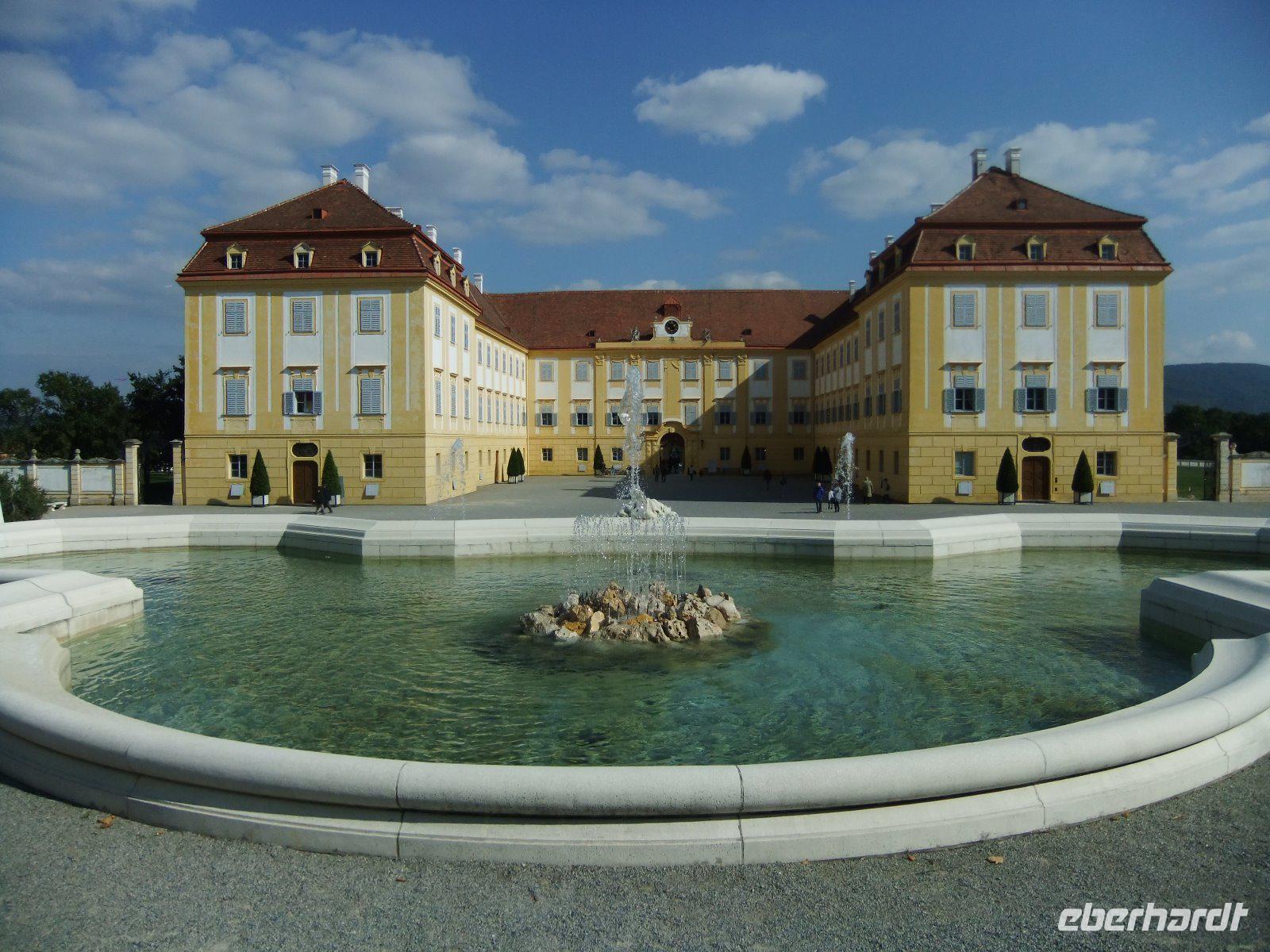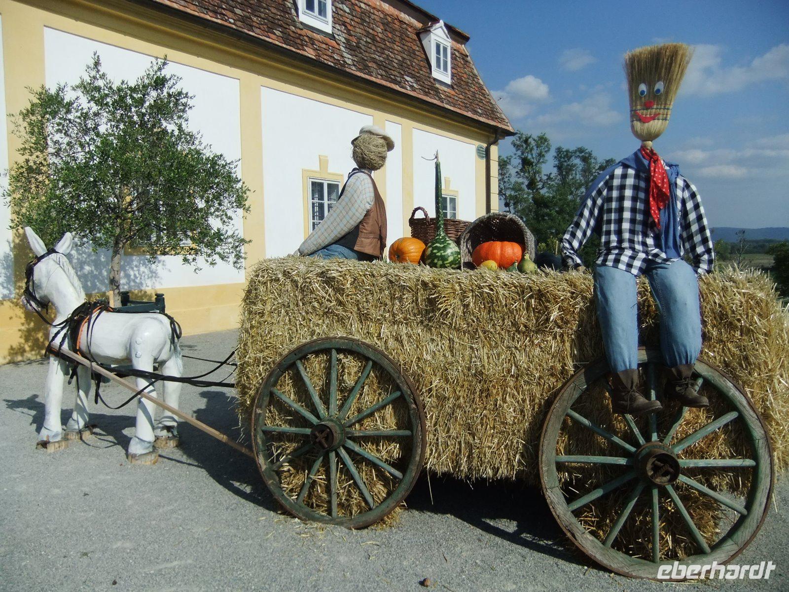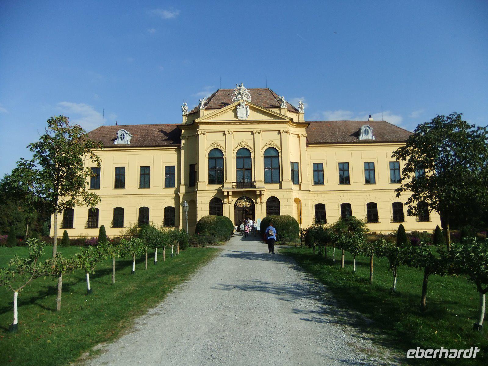 Entlang des Donaukanals, vorbei an zahlreichen Gewächshäusern, einer Erdölraffinerie und dem Flughafen Schwechat führt uns unsere Reise zur „Kornkammer" Österreichs. Unser Ziel ist das Schloss Hof im Marchland. Auch hier wird heute gefeiert, nämlich das Drachensteigfest. Fluggeräte in vielen Formen und Farben steigen gen Himmel. Im Schloss ist derzeit u.a. eine Ausstellung über Maria Theresia zu sehen. Nach einem kurzen Rundgang durch die Räumlichkeiten bestaunen wir die barocke Gartenanlage, die sich über sieben Etagen erstreckt. Außerdem besuchen wir die Orangerie und den Gutshof. Pferde, Schafe, Trampeltiere, Alpakas, Ponys, ja sogar Ziegen mit vier Hörnern und weiße Barockesel haben hier ein Zuhause. Auch Duftgarten, Rosengarten, Bauerngarten, und Gemüsegarten sind sehr interessant. Hier könnten wir sicher einen ganzen Tag verbringen, doch wir wollen noch das Jagdschloss Eckartsau in den Donau-Auen besuchen. 16 Uhr beginnt unsere Führung. Wir begeben uns dabei in die bewegte Zeit von Thronfolger Franz Ferdinand, der hier jagte, sowie von Kaiser Karl, der mit seiner Familie im November 1918 im Schloss Zuflucht suchte.
