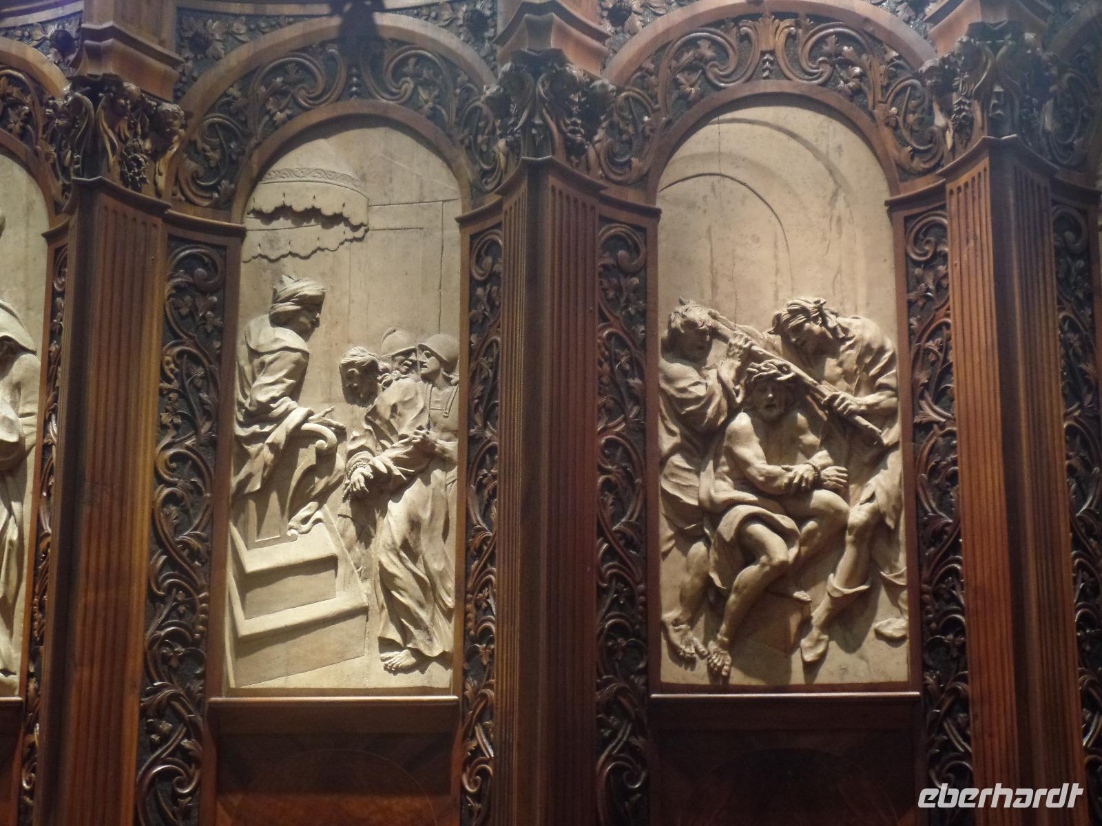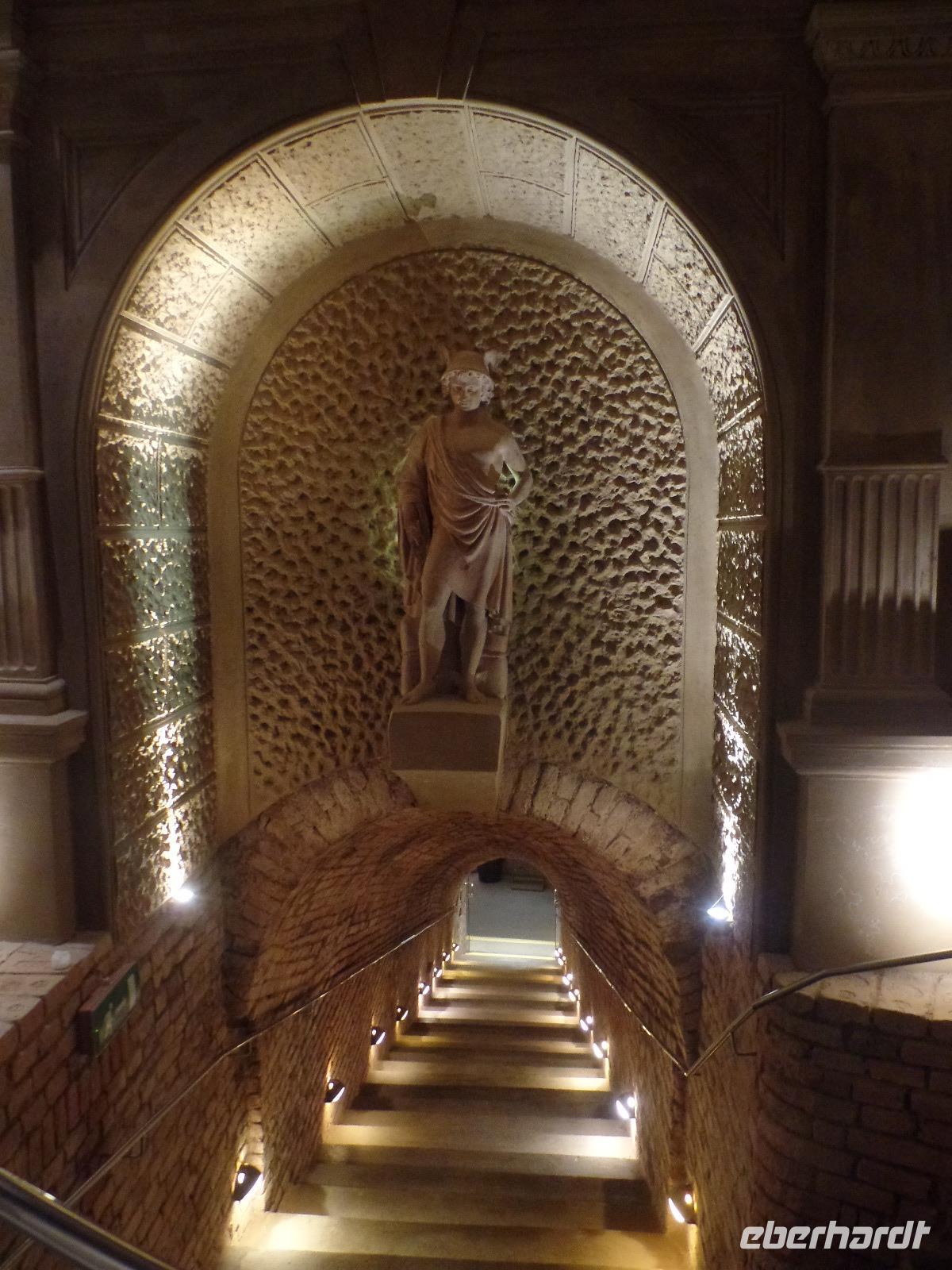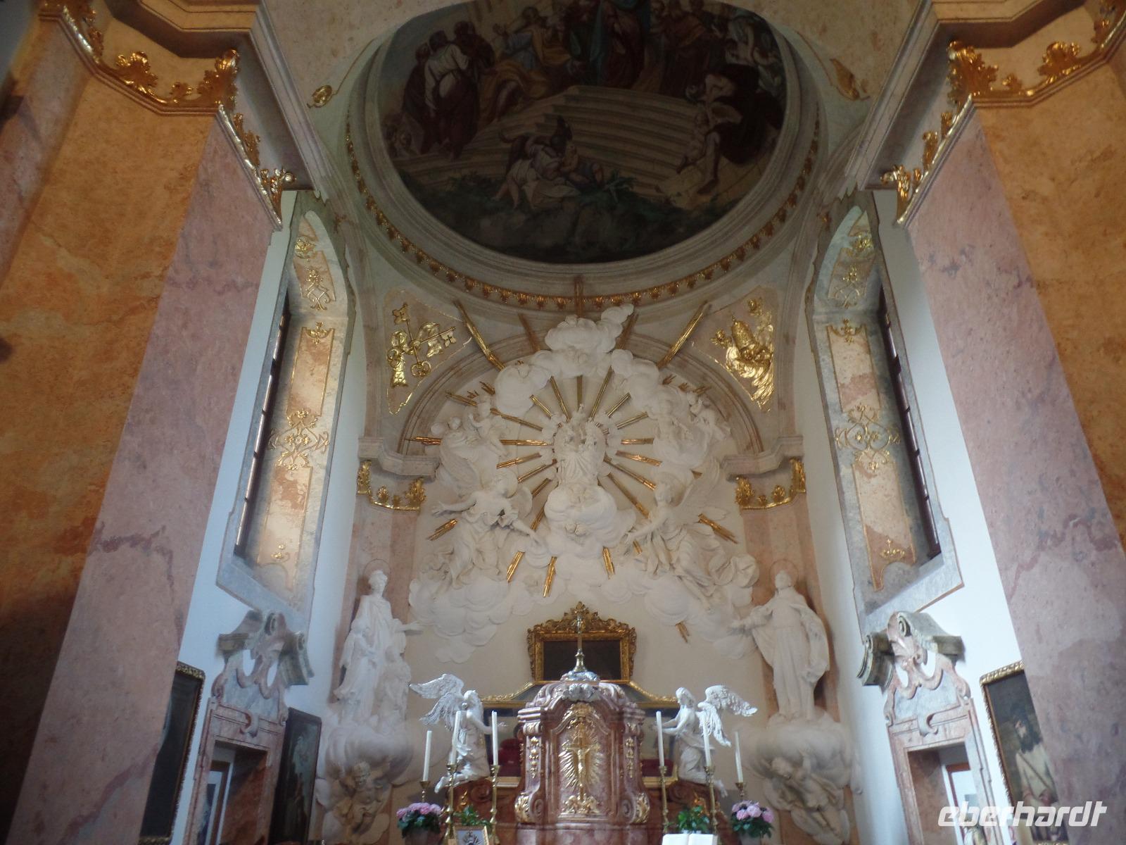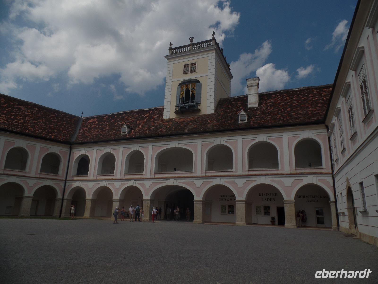 Die Schlossanlage in Laxenburg besitzt zwei Schlösser das Alte und das Neue Schloss. Unser Augenmerk lag jedoch auf dem wunderschönen Schlosspark und der Franzensburg. Nach einem Spaziergang durch die Parkanlage erreichten wir einen See. Vor uns lag die romantische Franzensburg auf einer Halbinsel. Bequem brachte uns die Fähre auf die andere Seite. Die Habsburger habe hier eine Ritterburg entstehen lassen. Jedoch wurde sie nie als Wohnstätte genutzt sondern schon immer als Museum konzipiert. Man ließ sich eine Traumwelt bauen. Dazu gehören 4 Sälle und 20 Zimmer. Die meisten Einrichtungsgenstände stammten aus anderen Burgen, Schlössern und Kirchen und waren oft Geschenke an die Habsburger. Nach einer interressanten Führung fuhren wir durch das Hellental zur Zisterzienserabtei Stift Heiligenkreuz. Ein Novize führte uns durch die heiligen Hallen. Neben der Stiftskirche sahen wir den Kreuzgang und das Brunnenhaus. Es ist noch ein lebendiges Kloster, wo jeden Tag ca. 90 Mönche beten. Nach diesem Besuch stand noch ein besonderer Höhepunkt an, der Besuch der Bersdorfer Stilklassen. In Bernsdorf errichtete ein Sohn der Familie Krupp eine Besteckfabrik. Seinen Mitarbeitern ließ er Sozialwohnungen, eine Kirche und ein Theater bauen. Für die Kinder der Angestellten jedoch 2 Schulen errichten. Diese besitzen jeweils 12 Klassenzimmer die in verschiedenen Stilarten aus den verschiedenen Zeitepochen eingerichtet sind. Sie sind so besonders das sie in das Guinessbuch der Rekorde aufgenommen wurden.