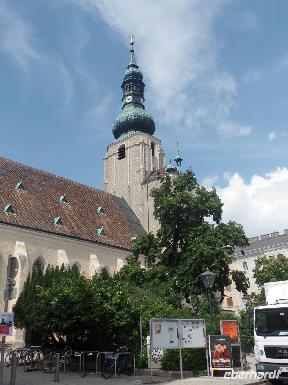 Heute hofften wir besonders auf schönes Wetter, den wir wollten den Schneeberg erklimmen. Der Salamanderzug brachte uns auf 2169m Höhe. Schon die Fahrt war ein Erlebnis immer wieder gab es schöne Aussichten. Nun hatten wir Zeit eine kleine Wanderung zu unternehmen und die blühenden Alpenblumen zu betrachten oder die Elisabeth Kirche zu besichtigen. Nachdem es wieder abwärts ging verschlechterte sich das Wetter und es fing an zu regnen. Deshalb fuhren wir nicht zur Raxalpe sondern nach Baden bei Wien. Wie sich herausstellte eine gute Idee. Blauer Himmel und Sonnenschein erwartete uns. Sepp unternahm einen Rundgang durch das schöne Kurbad. Er zeigte uns die Pestsäule, das Theater, die Kirche und den Kurpark. Vorbei am Casino erreichten wir wieder den Grünen Markt. Auf dem Weg zum Hotel stand noch der Besuch des Gauermann Museum an. Der berühmte Maler aus der Biedermeierzeit lebte und arbeitete im Pistingtal.