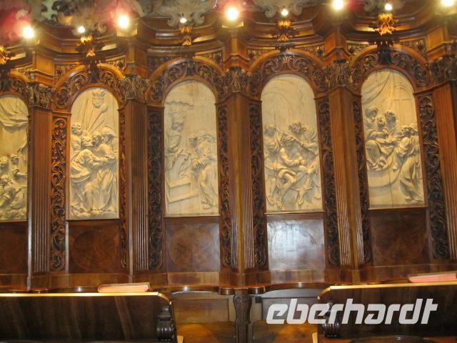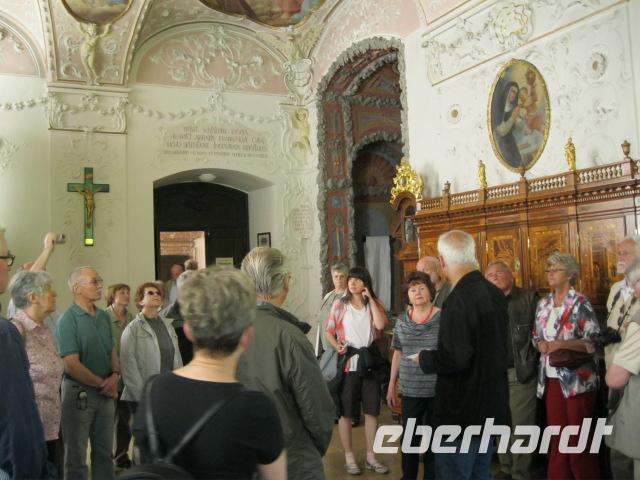 Die "Schlacht am kalten Büffet" fand zum Frühstück statt. 450 Personen mussten fast zeitgleich abgefüttert werden. Kurze Staus und Engpässe wurden hingenommen, hatte doch das Personal alle Hände voll zu tun. Wir hatten sowieso am Vormittag Freizeit und somit keinen Druck. Die Gäste wurden vom Riesenrad des Praters angelockt. Einige wollten zum Kultfriedhof der Wiener (Centralfriedhof mit Ehrengräbern) oder sich die Parkanlagen des Bellvedere noch genauer ansehen. Gegen 13.00 Uhr starteten wir zu unserem geplanten Ausflug in den Wiener Wald. Im Stift Heiligenkreuz wurden wir mit Gregorian. Gesängen begrüßt. Bei der Führung war zu spüren, wieviel Ruhe so ein Aufenthalt im Kloster bringen kann. Danach pulsierte allerdings das Leben in vollen Zügen - bei einem Spaziergang in Baden bei Wien. Im Weinbaugebiet Gumpoldskirchen kehrten wir zum Heurigen ein. Es erwartete uns nicht nur ein Stelzenessen mit gutem Wein sondern auch ein original "Wiener Lied" Sänger. Er trug nicht nur zu unserer Unterhaltung bei, er forderte uns zum mitsingen auf. Gut gelaunt kehrten wir am frühen Abend ins Hotel zurück.