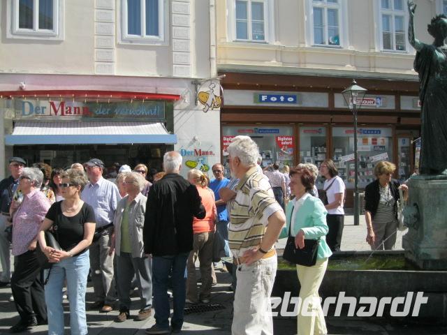 Heute wollten wir die Hauptstadt der Öster. Republik etwas genauer erkunden. H.Paminger holte uns zur Stadtrundfahrt direkt vom Hotel ab. Wir sahen wie Wien immer rasanter wächst (Uno City) aber gleichzeitig auch viel Grünflächen und Freizeitmöglichkeiten (Donauinsel) zu bieten hat. Die einmalige Architektur des Hundertwasserhauses mussten wir unbedingt gesehen haben. Am Theresienplatz endete erst einmal unser kleiner Ausflug, den wir aber sofort zu Fuß durch die Hofburg fortsetzten. Nachdem wir vorbei an Museen, Ausstellungen, Kirchen, verlockenden Auslagen und Konditoreien geschlendert waren, wollten wir auch rein. Freizeit bis zum Abend und die nutzte jeder für sich. Sacher und Demel lockten auf kulinarische Weise. Zum Abendbrot fand sich unsere Reisegruppe im Hotel-Restaurant ein. Die öffentlichen Verkehrsmittel spielten prima mit und keiner ging verloren bzw.jeder fand zum Hotel zurück. Der Abend klang an der Hotelbar aus.