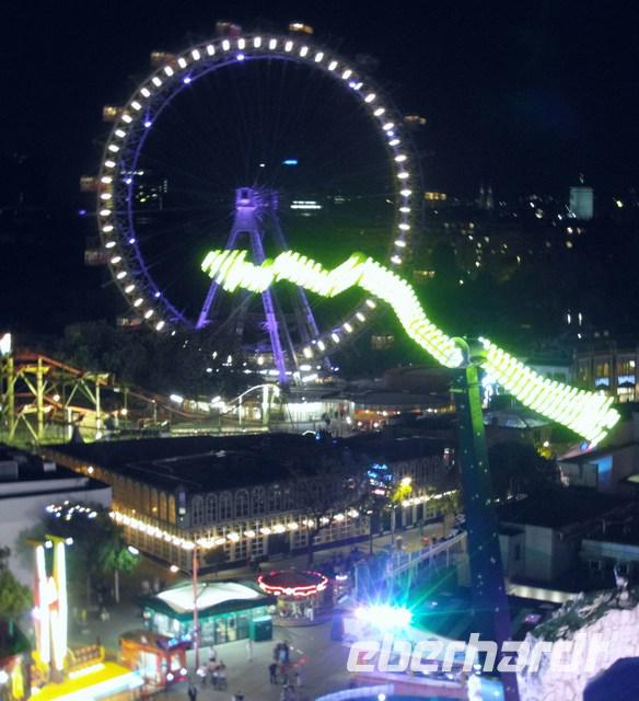 Der Verdauungsspaziergang führt uns über den Prater und ganz Mutige wagen sogar eine Runde in den Fahrgeschäften.