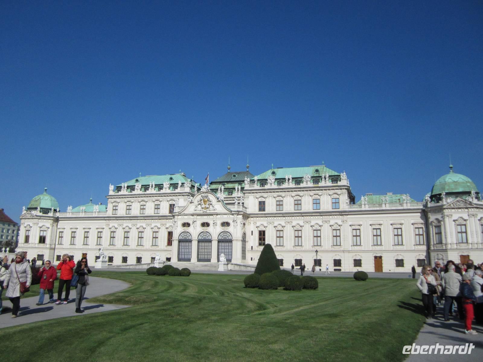 Für die Frühaufsteher steht das Frühstück schon 06.30Uhr bereit und das lässt keine Wünsche offen. Viel Obst aber auch alles andere was man sich wünscht über Ei, Wurst, Fisch oder Joghurt alles ist vorhanden. 9.00 Uhr steht Ingo mit dem Bus vor dem Hotel (und das ist nicht so einfach, er muss ja durch eine sehr belebte Strecke J ) und unser örtliche Fremdenführer Franz Paminger. Wir haben die Stadtrundfahrt auf dem Programm. Wir fahren zur Donauinsel und sehen die UNO City. Weiter geht es der Ringstraße entlang an den Prachtbauten und dem Rathaus vorbei. Am Schloss Belvedere steigen wir aus dem Bus und bummeln entlang des Schlosses und dem Garten. Bei dem Sonnenschein, den wir haben ist das Belvedere auch ein gutes Motiv für unser Gruppenfoto. Der nächste Stopp ist das Hundertwasserhaus, Friedrich Stowasser (bürgerlicher Name) hat im 3. Bezirk das „Natur- und menschenfreundliche Haus" in Gang gesetzt. Sehenswert ist für uns nicht nur das Wohnhaus, sondern auch die Hundertwasser Village. Gegen Mittag steigen wir am Theresienplatz aus und spazieren durch die Hofburg. Ein Höhepunkt ist die Augustinerkirche. Hier hat also Sissi, Franz Joseph I. ihr Ja-Wort gegeben. Unser Rundgang führt uns weiter an der Spanischen Hofreitschule vorbei zum Michaelisplatz und durch das gesamte Areal der Hofburg. Von hieraus haben die Habsburger ihren Vielvölkerstaat bis 1918 regiert und haben europäische Geschichte geschrieben. Franz vermittelt uns die Geschichte der Babenberger und Habsburger in allen Facetten. Der Nachmittag ist frei und wir haben Sonne in Wien. Ein Großteil unserer Gruppe möchte Schloss Schönbrunn sehen. Jetzt heißt es die U-Bahn von Wien kennen zu lernen. Fahrkarten müssen am Automaten gekauft werden und nun geht es mit der U4 zum Schloss Schönbrunn . Jeder erkundet das Schloss und den Park auf seine Weise. Zurück zum Hotel geht es dann mit der U-Bahn. Mit der U4 bis Karlsplatz und der U2 zurück zum Hotel. Am Abend speisen wir im Hotel und es findet ein reger Erfahrungsaustausch zu dem heutigen Tag statt .