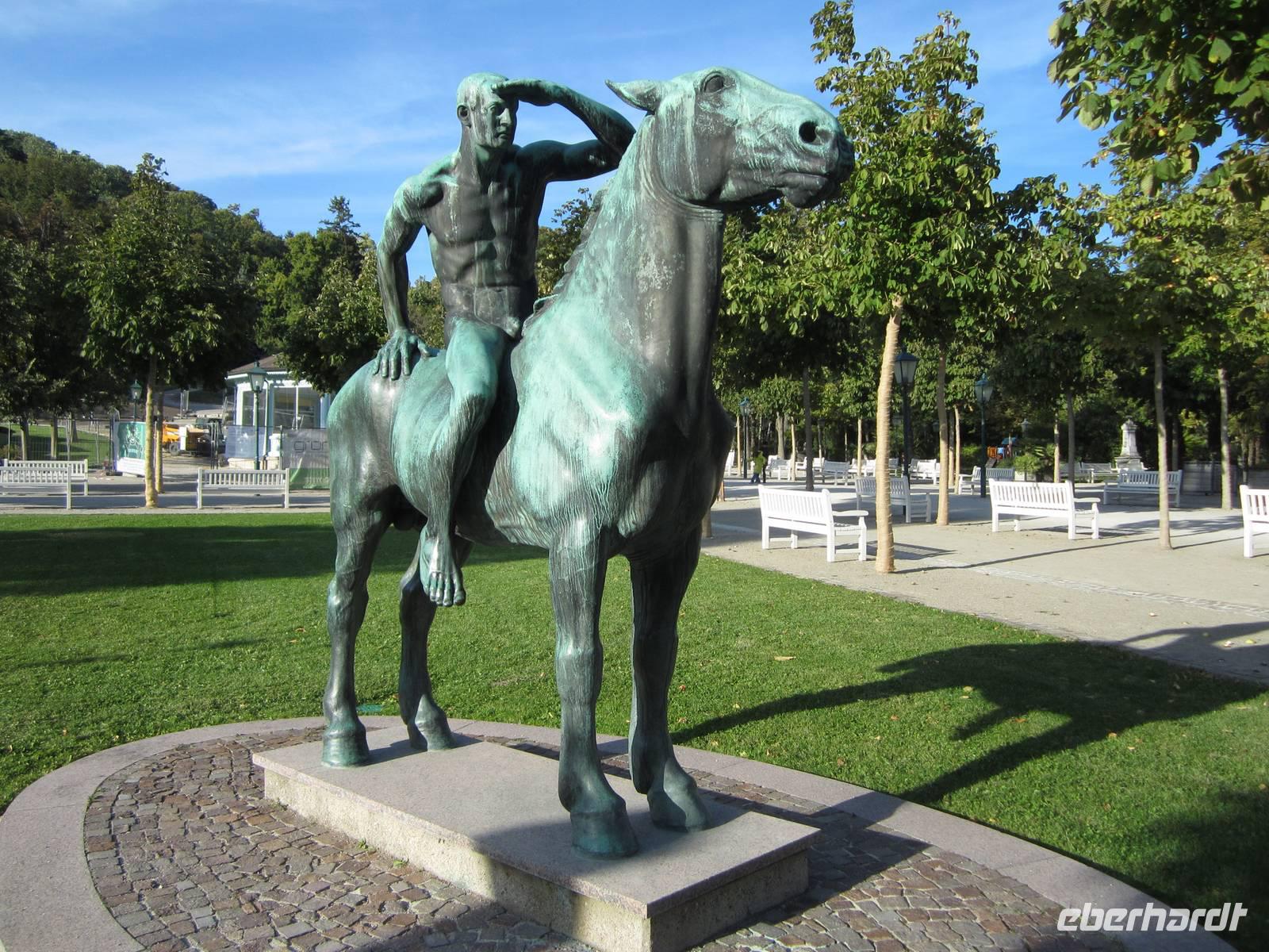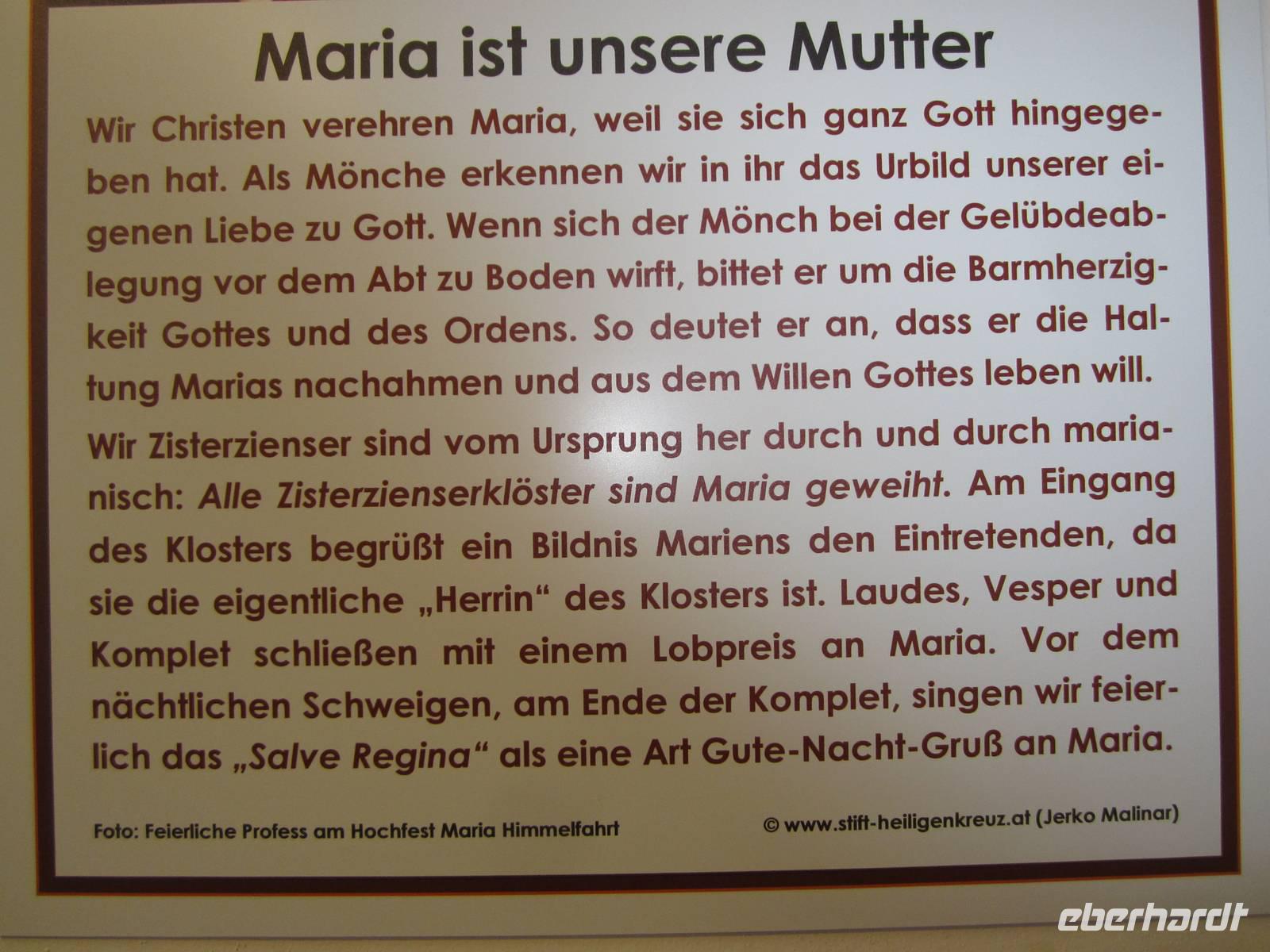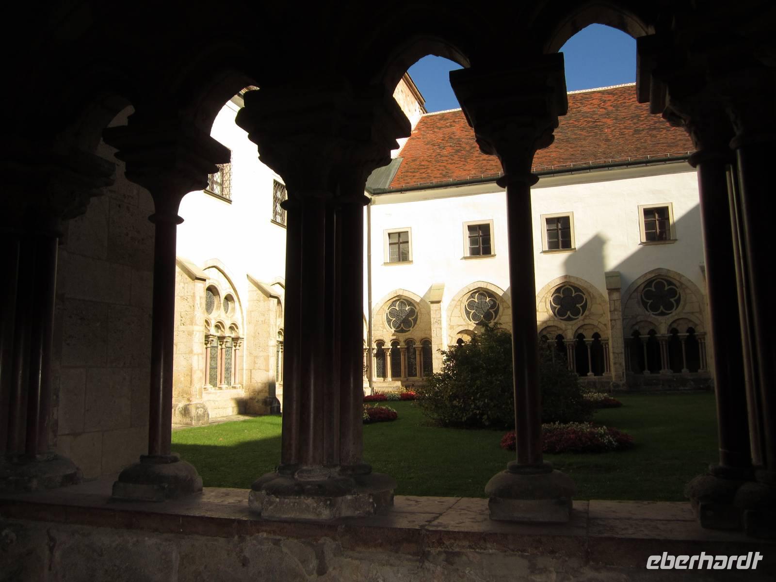 Heute Mittag starten wir unseren Ausflug in den Wienerwald. Am Vormittag besucht ei Teil der Gruppe den Prater, der andere Teil fährt in die Altstadt um noch einmal der "Steffl" oder auch das Kunsthistorische Museum mit seiner großen Breughel-Kollektion zu sehen, Am Mittag fahren wir mit dem Bus in den Wiener Wald. Franz Paminger informiert uns über die unterschiedliche Struktur des Wiener Waldes. Wir haben eine herrliche Sicht auf die Umgebung und viel Sonne lässt die beginnende Laubfärbung zu einem besonderen Erlebnis werden. Bevor wir nach Heiligenkreuz kommen (unser erstes Ziel), sehen wir die Stammburg der Fürsten von Liechtenstein, die hoch auf einen Bergrücken hervorragt. Beeindruckt sind wir vom Stift Heiligenkreuz, der mit seinen 81 Mönchen eine lebendige Zisterzienserabtei ist und seit 880 von seiner Gründung an (1133 vom hl. Leopold) ununterbrochen besteht. Nach der beeindruckenden Führung durch das Kloster fahren wir weiter durch das schöne Helenental in das Biedermeier-und Villenstädtchen Baden. Dem Sommeraufenthalt der Habsburger. Treff der Wiener Gesellschaft im 19. Jahrhundert, die Musiker Strauß, Schubert, C.-M.v.Weber und Beethoven . Auch August der Starke verweilte in Baden. Er ließ sich von seinen Großvetter in Wien heimlich im katholischen Glauben unterrichten und konvertierte heimlich am 1. Juni 1697 in der katholischen Hofkapelle zu Baden. Die Zeitzeugen der vergangenen Jahrhunderte sehen wir uns bei unserem Bummel durch Baden an. Wir haben heute einen weiteren Programmpunkt, der bei keiner Wienreise fehlen sollte. Der Besuch eines "Heurigen" und dazu fahren wir nach Gumpoldskirchen. Beim Heurigen Bruckberger werden wir erwartet. Mit einem Stelzenessen, guten Wein und Musik von Leo genießen wir den Abend bevor es wieder nach Wien zurückgeht.