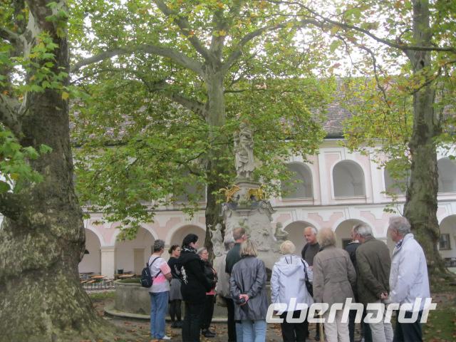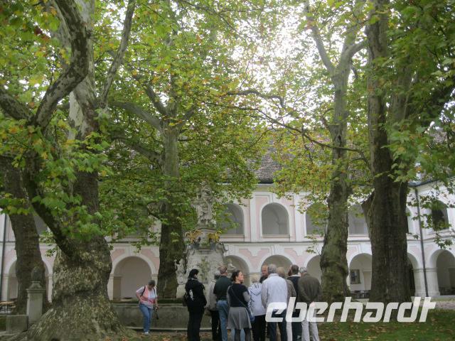 Wir trafen uns gegen Mittag zur Fahrt in den Wiener Wald.Vorbei an der Höldrichsmühle (wo F.Schubert zu seinem "am Brunnen vor den Tore"bekannten Lied inspiriert wurde)erreichten wir Stift Heiligenkreuz.Ein fast 900 Jahre altes Zisterzienserkloster wo heute noch ein Stück des Kreuzholzes von Christi verehrt wird.Es ist ein recht lebendiges Kloster in dem fast 60 Brüder leben u.ausgebildet werden.Nach dem Rundgang ging es durchs Helenental nach Baden bei Wien.Schon immer ein Refugium für betuchte Wiener,die sich hier in den Sommermonaten trafen.Nicht nur die warmen Schwefelquellen lockten Gäste aus aller Länder hierher,nein auch der kaiserl.Hof kurte hier.Nachdem wir uns umgeschaut hatten und ein Bummel durch den wundervollen Park zu Ende ging ,fuhren wir weiter ins Weinland.Gumpoldskirchen war unser Ziel.Dort wurden wir schon mit Wiener Schrammelmusik und Wein empfangen.Das Essen war ausgezeichnet und so taten wir uns mit der Heimfahrt schwer,wurden aber durch die wunderschöne, abendliche Landschaft entschädigt.