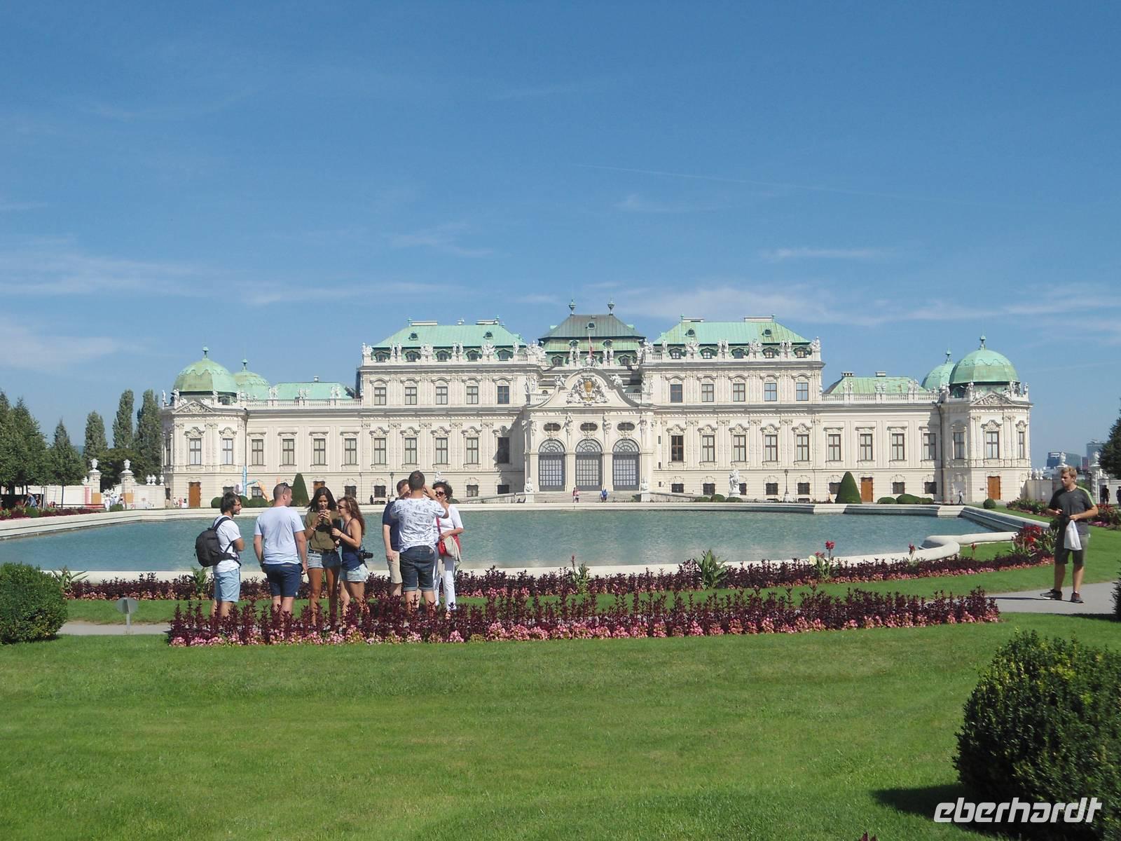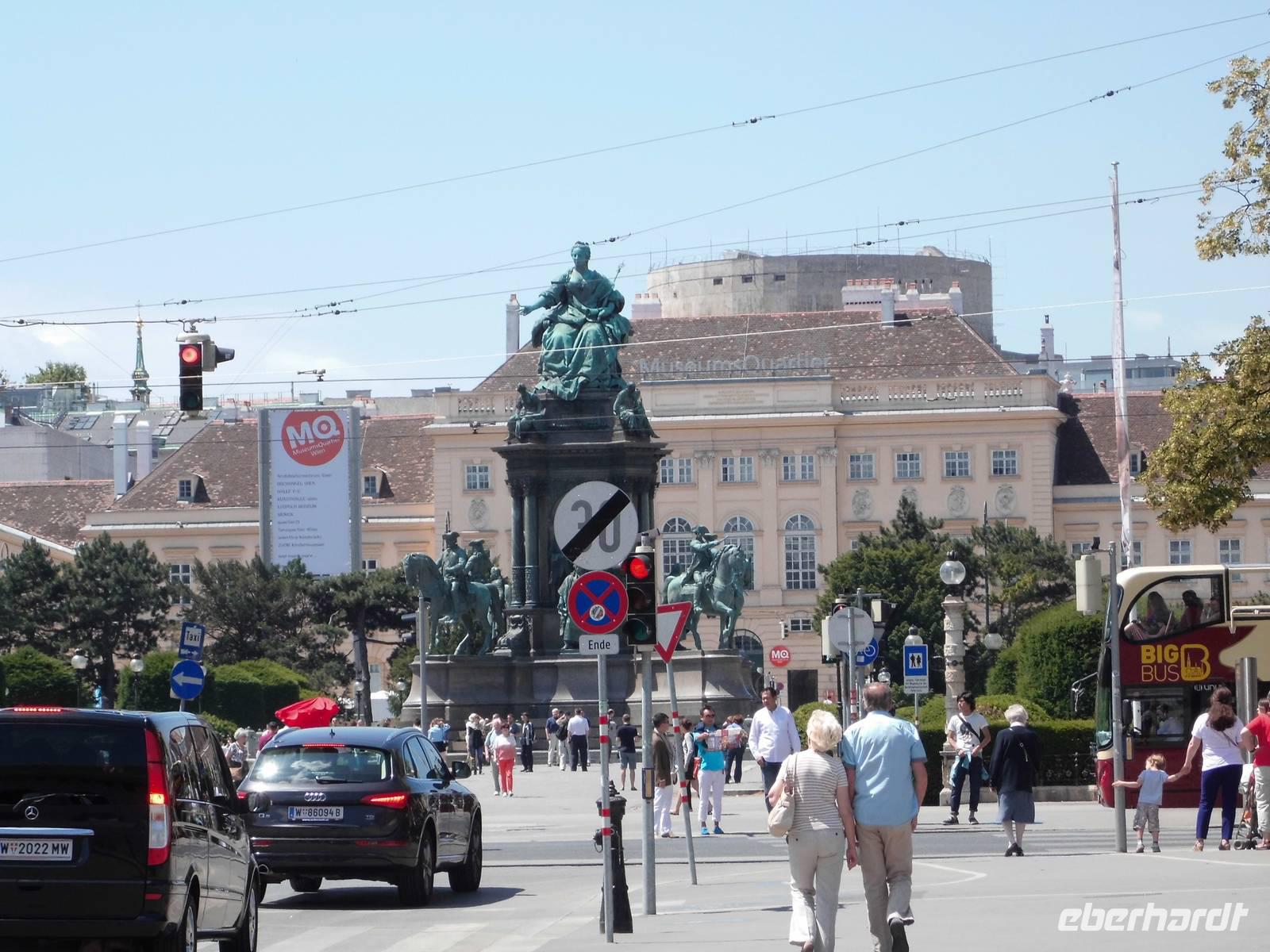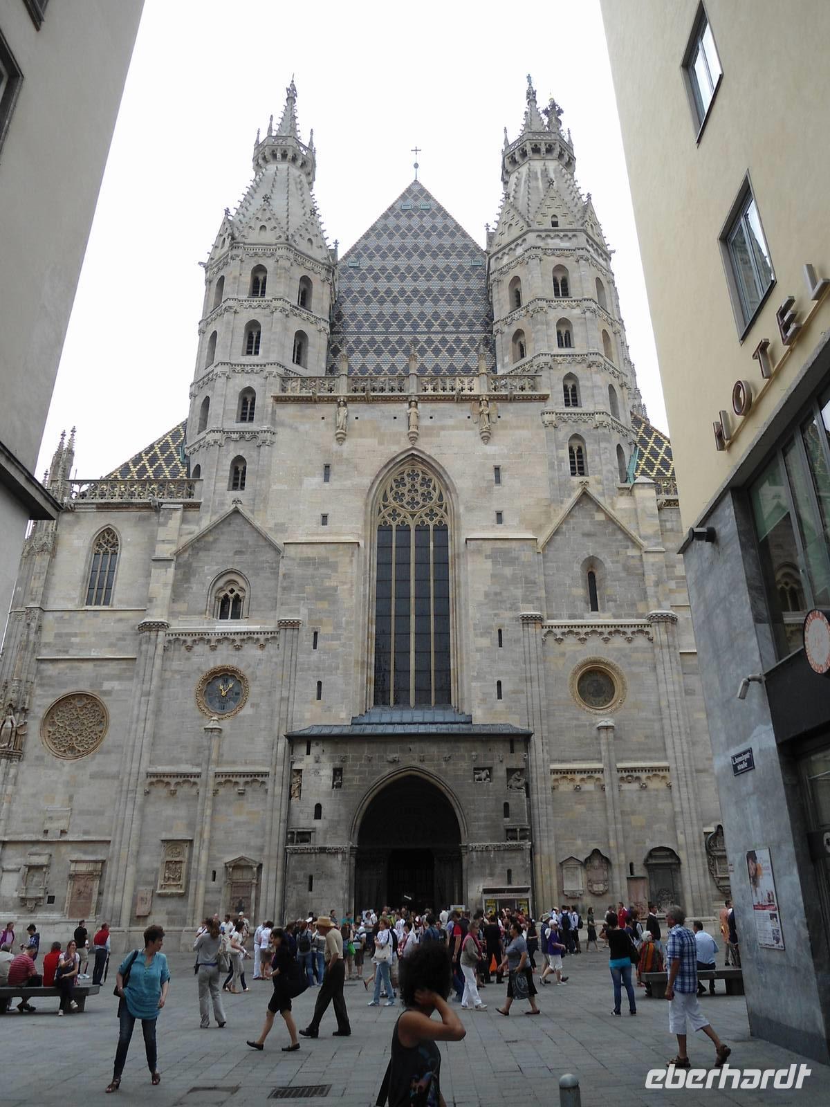 Gut geschlafen und ausgeruht stärkten sich alle Gäste am reichhaltigen Frühstücksangebot. Das Wetter war schon am Morgen sehr schön und versprach einen warmen Tag. 4 Gäste wollten ihre Tagesprogramme selbst gestalten und nahmen somit an der Stadtrundfahrt nicht teil. Unser Stadtführer für alle Ausflüge in Wien, Herr Paminger, war 9.00 Uhr im Hotel, der angemietete Bus stand auch parat und so ging es pünktlich los. Wir durchfuhren den gesamten Ring und sahen dabei die wichtigsten Gebäude und Anlagen wie: früheres Kriegsministerium mit General Radetzki davor - gegenüber die Postsparkasse - Hochschule für angewandte Kunst - die Luxushotels und Palais am Ring - Stadtpark mit dem goldenen Johann Strauß - Kursalon neben dem Stadtpark - Burggarten mit W. A. Mozart - die Zwillingsbauten Kulturhistorisches Museum und Naturhistorisches Museum - dazwischen Maria Theresia und ihre Berater - dahinter das Museumsquartier - gegenüber Eingang zum Heldenplatz - Volksgarten mit Standbild der Kaiserin Sisi - das Burgtheater - gegenüber das Parlament und das Rathaus - Universität - Votivkirche - Börse - Rossauer Kaserne - Schwedenplatz . Wir sahen weiter das Wohnhaus und die Village, entworfen von Friedensreich Hundertwasser. Weiter ging es zum Schloß Belvedere mit einer Außen-Besichtigung dieser Sommerresidenz des Prinzen Eugen von Savoyen, dem Befreier Österreichs von den Türken 1683. Das Schloß Schönbrunn konnten wir nur bei einer Vorbeifahrt bewundern. In der Innenstadt sahen wir weiter die Karlskirche, das Haus des Musikvereins (Spielstätte des Neujahrskonzertes), die Secession (Haus der modernen Kunst). Am Theresienplatz beendeten wir die Rundfahrt und erreichten nach einem kleinen Spaziergang in der Innenstadt die Gaststätte (Beisl) „Bierhof“. Hier erwartete uns ein leckeres Mittagessen (Salat - Gulasch mit Knödel - Kaiserschmarrn). Nach einer ausreichenden Mittagspause trafen wir uns mit Herrn Paminger am "Stephansdom" zur Besichtigung. Vorher erklärte er uns noch rund um den Dom interessante Straßen und Häuser und den Dom von außen. Nach dem Betreten des Domes genossen wir als erstes die kühle Luft. Die Sonne hat es an diesem Tag sehr gut gemeint. Herr Paminger erzählte sehr interessant über die Geschichte des Domes, seine Zerstörung im 2. Weltkrieg, der enorme Wiederaufbauwille aller Bundesländer nach dem Krieg. Er erklärte auch die Kunstwerke im Dom wie den Altar, die Kanzel, die Gemälde, die Figuren, die Grablege u.a. Als Abschluß war noch ein Blick von oben angesagt, entweder vom Nordturm, zu erreichen mit einem Aufzug oder vom Südturm. Dafür mußten allerdings 360 Stufen erklommen werden, das wollte keiner. So fuhren alle per Schnellaufzug zum Nordturm und statteten der „Pummerin“, der bekanntesten Glocke des Domes, einen Besuch ab. Sie läutet nur an besonderen Feiertagen, z.B. 0.00 Uhr zum Beginn jeden Jahres. Mit dem Besuch des Domes wurde der Spaziergang beendet. Die Gäste hatten Zeit für eigene Prammgestaltung.
