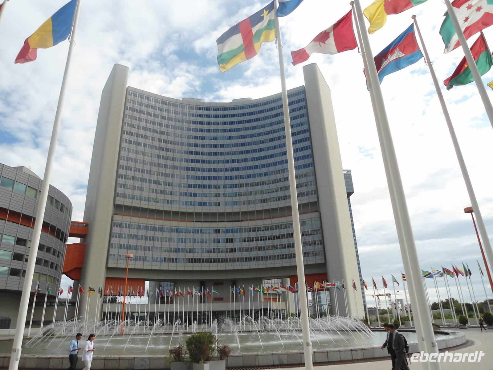 Wir starteten am Vormittag zu unserem letzten gemeinsamen Ausflug mit allen Reisegästen. Unser Ziel war die "UNO", die auch in Wien ansässig ist. Herr Paminger holte uns am Hotel ab und mit der U-Bahn hatten wir sehr schnell unser Ziel erreicht. Strenge Regeln gibt es zum Betreten des Geländes, es ist exterritorialer Bereich. Auch hat die UNO ihre eigenen Führer, uns erwartete eine Dame. 1970 wurde ein Verwaltungskomples in Wien errichtet um die Stadt neben New York, Genf und Nairobi als weiteren Hauptsitz der UNO zu profilieren. Heute ist hier untergebracht die Organisation der Vereinten Nationen für industrielle Entwicklung (UNIDO), für internationales Handelsrecht (UNCITRAL), die internationale Atomenergie-Organisation (IAFA) und das Büro des Hohen Kommissars für Flüchtlinge in Wien (UNHCR). Wir sind durch Gebäude geführt worden, Arbeitsräume durften nicht besichtigt werden. Das Abhalten einer Konferenz konnten wir von einem Balkon aus verfolgen.