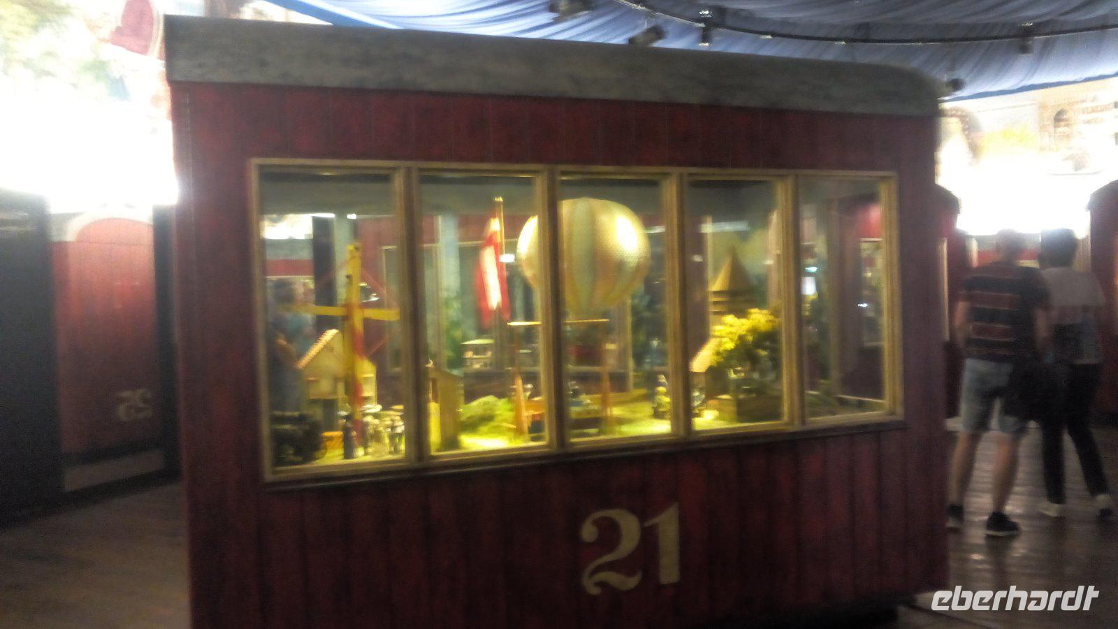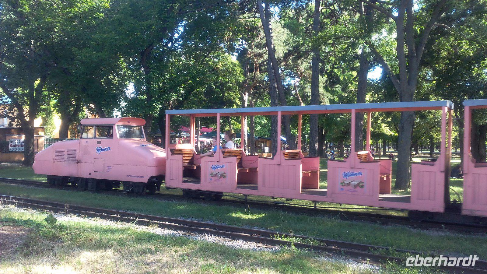 eines der Wahrzeichen von Wien. Denn was sagen die Wiener, wer nicht mit dem historischen Riesenrad gefahren ist, der war nicht in Wien. Nach einer Einführung in die Geschichte des Riesenrades durch Franz fahren wir ca. 20 min in einer Gondel für uns allein und haben eine herrliche Sicht auf die Stadt Wien. Danach bummeln wir durch den Vergnügungspark und fahren mit der Liliputbahn durch den Auwald bis zur Station Stadion und zurück. An diesem sommerlichen Abend ist es ein besonderes Erlebnis, die ca. 4 Kilometer in 20 min mit dieser Bahn zu fahren. Franz vergisst dabei nicht die Leipziger Feldbahn-Unternehmen Brangsch(später VEB Baumechanik Engelsdorf) und die Firma Waggon - und Maschinenbau &Co Görlitz zu nennen, die die Bahn erbaut haben und beteiligt waren. Nach dieser Fahrt werden wir im Paterbeisel Meierling erwartet. Bei einem leckeren Abendessen mit Frittatensuppe, Wiener Schnitzel und Schokoladenkuchen lassen wir den Abend ausklingen.