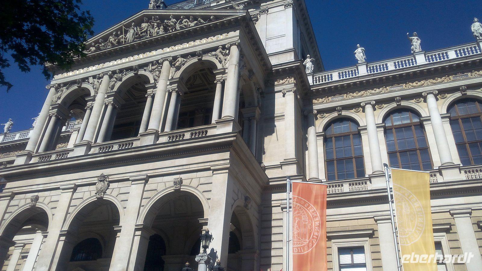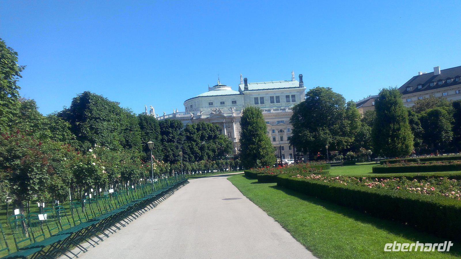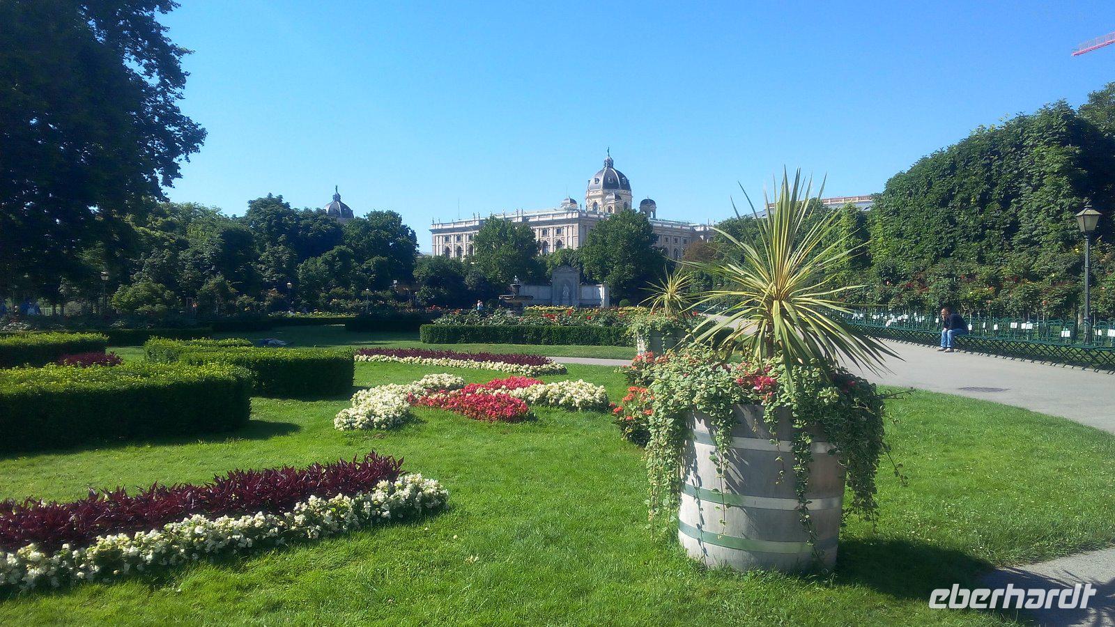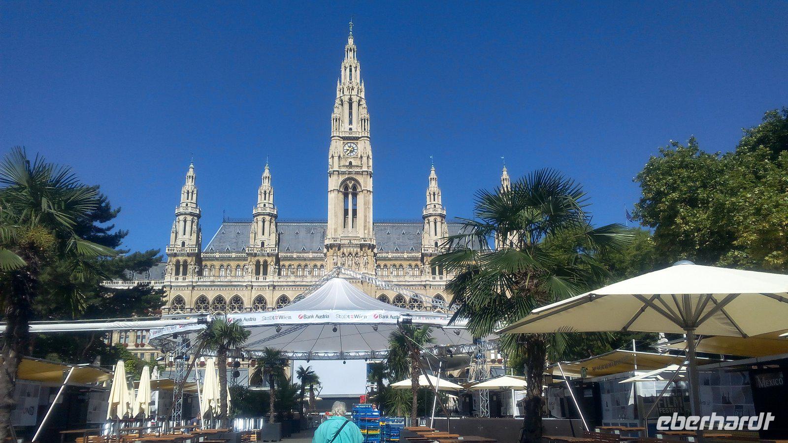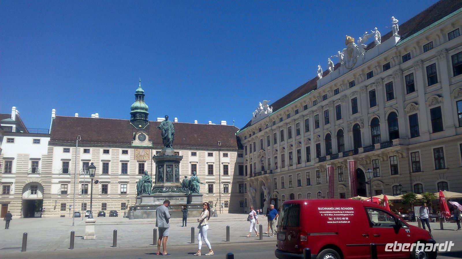 haben wir einen Blick auf das Hofburgtheater, dem Rathaus und auch dem Parlamentsgebäude, welches zurzeit saniert wird. Franz führt uns