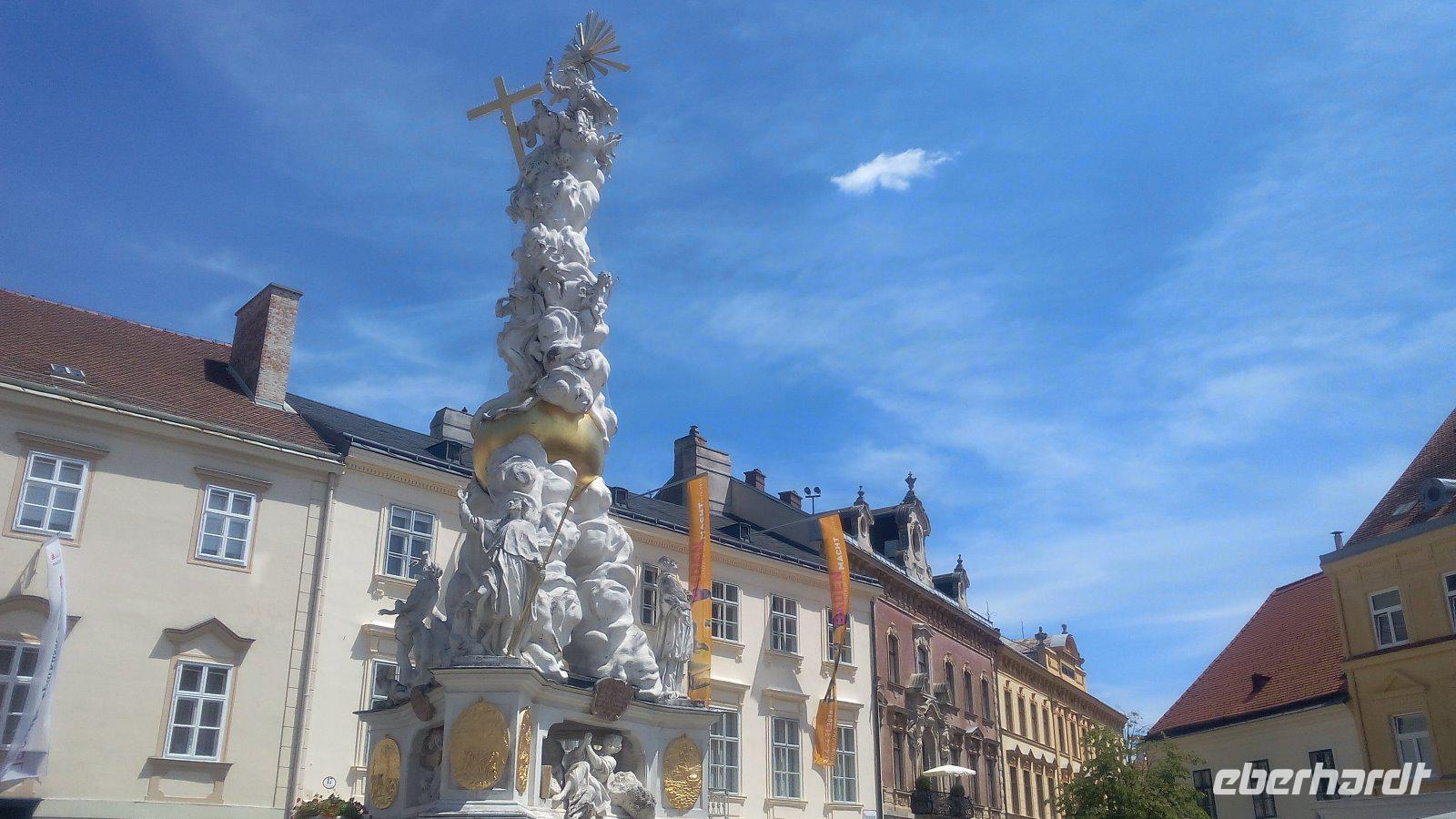 Der heutige Vormittag wir genutzt um ganz individuelle Wünsche zu erfüllen. Das bedeutet für die Einen ein Einkaufsbummel in der Kärntner - oder der Maria Hilfer Straße, für andere der Besuch des Zentralfriedhofs. 12.00 Uhr treffen wir uns an der Station der Badener Bahn. Ca. eine Stunde fahren wir nach Baden. Bei sehr sommerlichen Temperaturen kommen wir in Baden an und spazieren durch das reizvolle Biedermeier und Villenstädtchen. Franz informiert uns zu den Sommeraufenthalten des Habsburgischen Hofes und den vielen berühmten Musikern, die diese Stadt bekannt machten. Wir spazieren vom Josefplatz zum Rathausplatz und sehen auf dem Hauptplatz u.a. die Dreifaltigkeitssäule, das Rathaus und auch das Kaiserhaus. Auf unseren weiteren Spaziergang stehen wir vor dem Theater