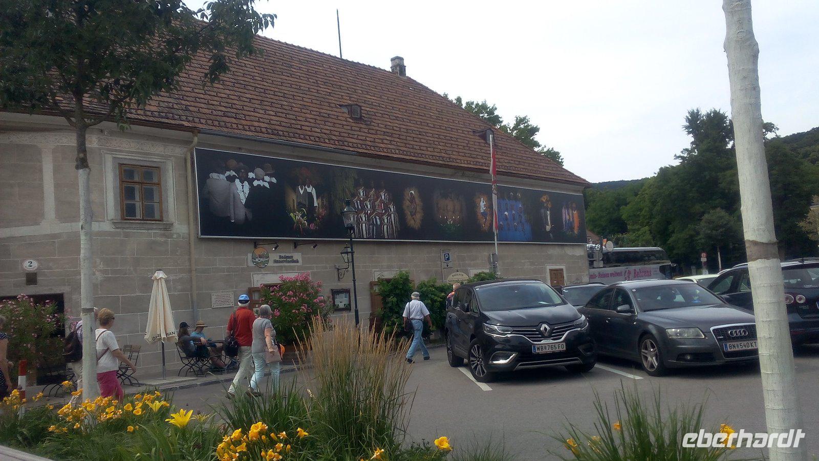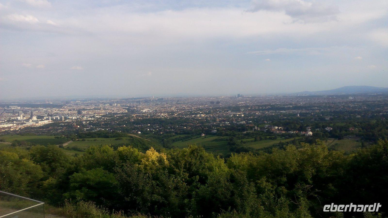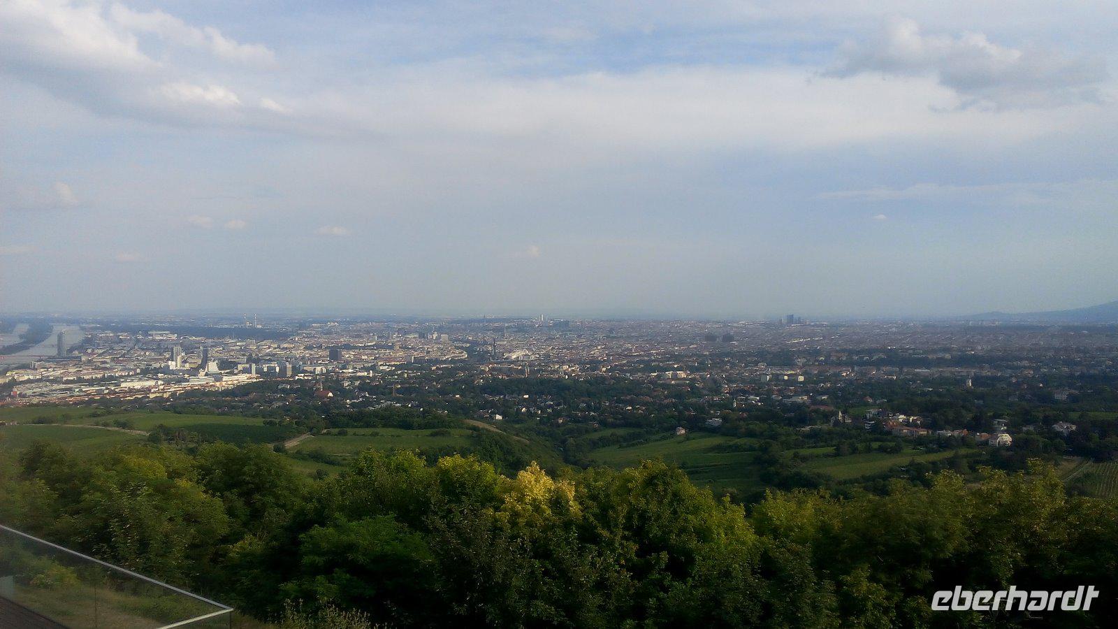 fährt. Franz macht uns die Freude und schließt sich uns an. Mit der Straßenbahn 38 und 38A gelangen wir auf den 484 hohen Kahlenberg, der der bekannteste Aussichtspunkt auf Wien ist. Anschließend fahren wir zurück nach Grinzing zum Heurigen Rudolfshof. Bei einem guten Essen, der Weinschorle und der Schrammelmusik ist dieser Abend ein wunderschöner Abschluss unserer Wienreise. Mit einem "Fluchtachterl" stoßen wir auf die schöne Reise und Eberhardt-Travel an und verabschieden uns von Grinzing.