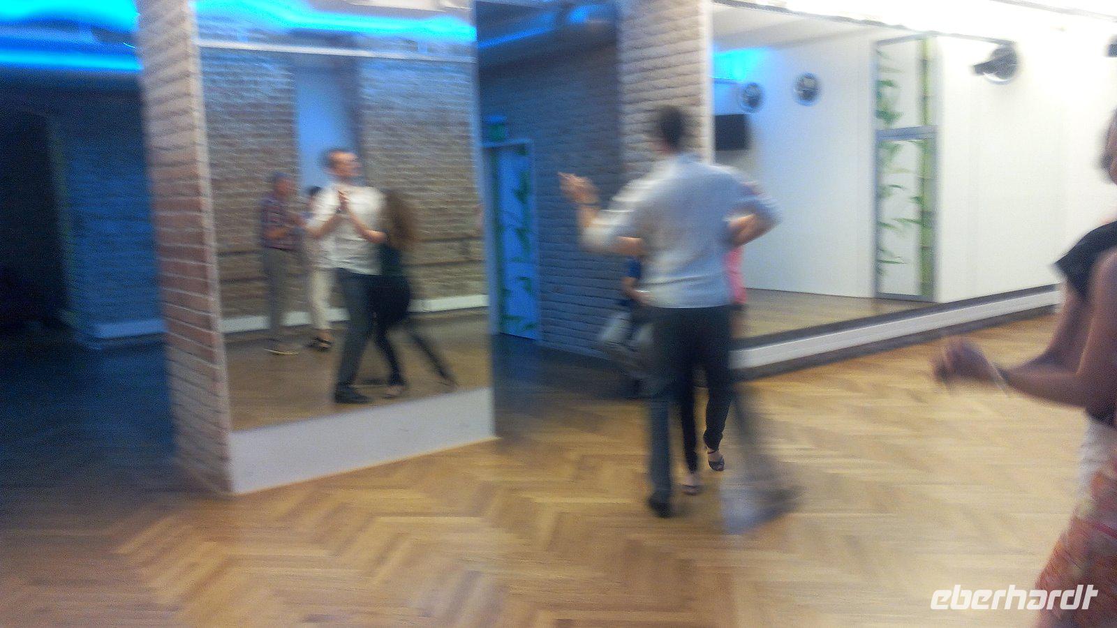 Ein Tanzlehrer und seine Assistenten bringen uns die Schritte bei. Eins-Zwei-Drei, Eins-Zwei-Drei und vielen Tipps, die wir erhalten. Bewusst wird uns erst hier, dass einige von uns den Schummelwalzer tanzen. Wir haben die Stunde aber alle mit Bravour gemeistert.
