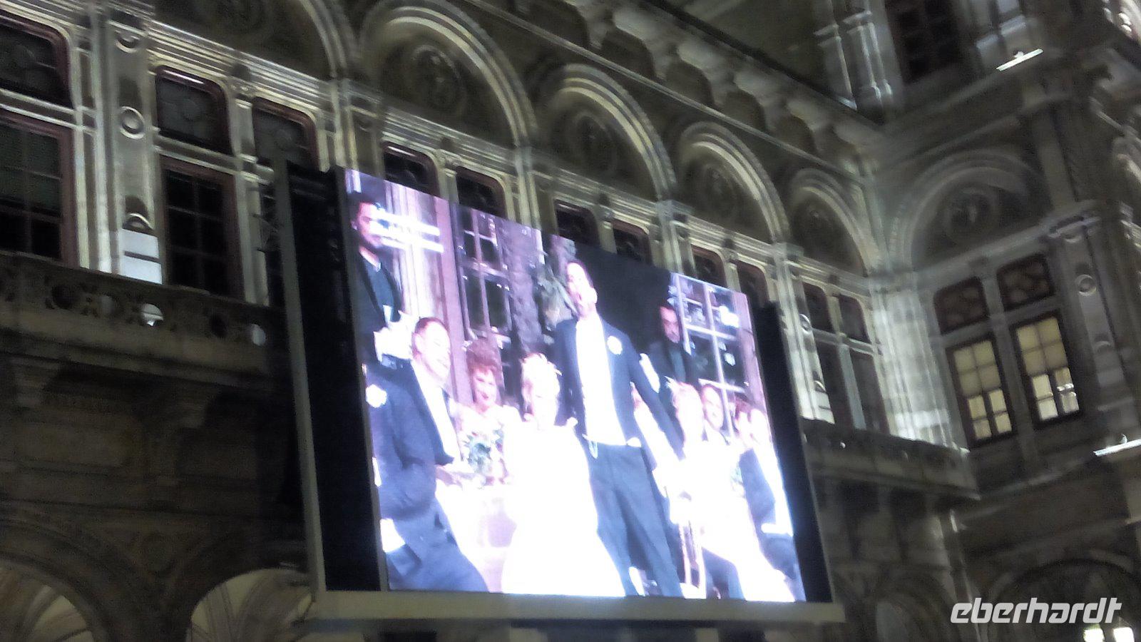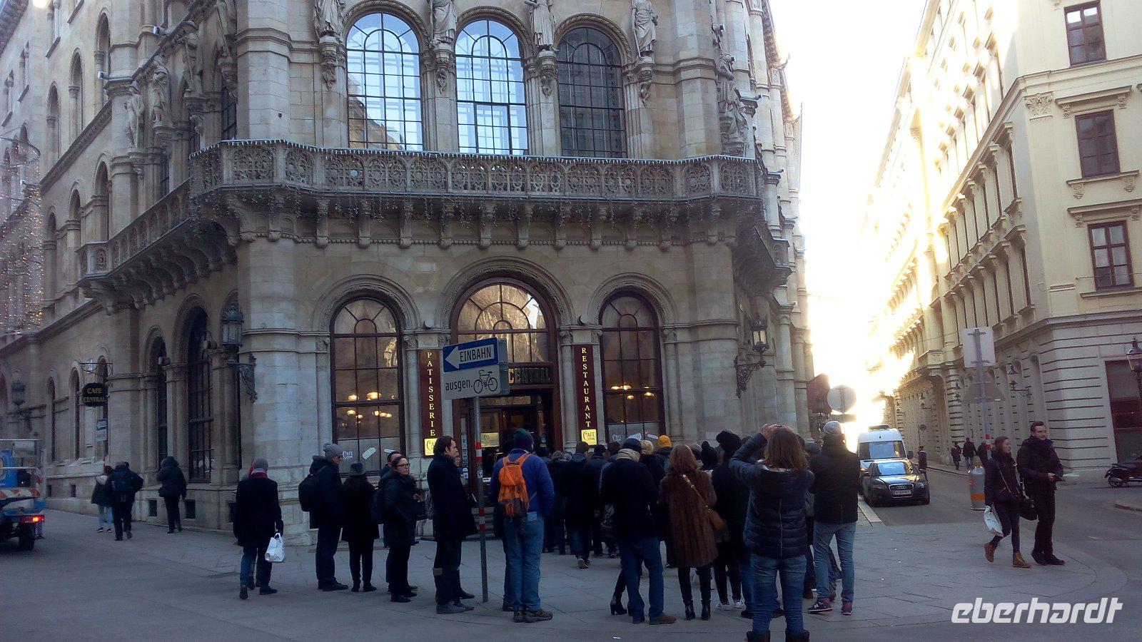 Ein besonderer Tipp für diesen Abend war die Live-Übertragung der "Fledermaus" aus der Wiener Staatsoper am Herbert von Karajan-Platz. Ulrich war so nett und fährt uns vom Restaurant zur Oper damit wir einen Teil der " Fledermaus" noch erleben können. Danach trennt sich unsere Gruppe und gut ausgerüstet mit dem Programmheft für den Pfad, findet auch jeder für sich das passende Programm zum Prosit Neujahr.