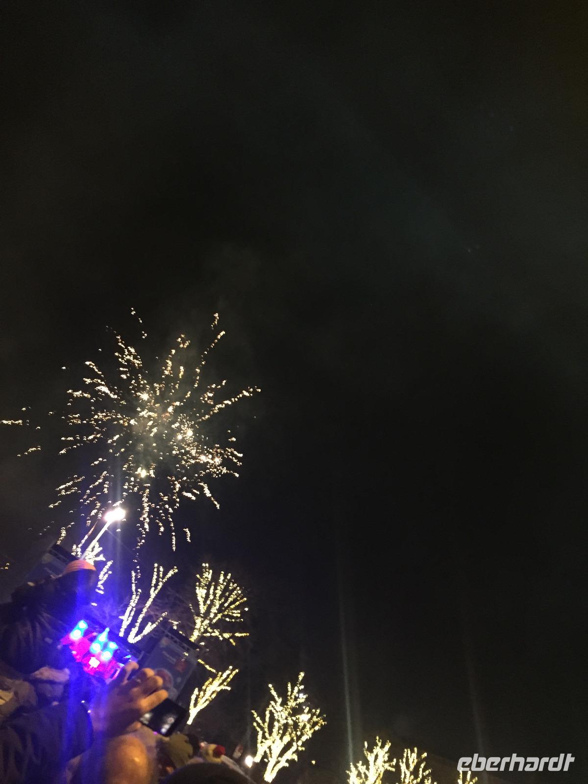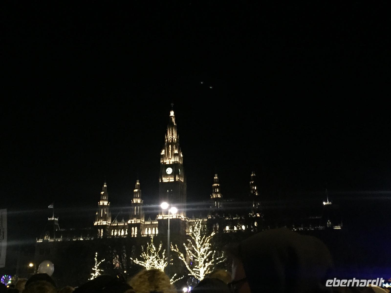 Mit Glühwein oder Sekt stoßen wir an und gelangen schließlich zum Rathausplatz, wo sich bereits eine große Menschenmenge angesammelt hat. Alle wollen das leuchtende Feuerwerk über dem Rathaus bestaunen. Als es soweit ist, werden Glückwünsche ausgetauscht oder es wird der Walzer getanzt. Viele Reisegäste verbringen ihren Silvesterabend am Prater und feiern dort gemeinsam in das neue Jahr.