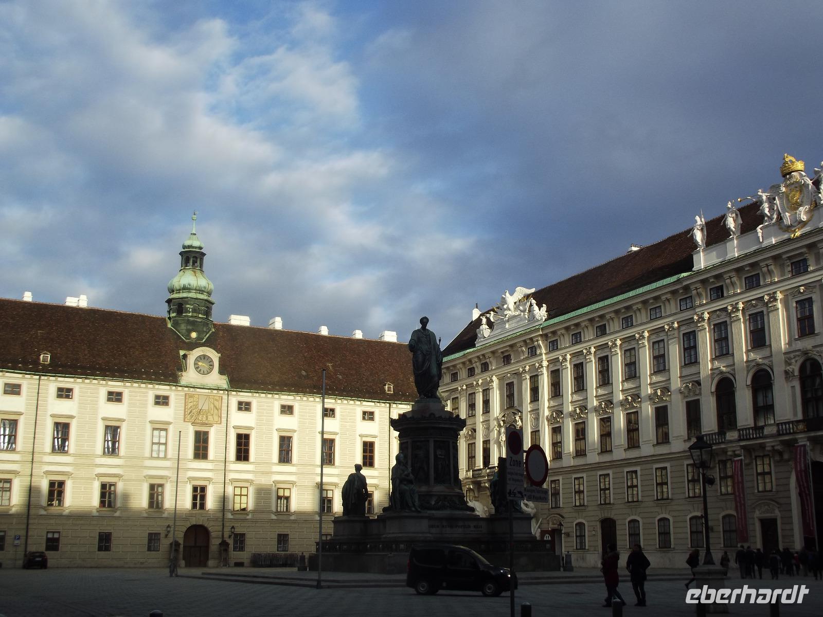 Der Silvestertag beginnt mit dem fakultativen Ausflug zur Hofburg, an dem der Großteil der Reisegruppe teilnimmt. Wir steigen beim Theresienplatz aus, laufen durch das große Eingangstor bis zur Neuen Burg. Am Josefsplatz lassen wir die Architektur der uns umrahmenden Gebäude auf uns wirken und betreten schließlich die Augustinerkirche, wo einst die Prinzessin Elisabeth und Kaiser Franz Joseph I. heirateten. Zusammen mit unserem Reiseleiter besichtigen wir die Kaiserappartements, sowie die Silberkammer, und lernen einiges über das Leben von Kaiser Franz Joseph I. und der Kaiserin Elisabeth (Sisi). Nach dem Rundgang spazieren wir entlang des Grabens Richtung Stephansplatz, wo sich die Gruppe aufteilt, denn nun haben die Gäste bis zum Abendessen Freizeit. Heute haben wir schöneres Wetter und können somit die hübsch dekorierten Gassen und die Sehenswürdigkeiten Wiens entdecken. Um 19 Uhr treffen wir uns im Hotelrestaurant und genießen die Köstlichkeiten des Silvesterbuffets. Zwei Stunden später ist es endlich soweit: der Silvesterpfad wartet! Am Stephansplatz wird zur klassischen Musik Walzer getanzt, wohingegen andere Bühnen verschiedene Musikstile anbieten.
