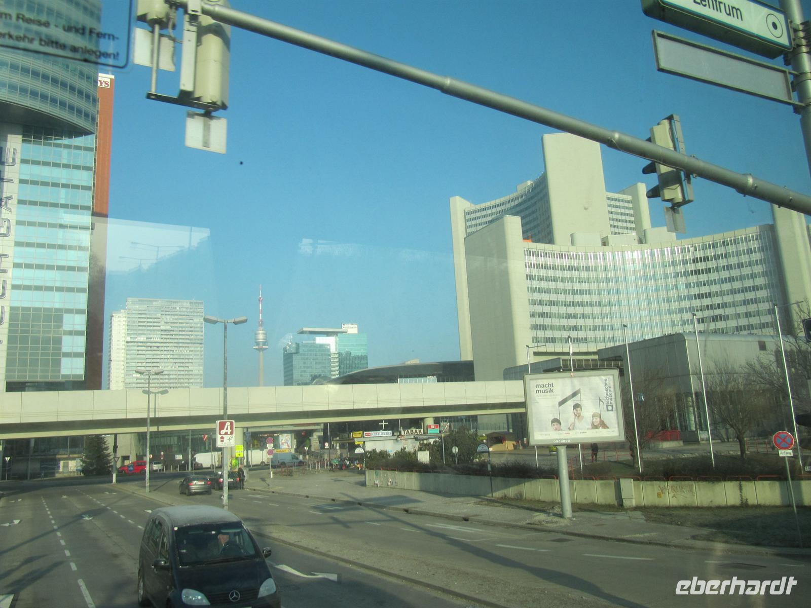 Auch Wien war am Morgen sehr frostig, das Thermometer zeigte -10 °C. Nach dem der Bus warm gefahren war, näherten wir uns der erste Station unseres Kennenlernens der Donaumetropole, der UNO-City mit ihren modernen Bauten. Seit 1979 ist Wien nach New York und Genf der dritte Sitz der UNO.