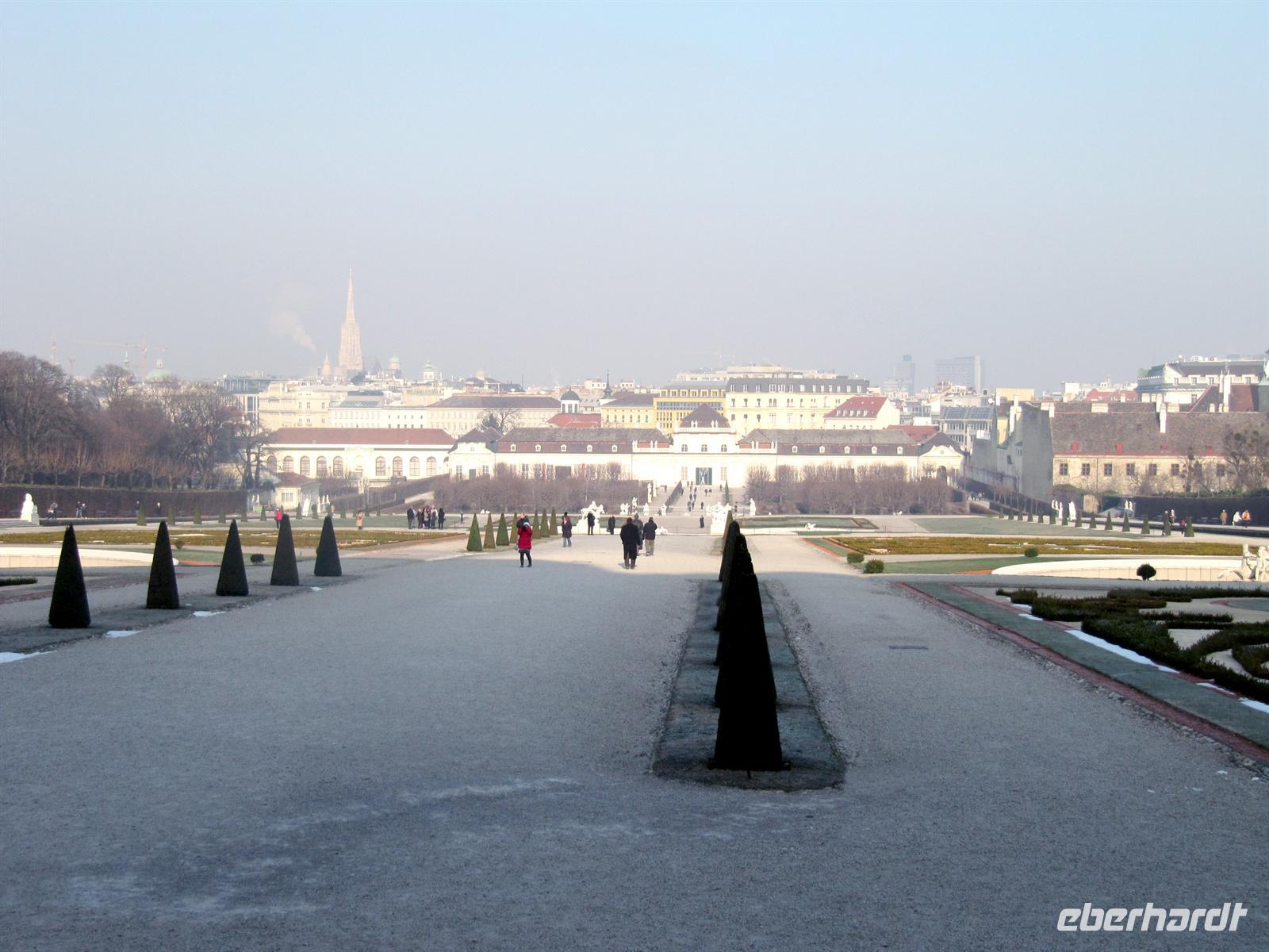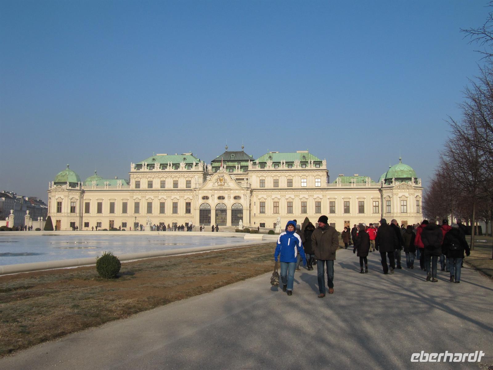 “Wien ist anders“, so wirbt die österreichische Hauptstadt. Ja, es sind zwei unterschiedliche Gesichter, die moderne Skyline der UNO-City und das Hundertwasserhaus, aber auf der anderen Seite das altehrwürdige Zentrum mit den weltbekannten Sehenswürdigkeiten, die wir nun betrachteten. Zuerst führte uns der Weg zum Schloss Belvedere und wir begannen ihn zu spüren, den Atem der einstigen Kaiserstadt. Das ehemalige Sommerschloss von Prinz Eugen betraten wir durch den Zugang zum Oberen Belvedere, das in den Jahren 1721 - 1723 erbaut wurde. Es gilt als barockes Meisterwerk von Johann Lukas von Hildebrandt. Wir blickten über die Terrassen des Gartens zum Unteren Belvedere. Und uns lag im Glanz der Sonne praktisch ganz Wien zu Fußen. Der Steffl grüßte uns schon ganz sacht. Sollte doch bei ihm später unser Stadtspaziergang enden.