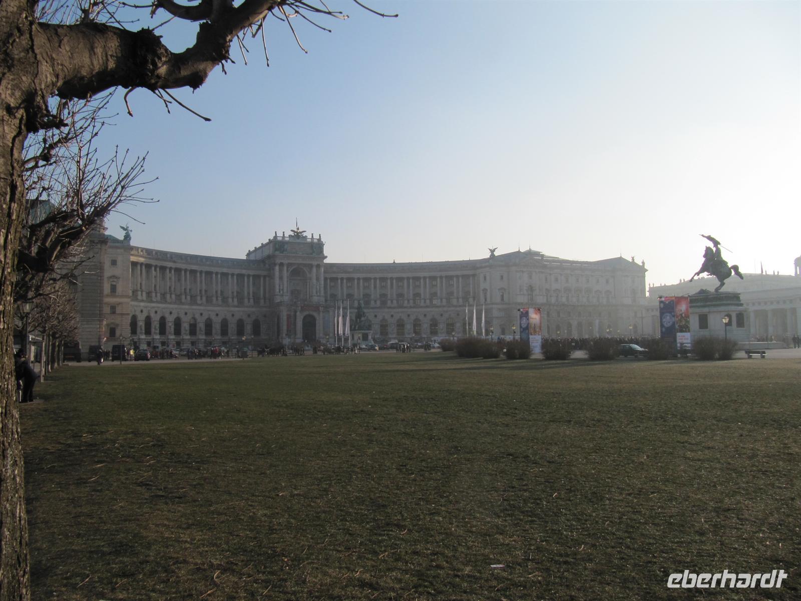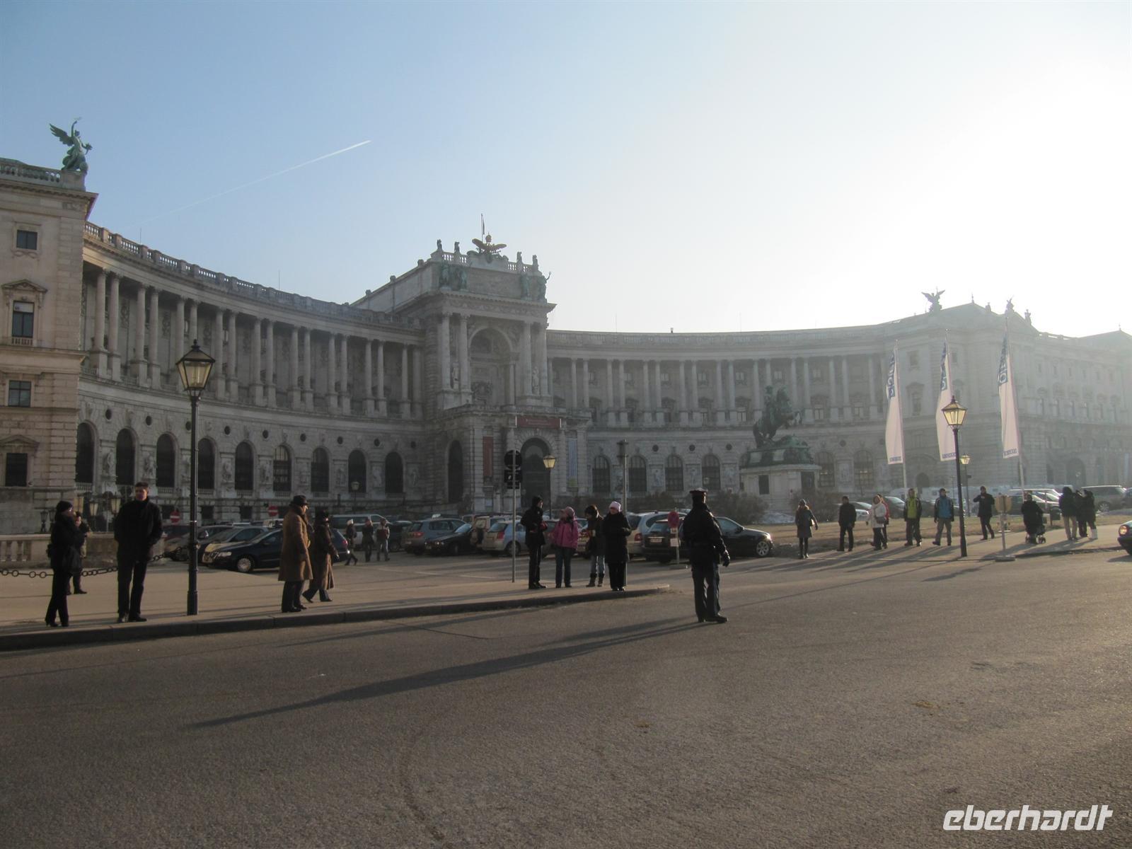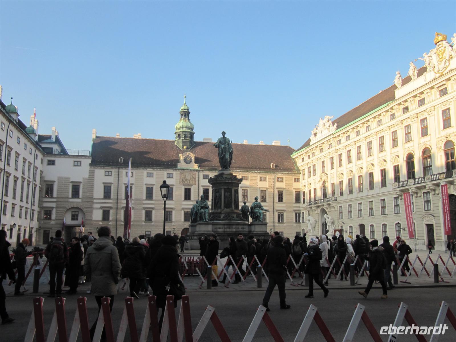 Unser Weg führte uns anschließend vorbei an der Österreichischen Nationalbibliothek und der Spanischen Hofreitschule in den Innenhof der Wiener Hofburg. Doch halt, hier ging es nicht weiter. Vor uns war abgesperrt, Polizisten regelten die Touristenströme, Marschmusik ertönte, eine Ehrenformation formierte sich ... zu Ehren des Oberhauptes des Golf-Emirats Katar,
