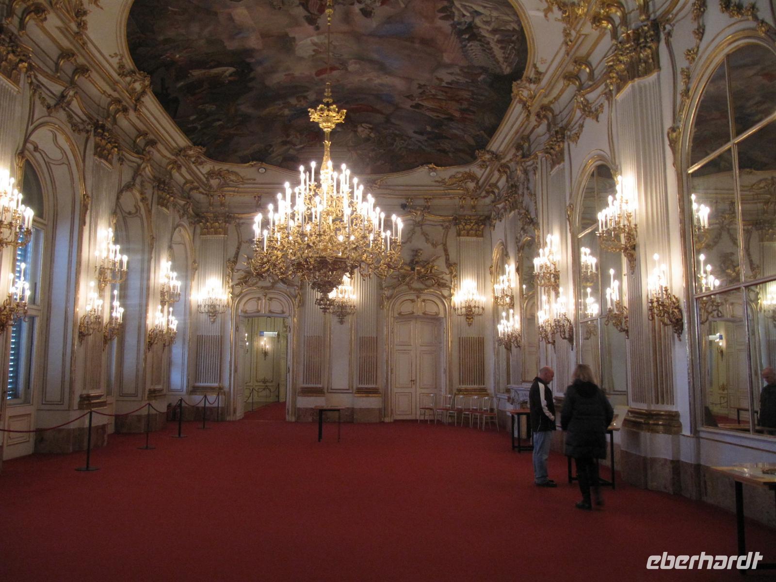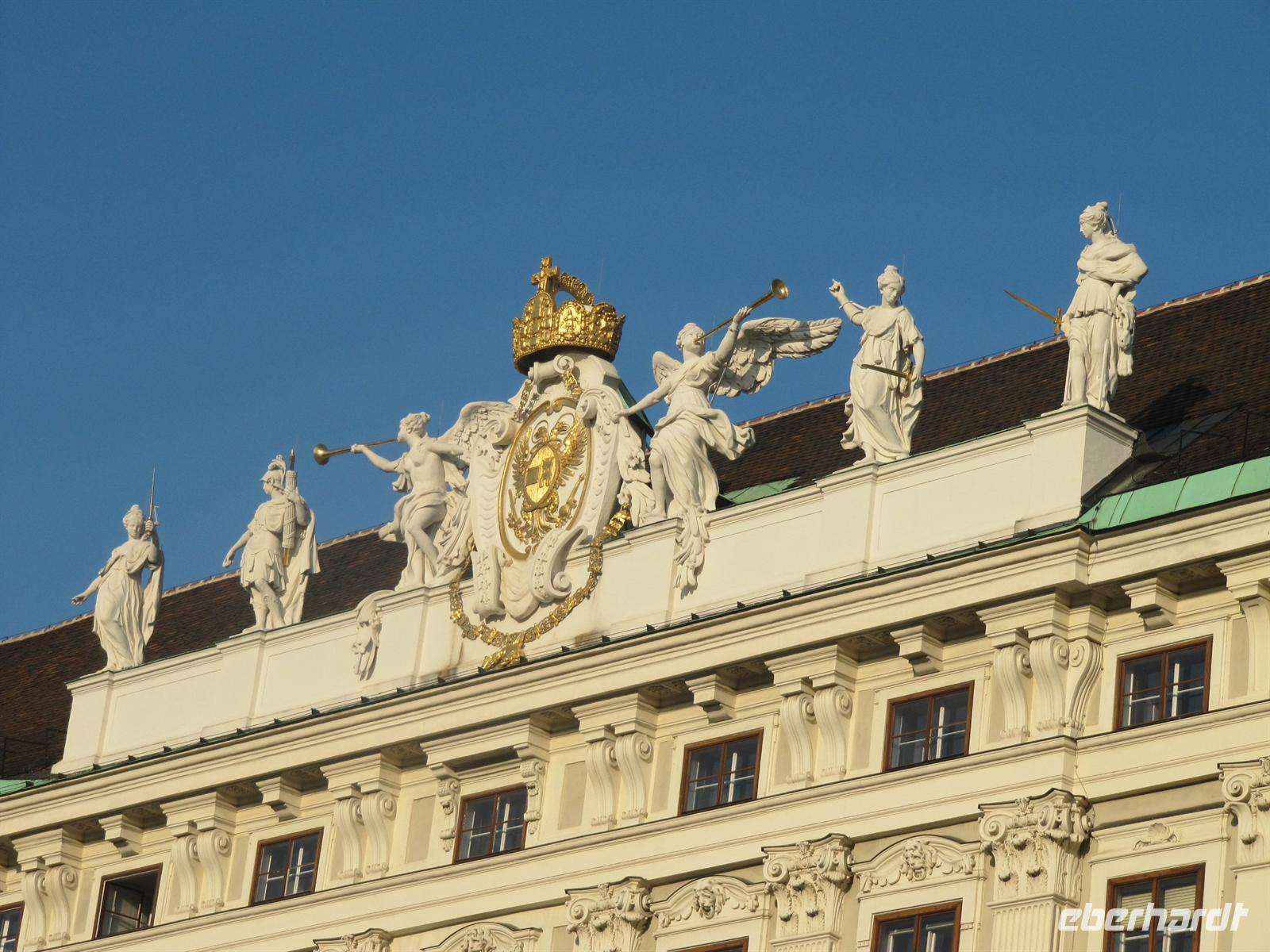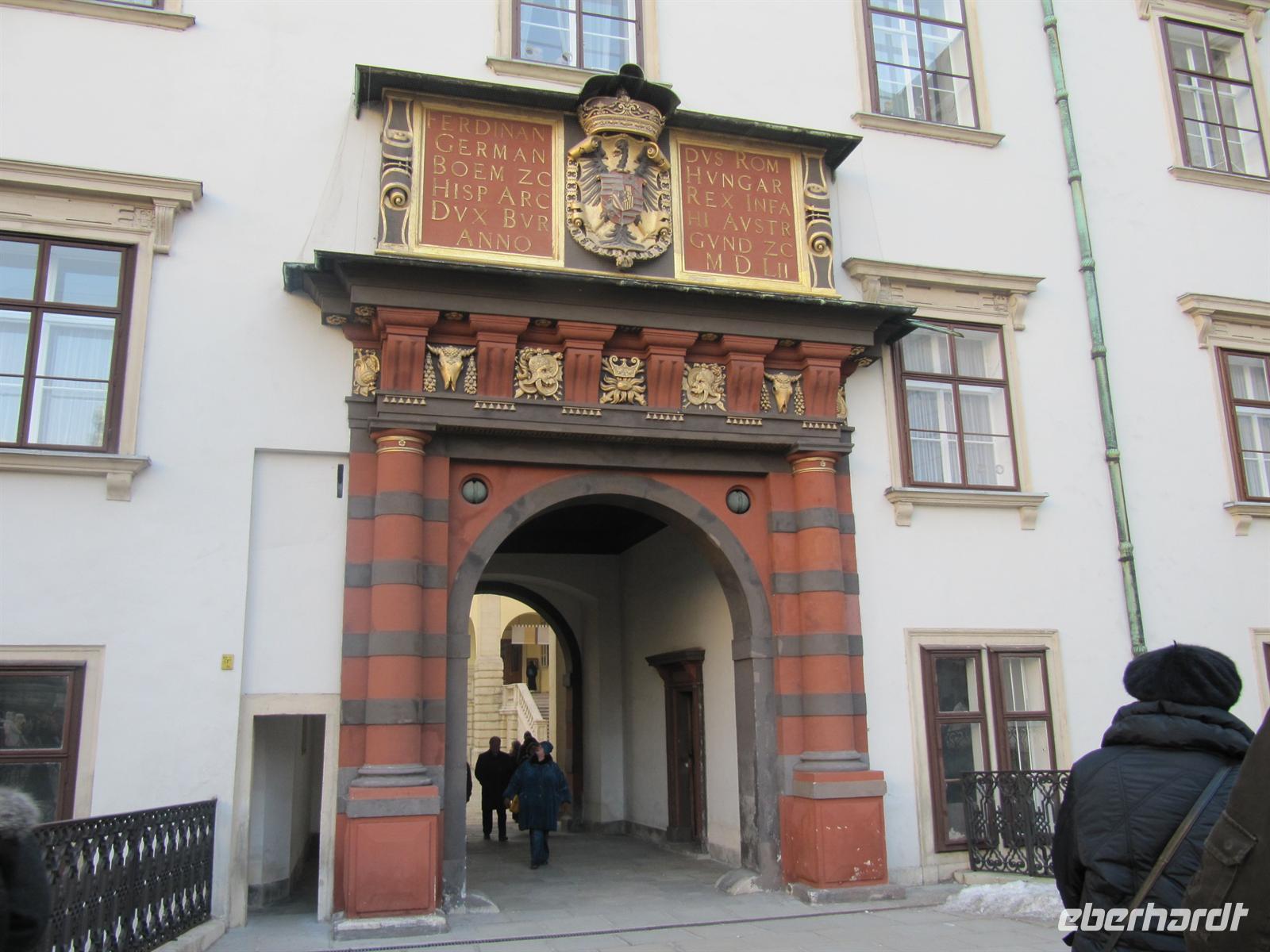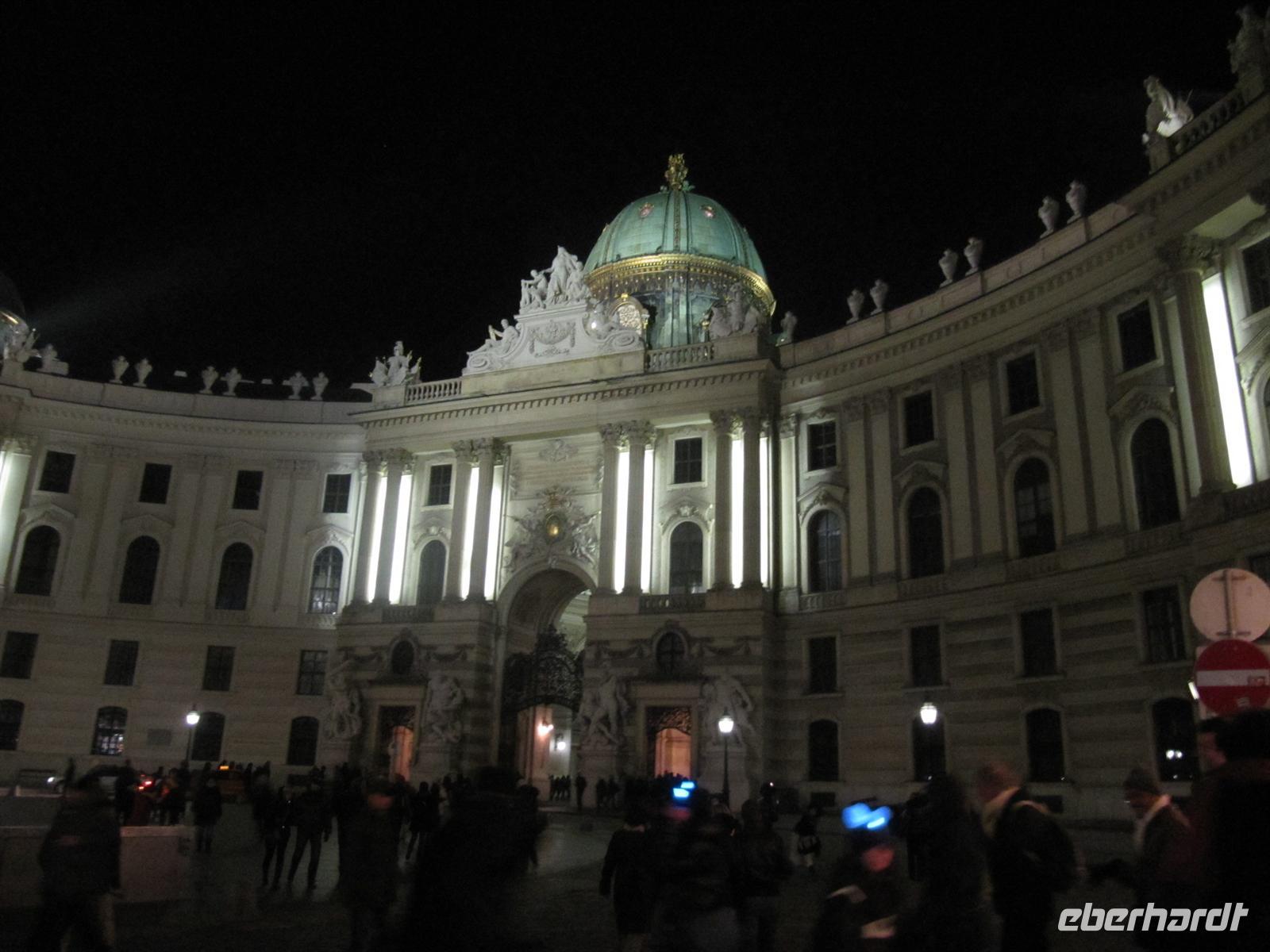 Unser Weg führte uns anschließend vorbei an der Österreichischen Nationalbibliothek und der Spanischen Hofreitschule in den Innenhof der Wiener Hofburg. Doch halt, hier ging es nicht weiter. Vor uns war abgesperrt, Polizisten regelten die Touristenströme, Marschmusik ertönte, eine Ehrenformation formierte sich ... zu Ehren des Oberhauptes des Golf-Emirats Katar,