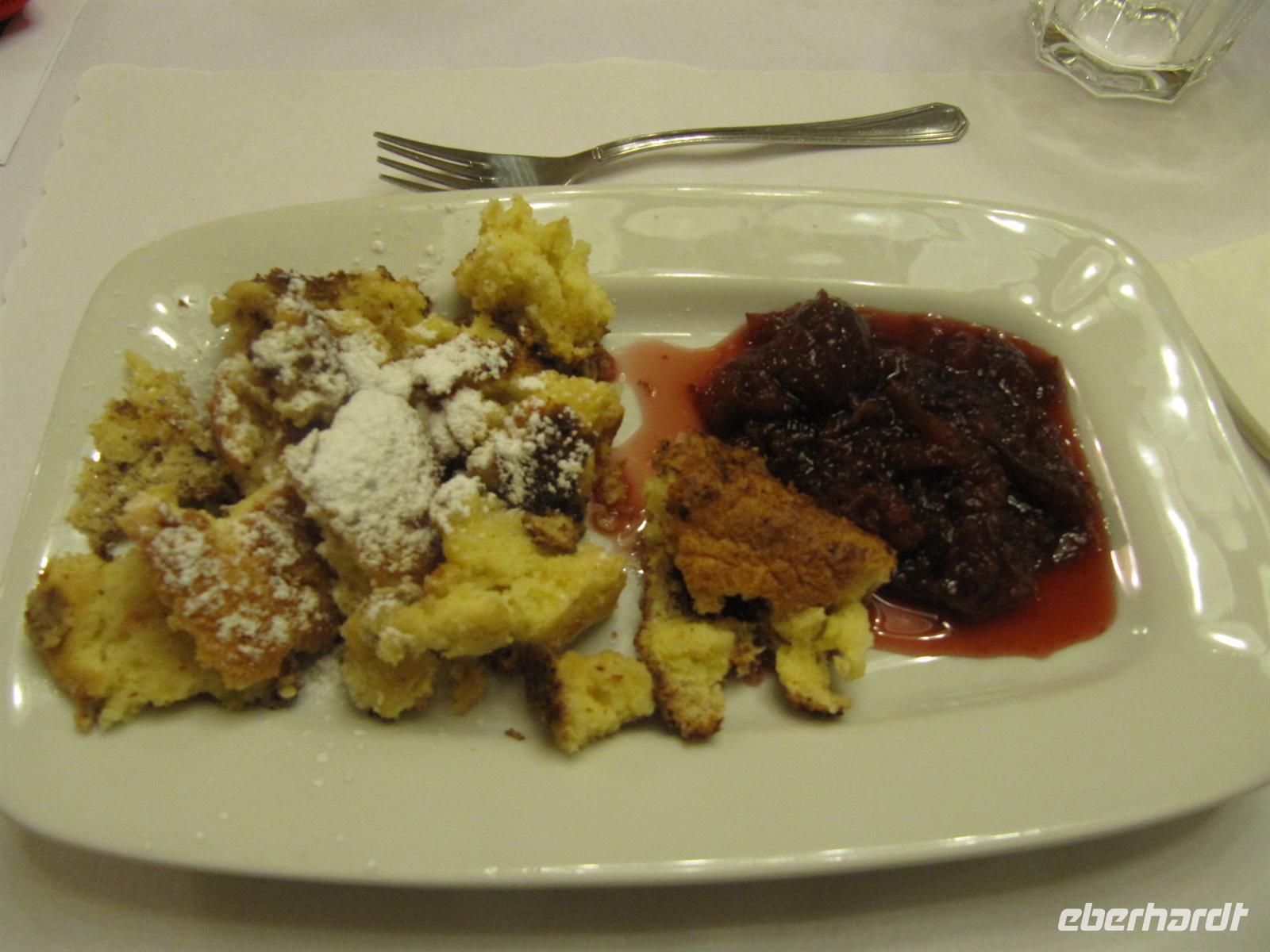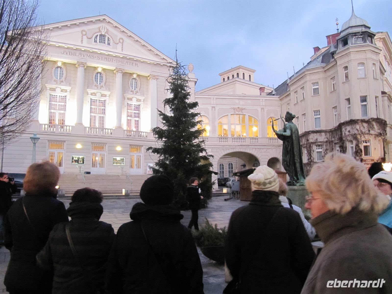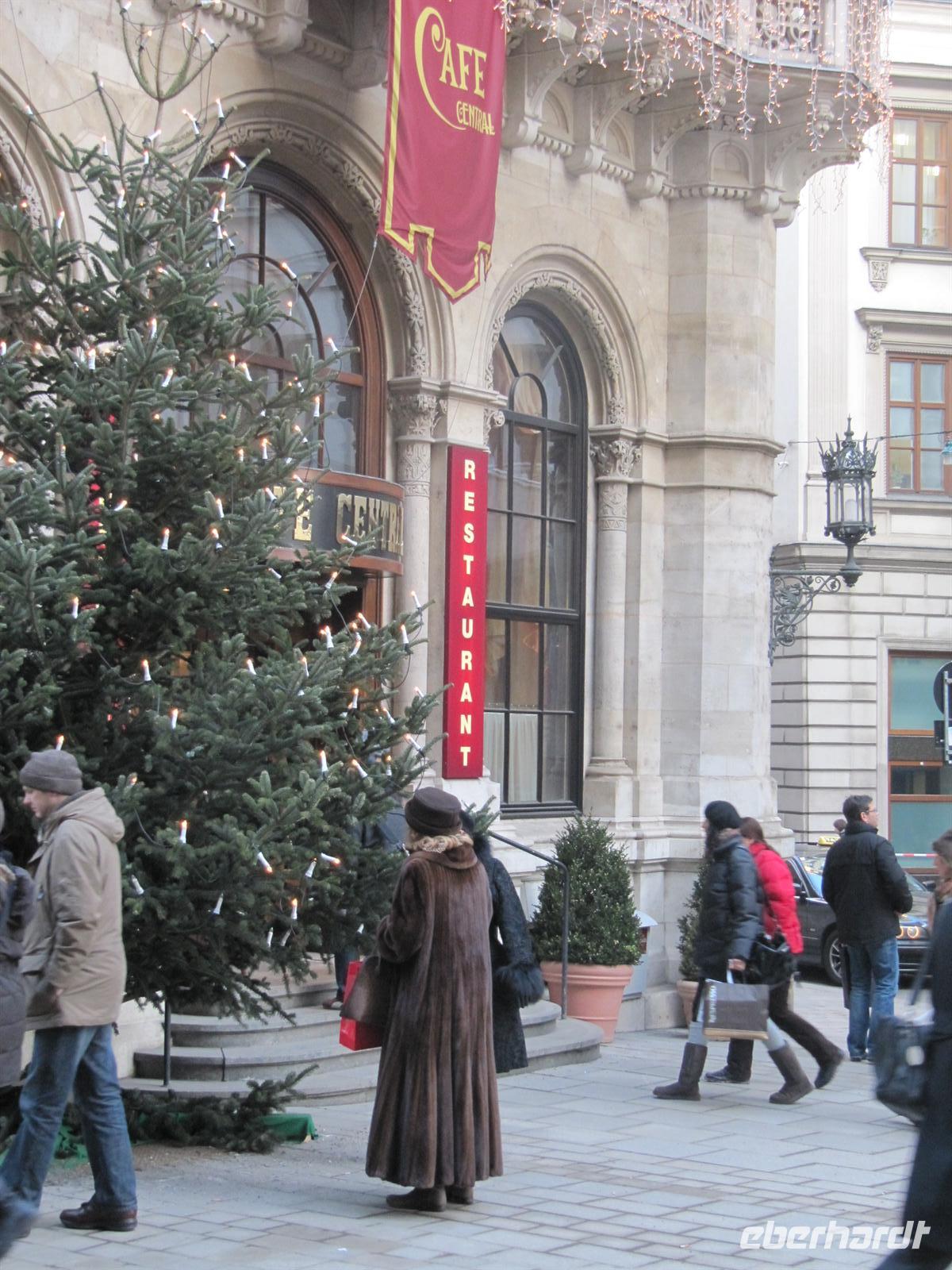 Der Nachmittag stand allen Gästen zur freien Verfügung. Viele Museen hatten bis 17.00 Uhr geöffnet und waren so ein willkommenes Ziel. Wer wollte, nutzte die Zeit zum Entspannen. Pünktlich 18.45 starteten wir mit der Straßenbahn-Linie 1 wenige Meter vom Hotel zu unserem Erlebnis Wiener Silvesterpfad. Ausgerüstet mit Stadtplan und dem Zeitplan der einzelnen Bühnen und Erlebnisbereiche des Pfades in der Innenstadt waren wir bestens vorbereitet. Ich führte meine Gäste vom Wiener Burgtheater, vorbei an der Ungarischen Botschaft durch enge Gassen zum Café „Central“, schließlich von der Freyung in die Naglergasse zum Beisl „Bierhof“. In diesem typischen Wiener Wirtshaus war für uns ein 3-Gang-Menü mit Frittatensuppe, Wiener Schnitzel und Kaiserschmarrn vorbereitet. Dieses Wiener Menü ließen wir uns schmecken und danach begaben wir uns auf den Silvesterpfad.