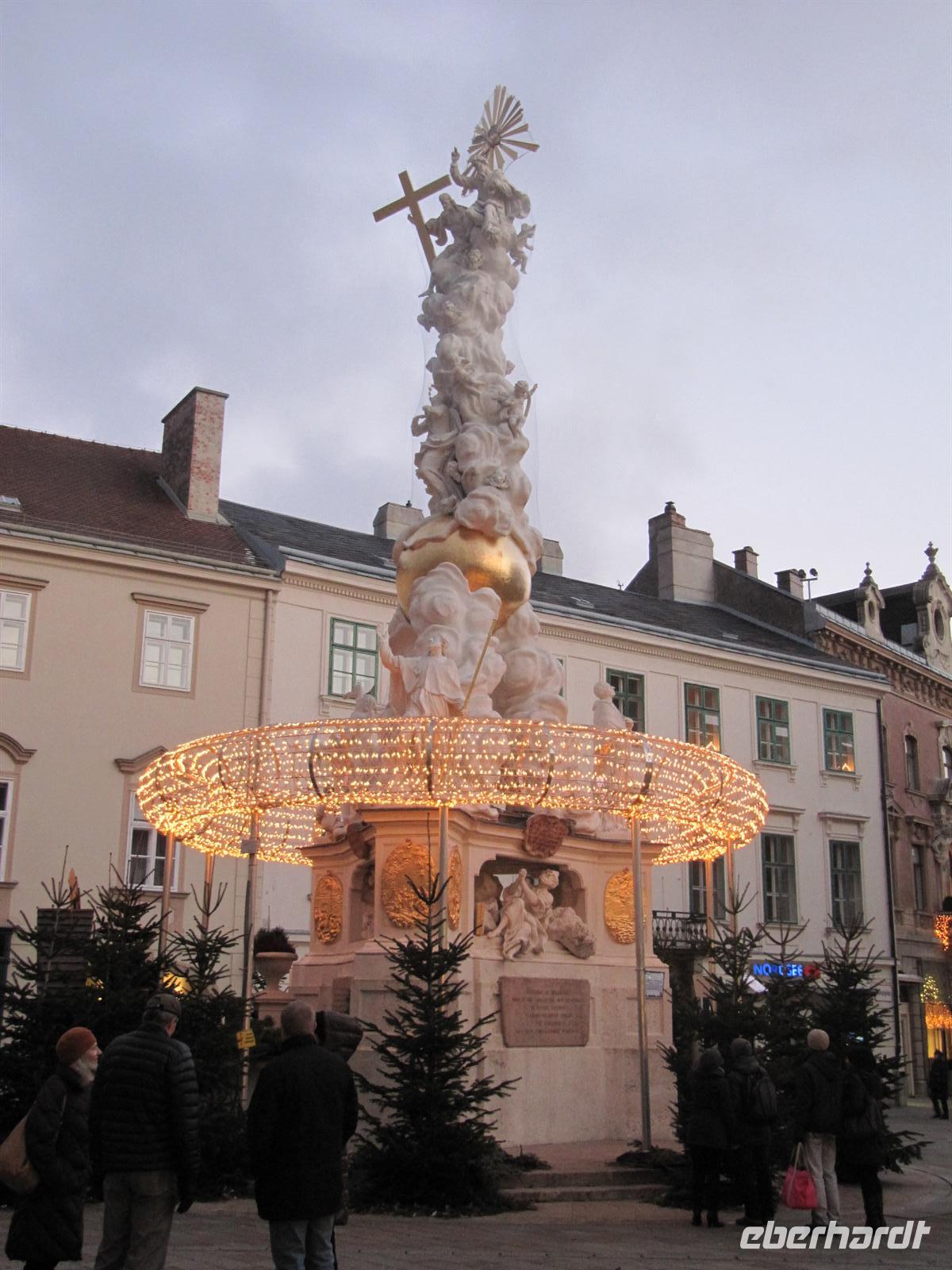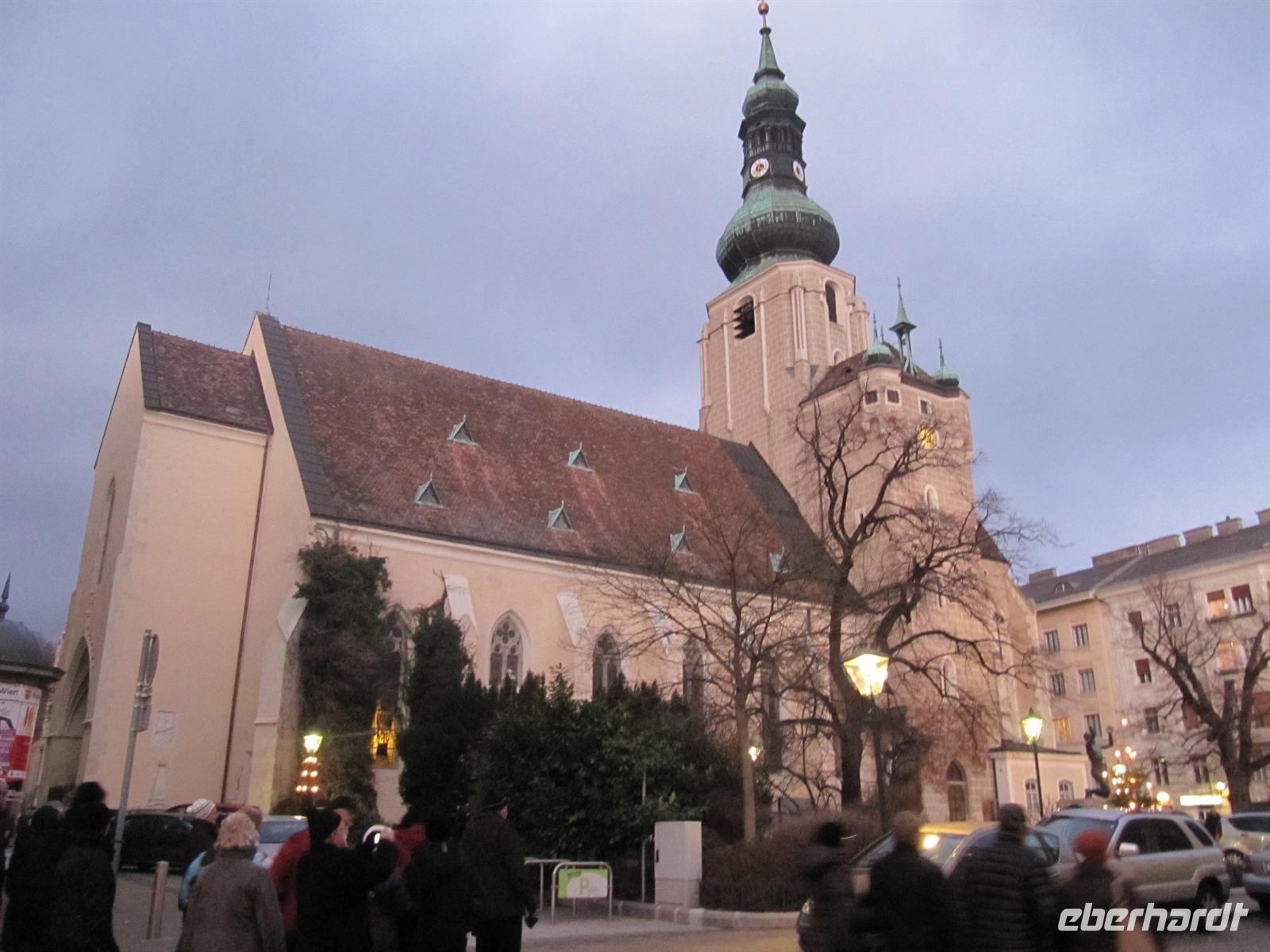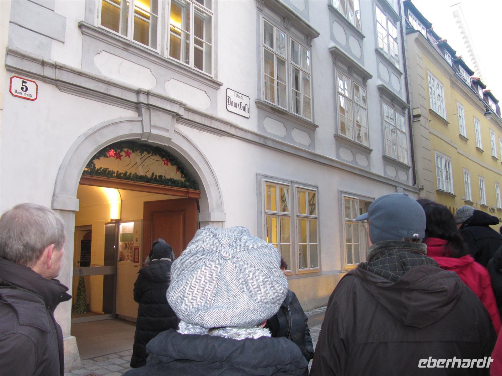 Vorbei am Figlmüller, dem Schnitzel-Restaurant-König, war nun das Mozarthaus in der Domgasse unser Ziel. In seiner einzigen in Wien auch heute erhaltenen Wohnung schuf Wolfgang Amadeus Mozart die Musik zu seiner Oper „Hochzeit des Figaros“. Zuvor hatte er unter anderem im Haus des Deutschen Ordens gewohnt. Dieses befindet sich nur wenige Schritte von der Domgasse entfernt. Zum Abschluss unseres Spazierganges besuchten wir das Wahrzeichen Wiens, den imposanten Stephansdom. Mit 107 Metern Länge und 34 Metern Breite ist er das bedeutendste gotische Bauwerk Österreichs. Die Pummerin, die zweitgrößte freischwingend geläutete Kirchenglocke Europas, befindet sich im Nordturm unter einer Turmhaube aus der Renaissance-Zeit. Leider war es an diesem Tag nicht möglich zur Pummerin aufzufahren und von oben den Blick über die Dächer Wiens zu genießen, wie ich dies bei einem früheren Besuch bereits getan hatte. Wir dankten Herrn Paminger auf das Herzlichste für seine interessante, mit Anekdoten gewürzte Führung und hatten nun alle einen kräftigen Kaffeedurst. Doch halt Kaffee gibt es nicht in Wien, dann doch eher einen kleinen Schwarzen, einen kleinen Braunen, einen Fiaker, einen Verlängerten, einen Melange, einen Kapuziner ... Natürlich hatten wir auch Appetit auf eine Wiener Spezialität, zum Beispiel einen Apfelstrudel. Alle Gäste gestalteten den weiteren Nachmittag nach ihren Interessen, besuchten eines der zahlreichen Museen oder schauten sich bereits bei den Vorbereitungen für den Silvesterpfad um.